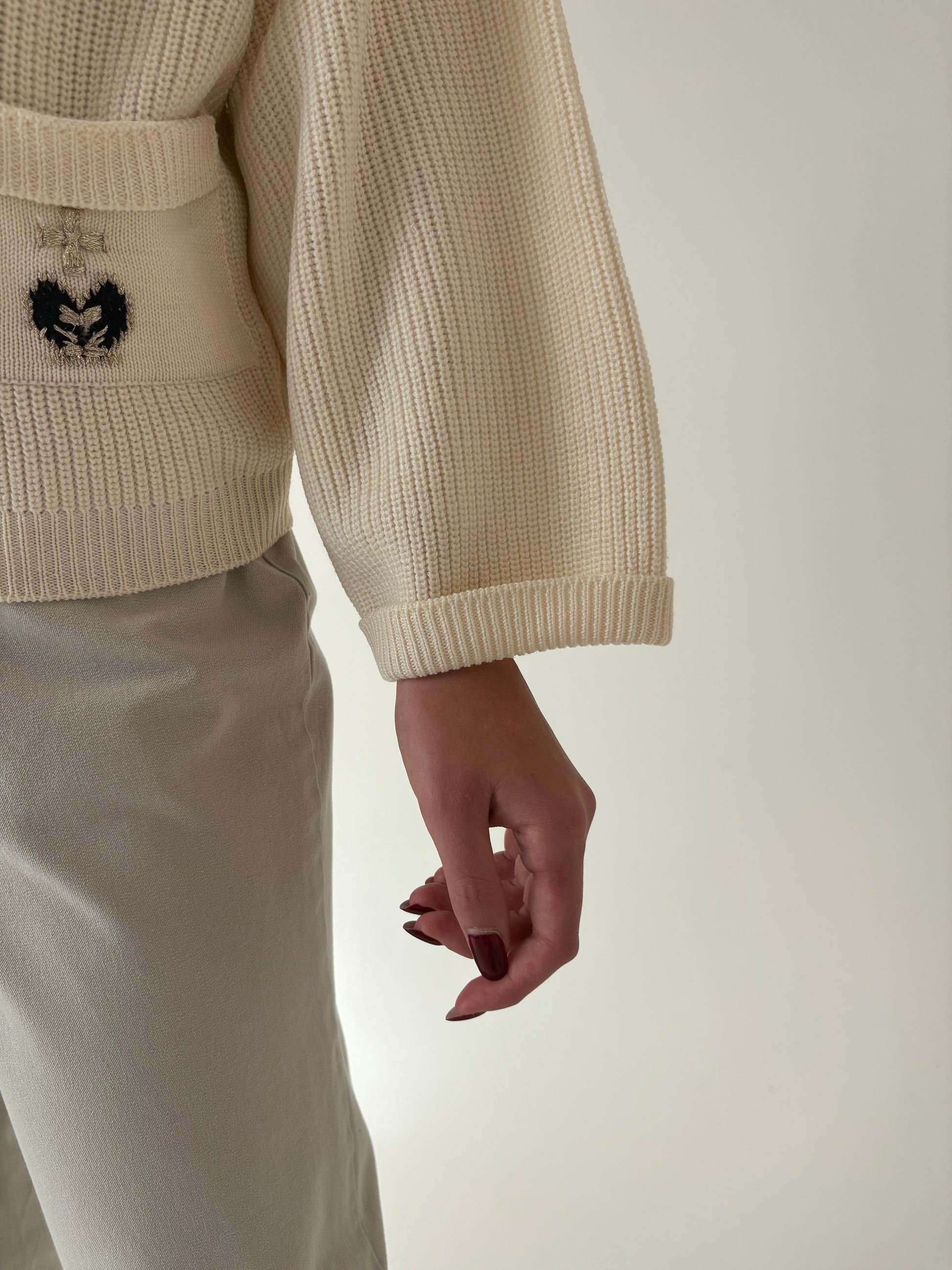 Cardigan vintage petite din lana extrafina de gramaj mare off white