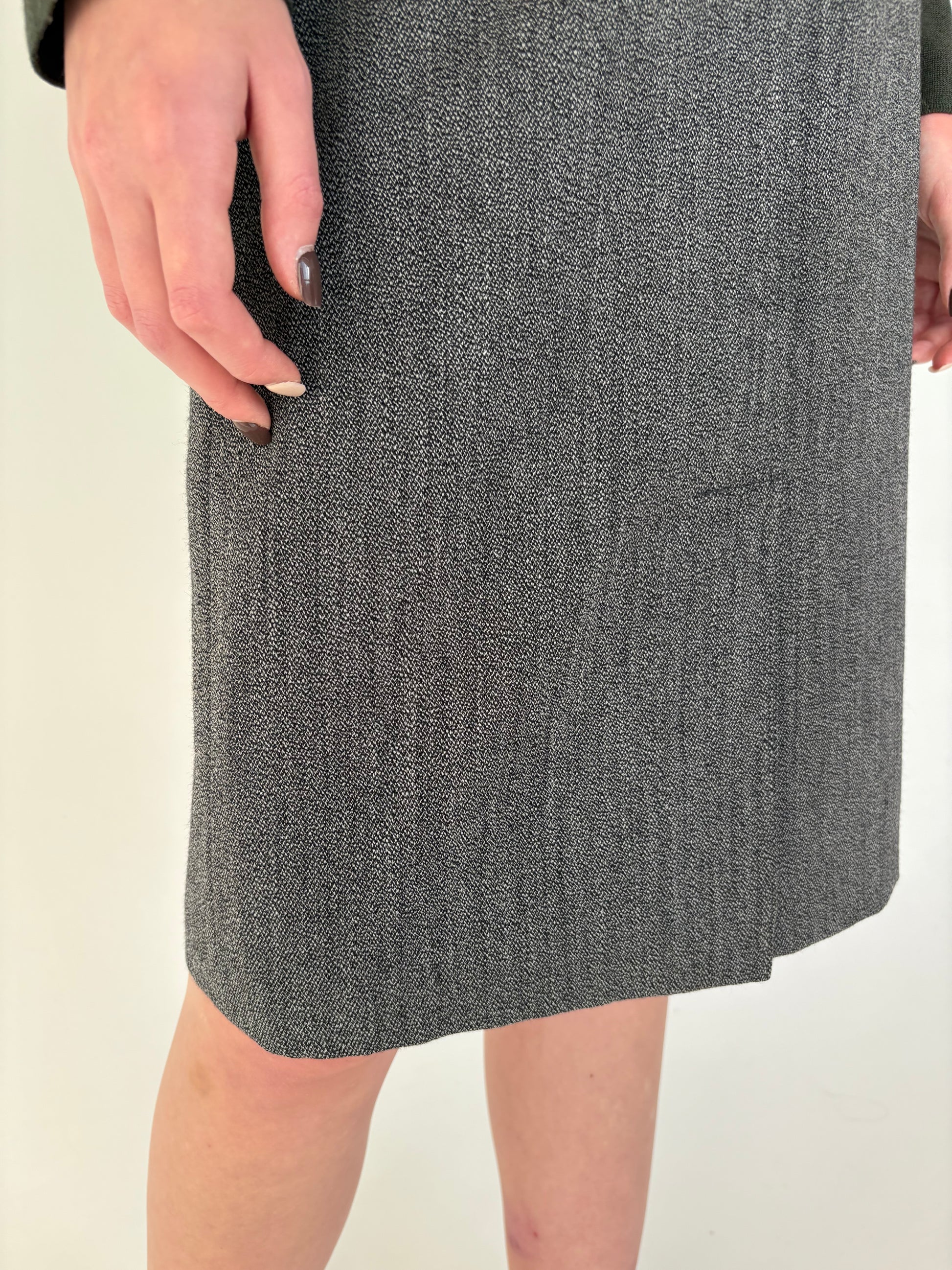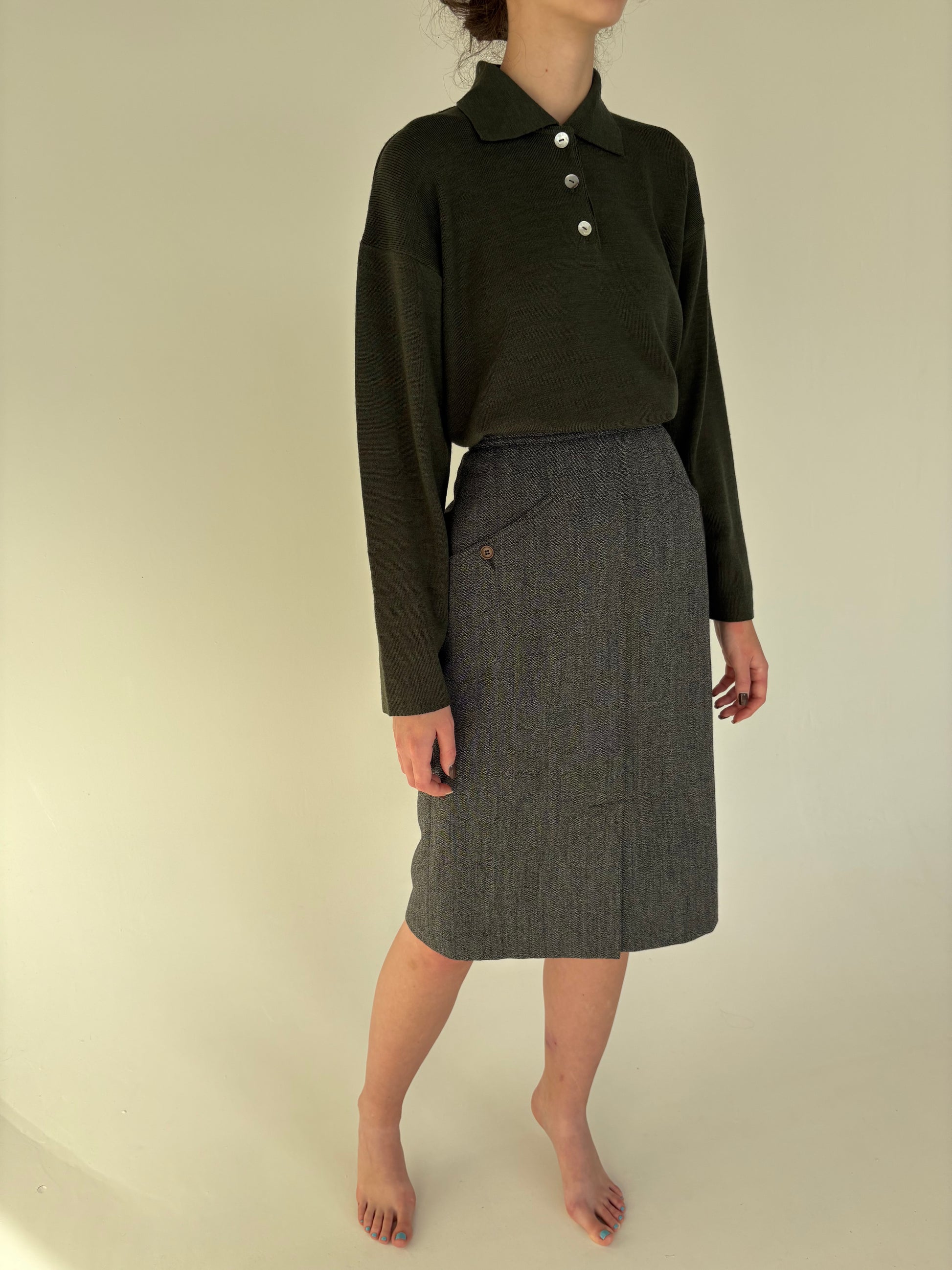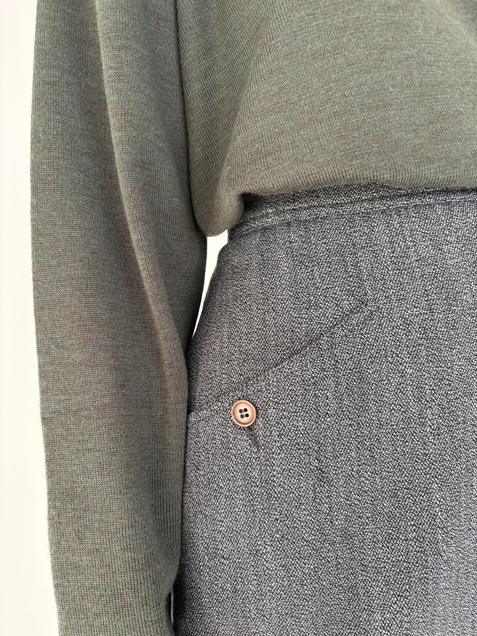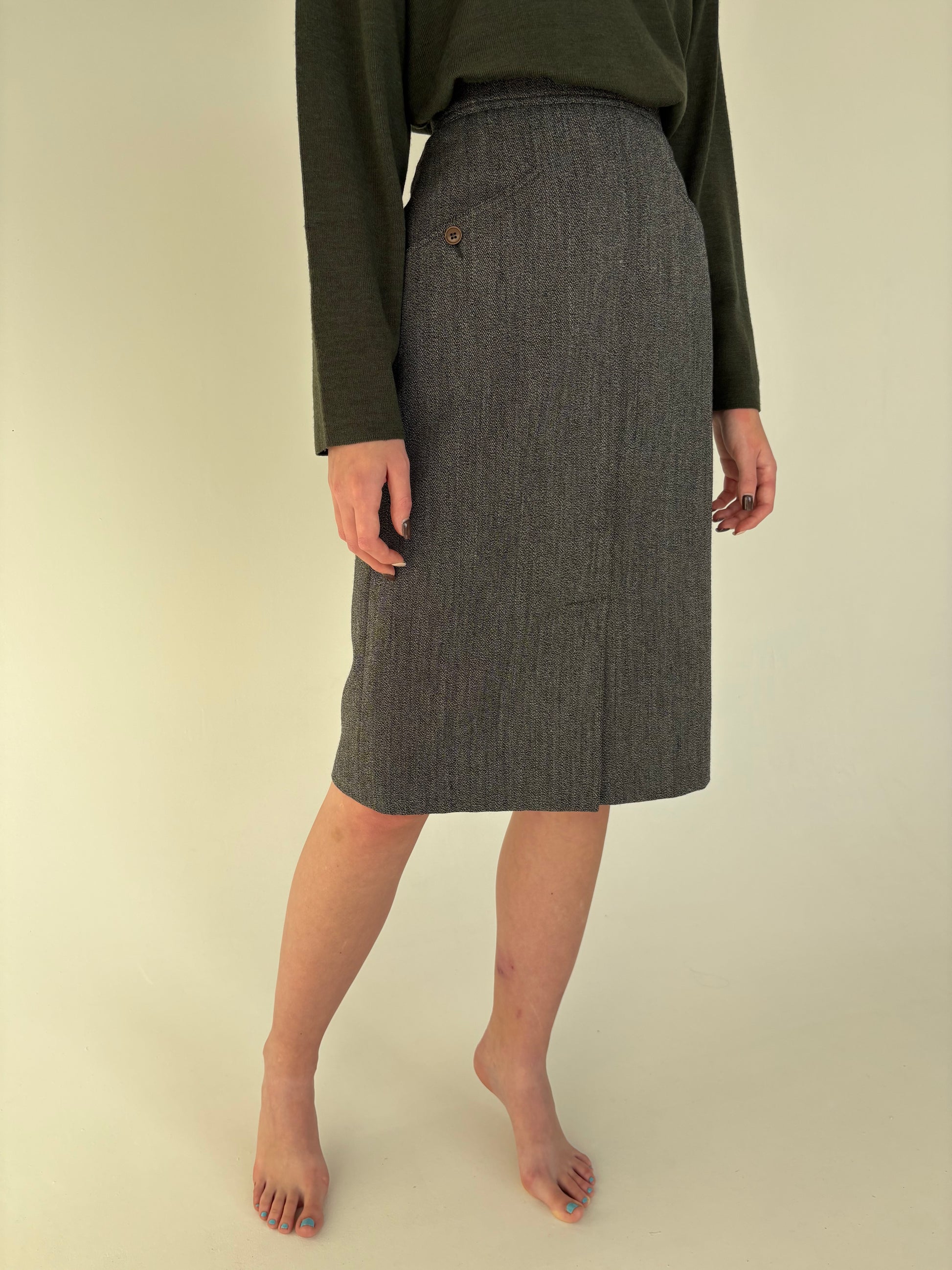 Fustă cu buzunare oblice și talie ultra înaltă din stofă de lână cardată