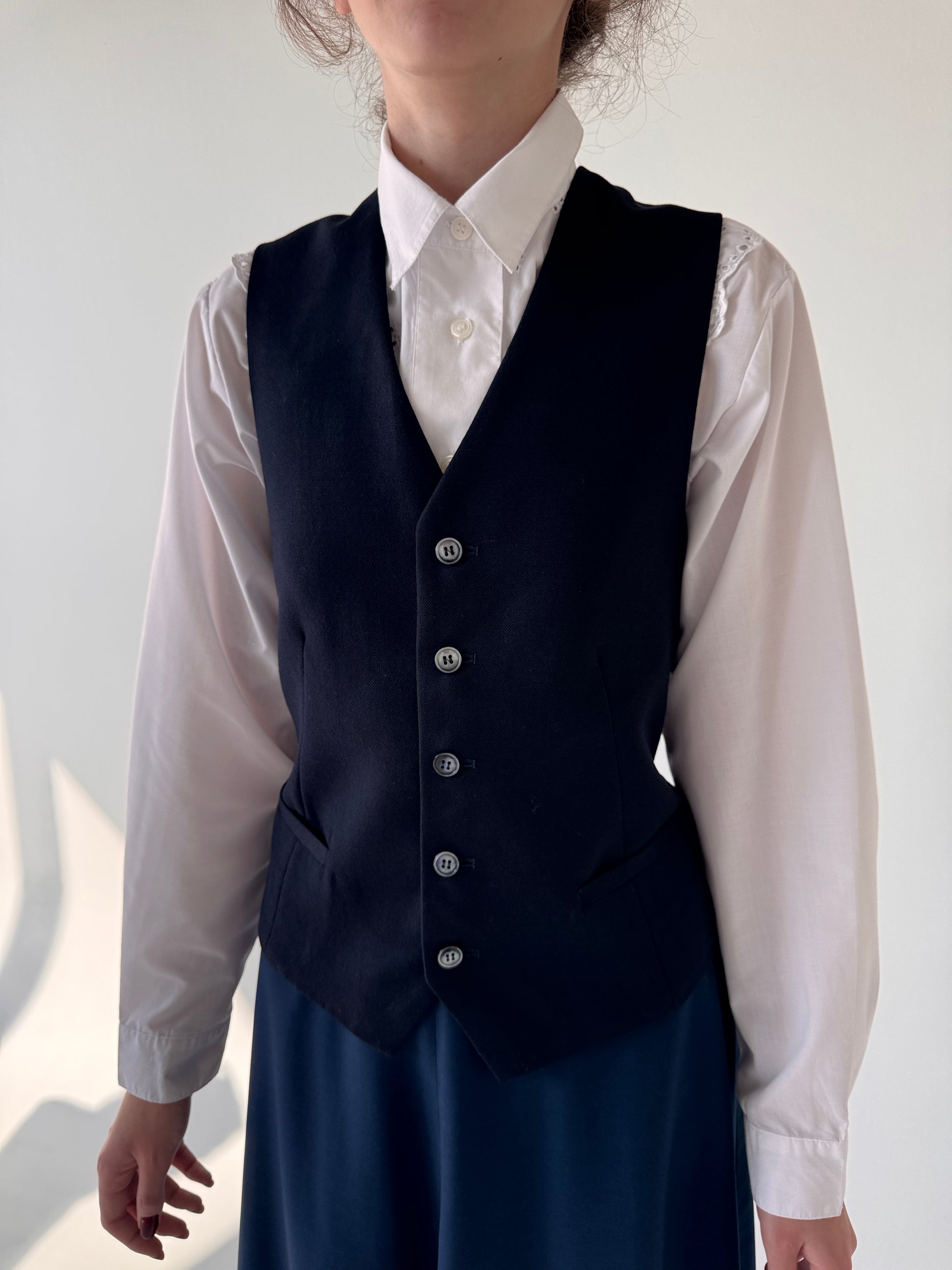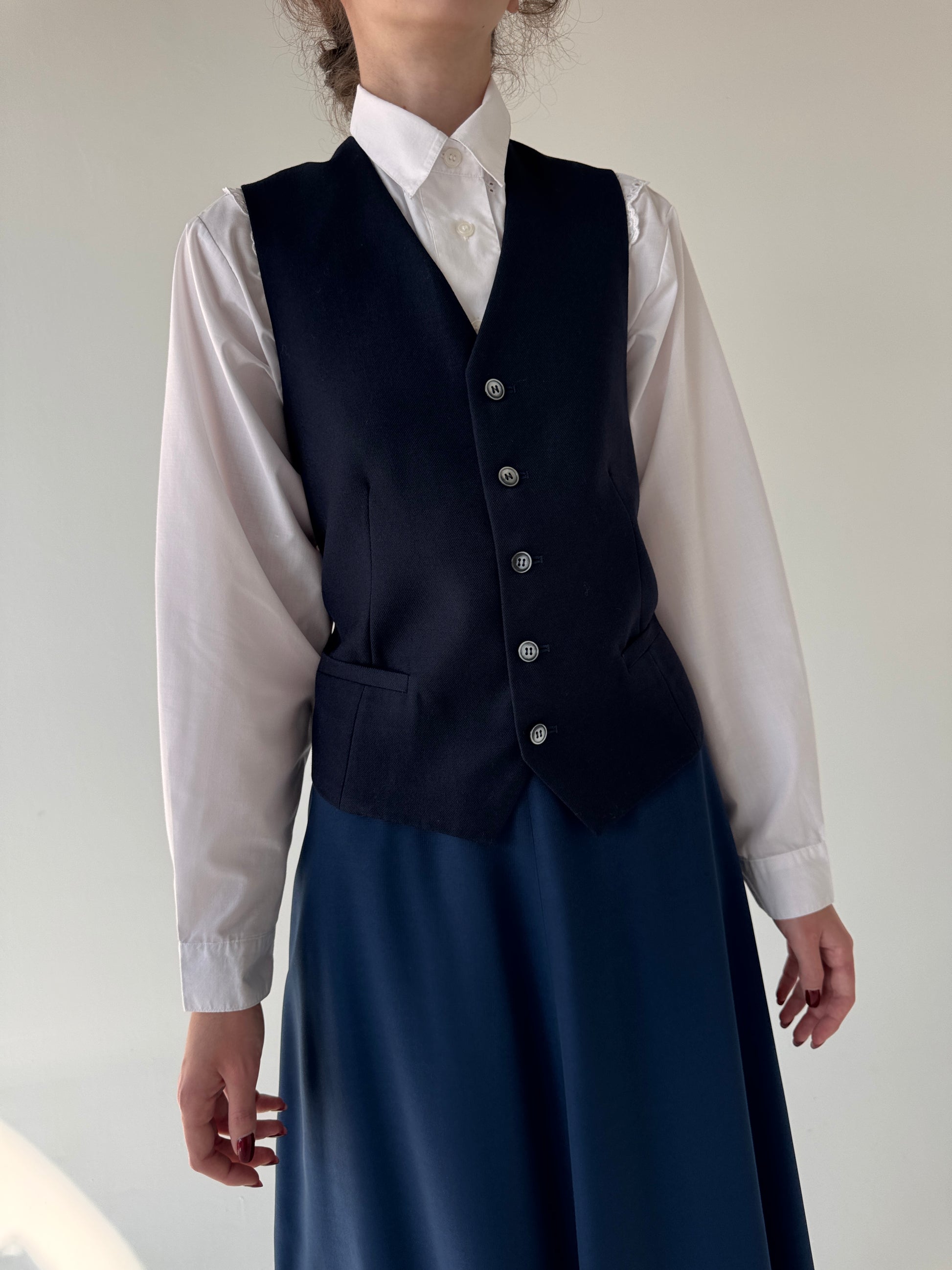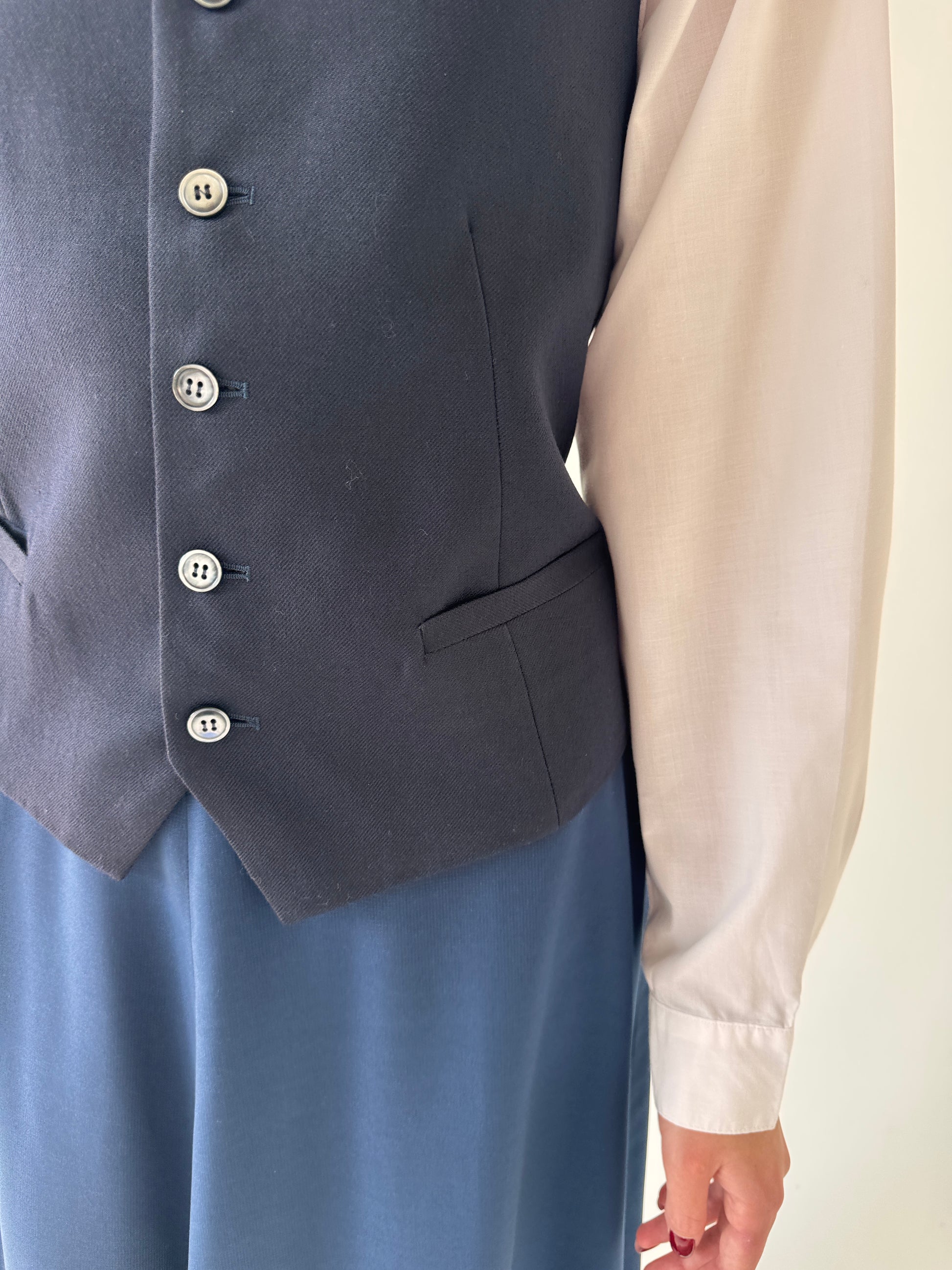 Vestă din lana extrafina cambrata cu talie ușor reglabilă la spate