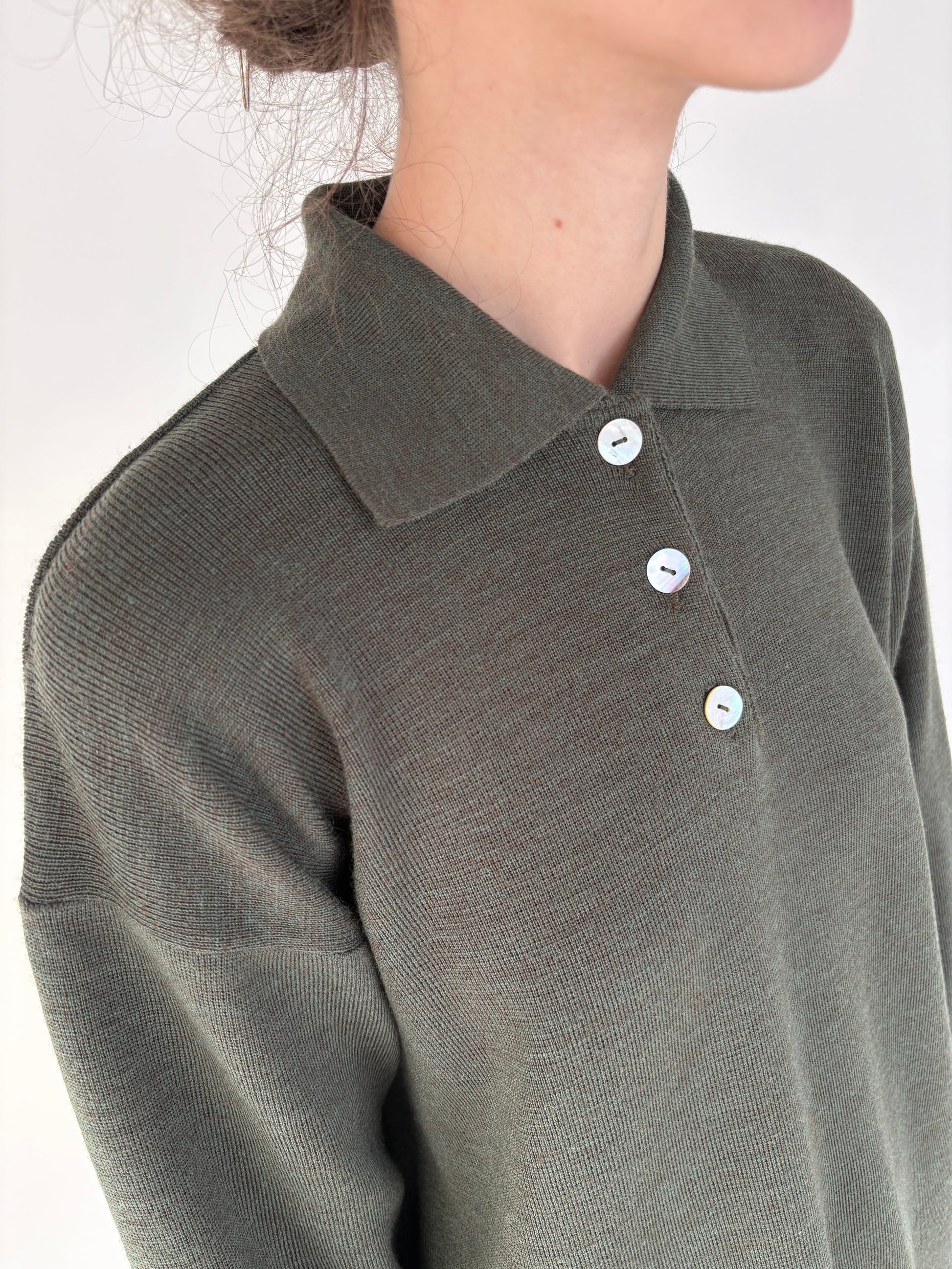 Pulover polo italian forest green din lana merino extrafina de gramaj mare