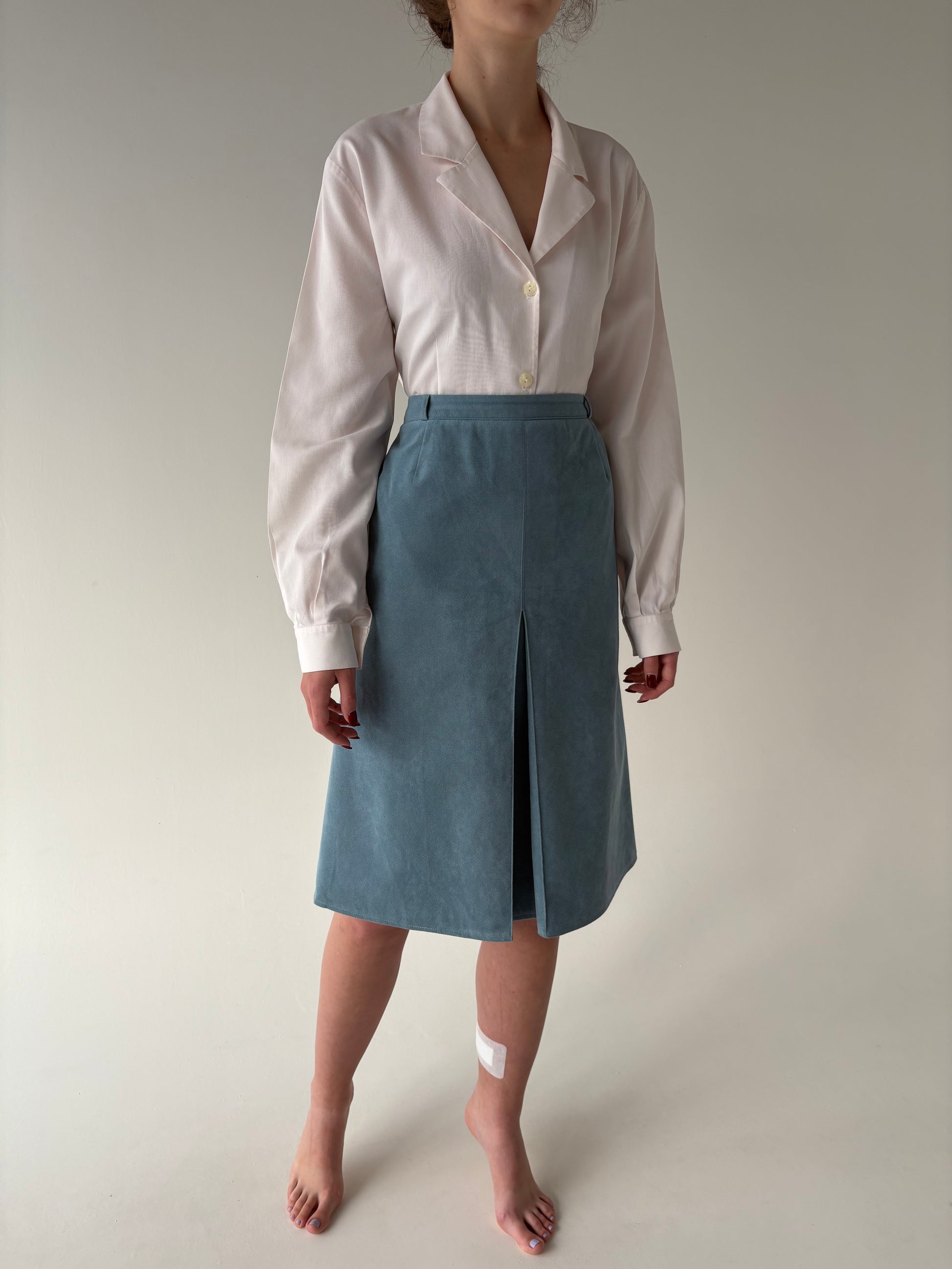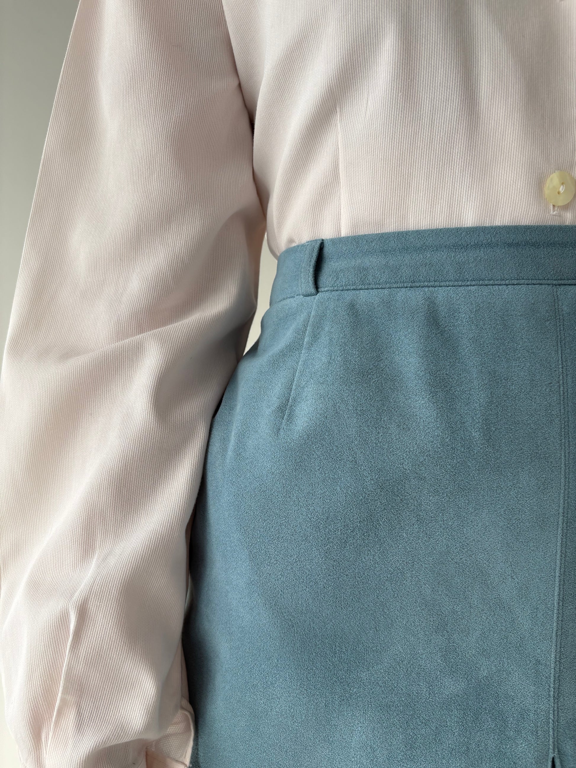 Fustă albastru ciel cu aspect din piele întoarsă cu talie ultra înaltă