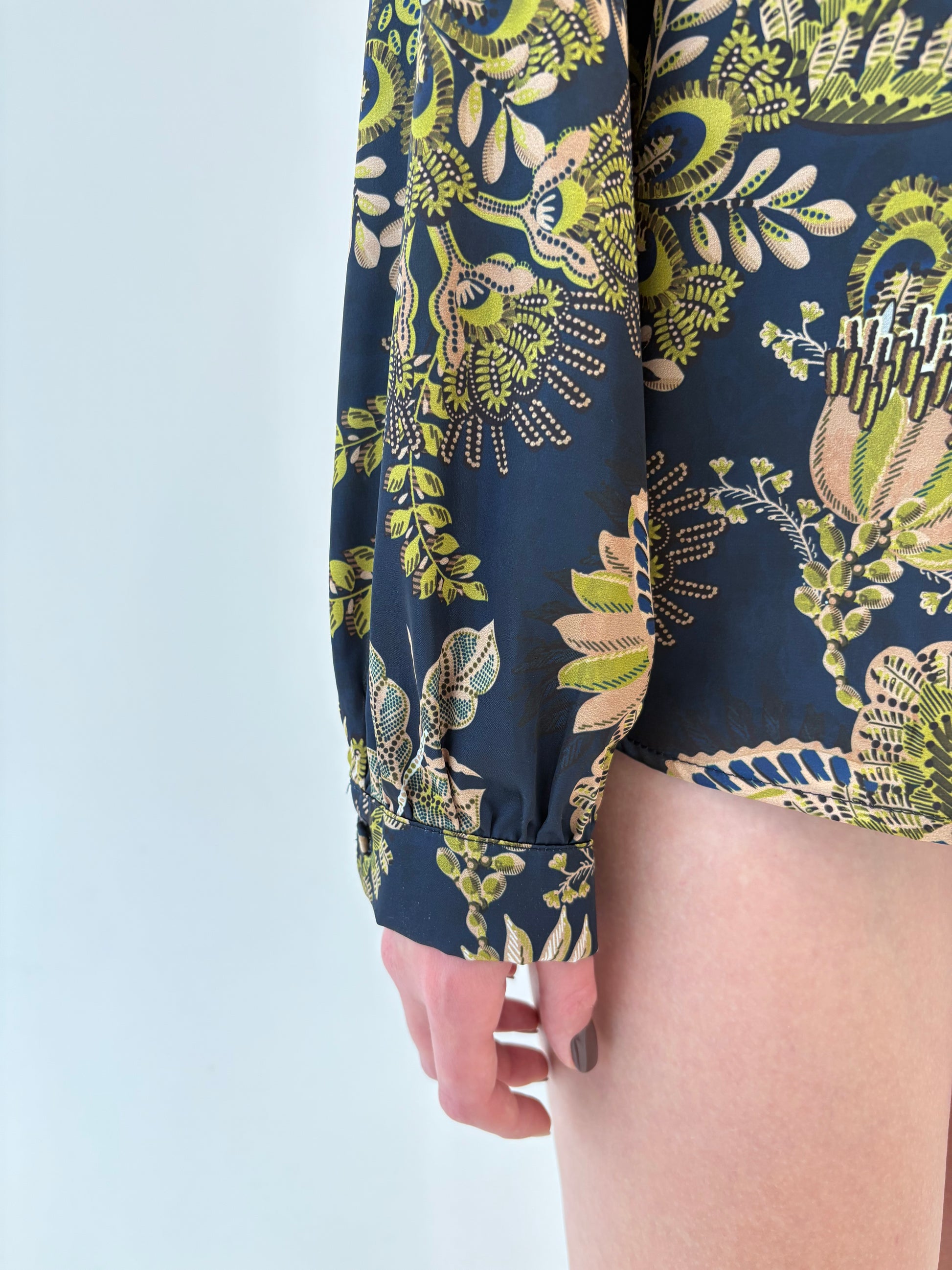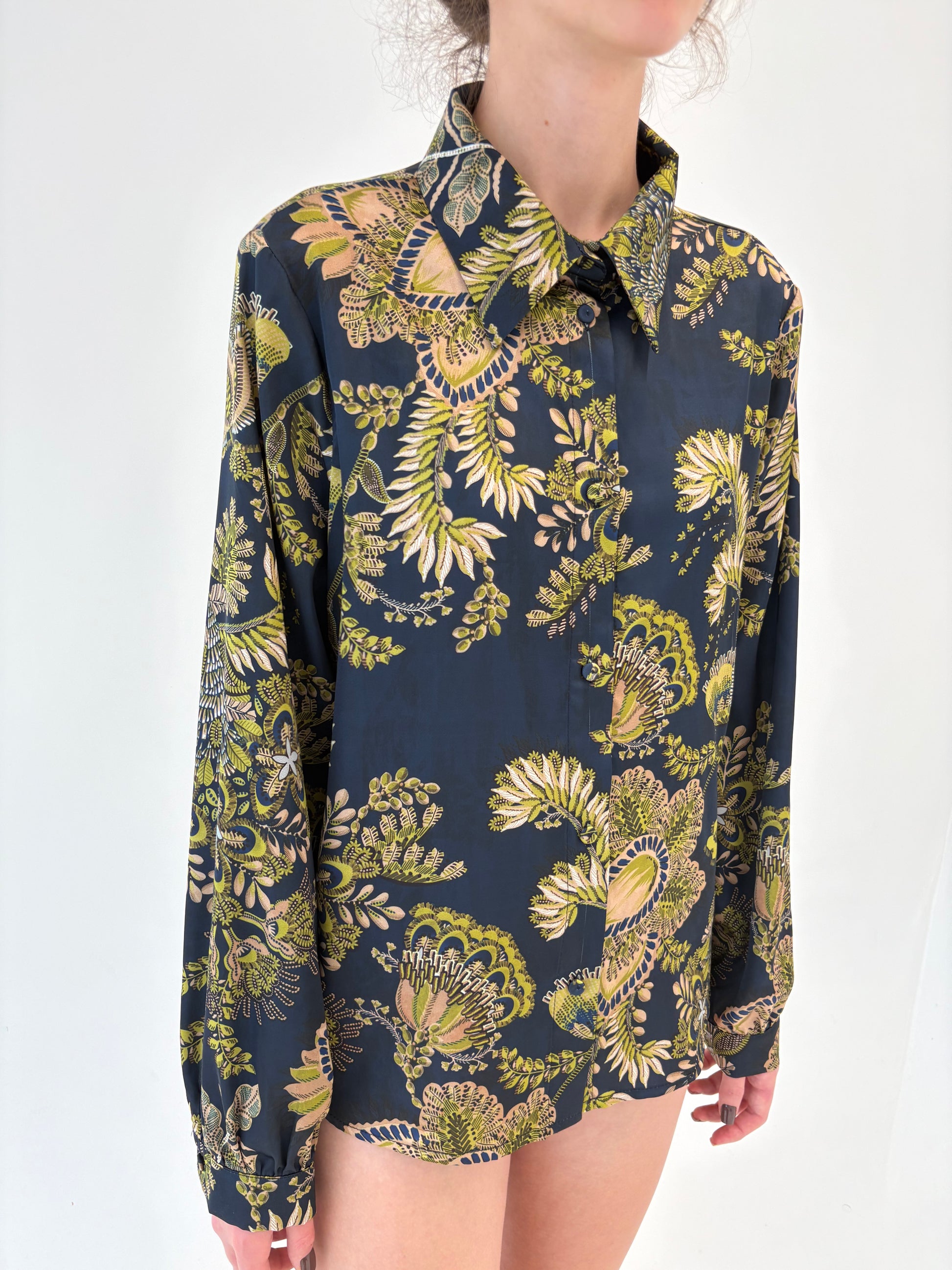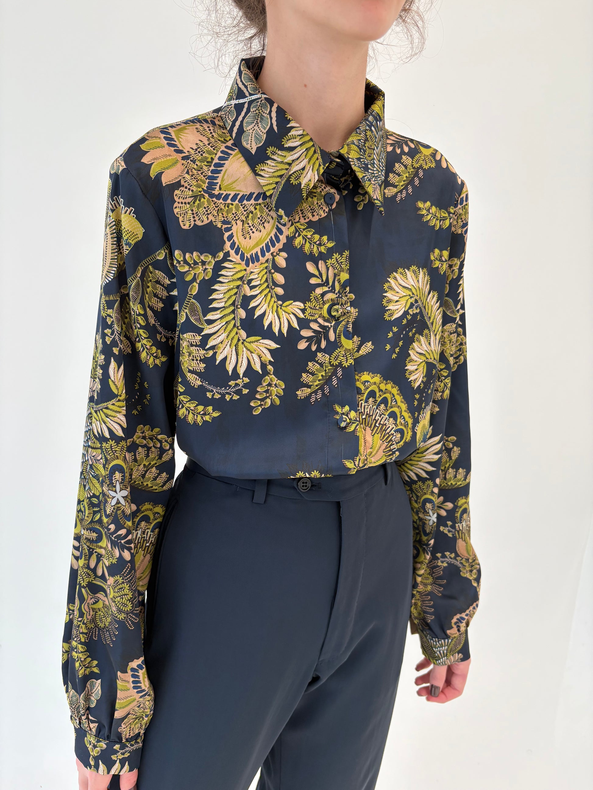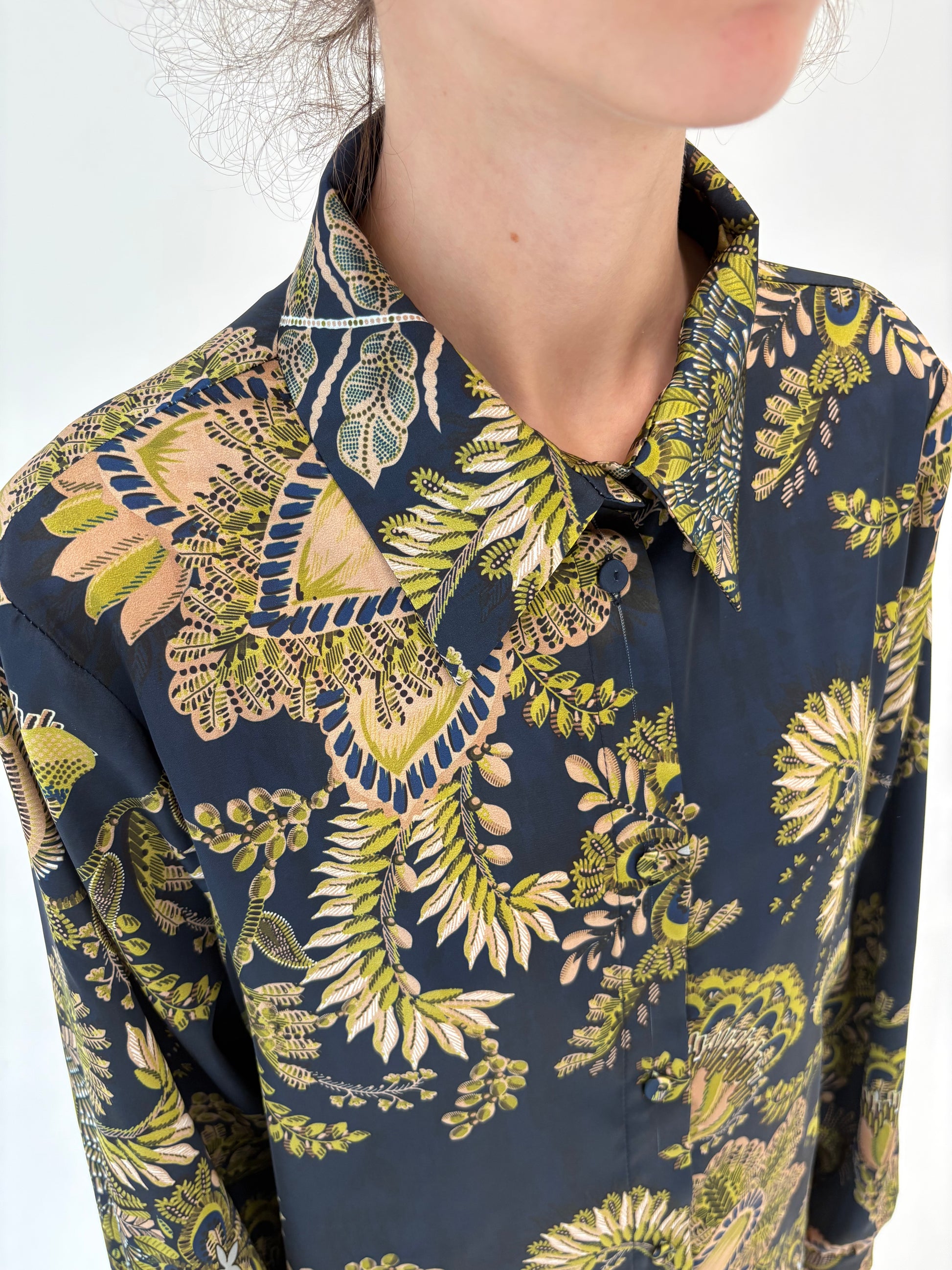 Cămașa italiană ușor satinata cu print organic în nuanțe de verde