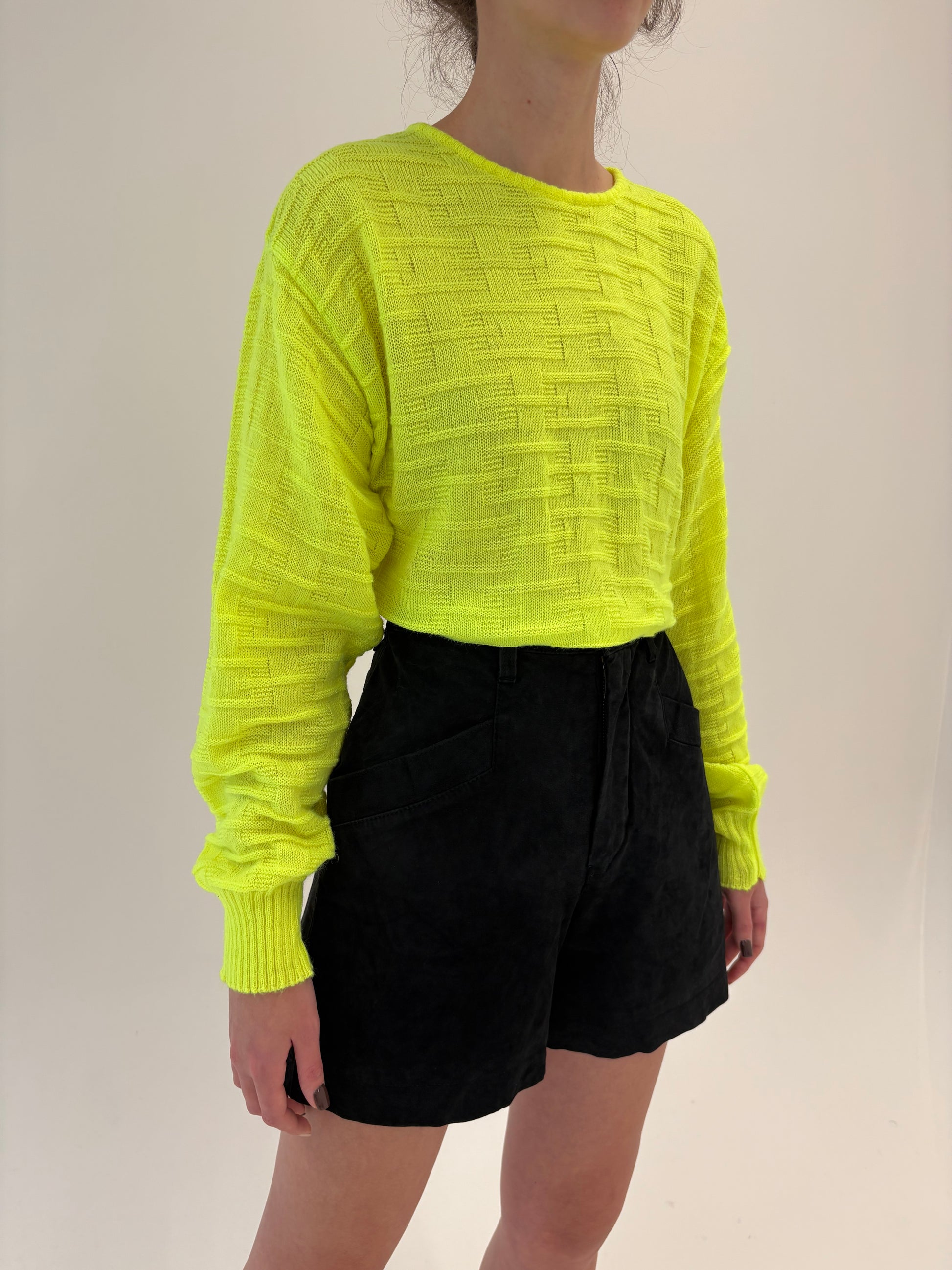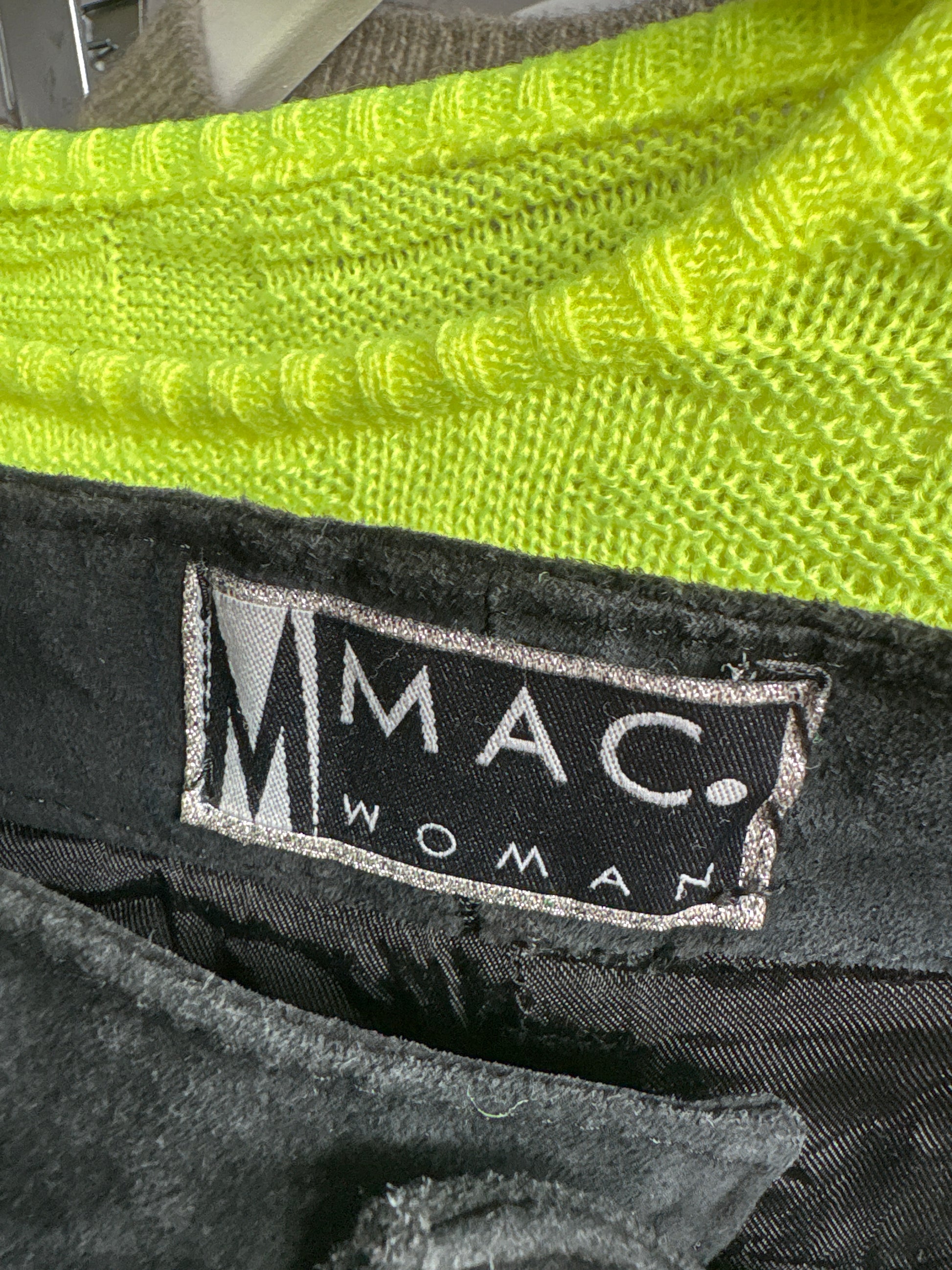 Pantaloni vintage negri din piele naturală întoarsă cu talie ultra înaltă