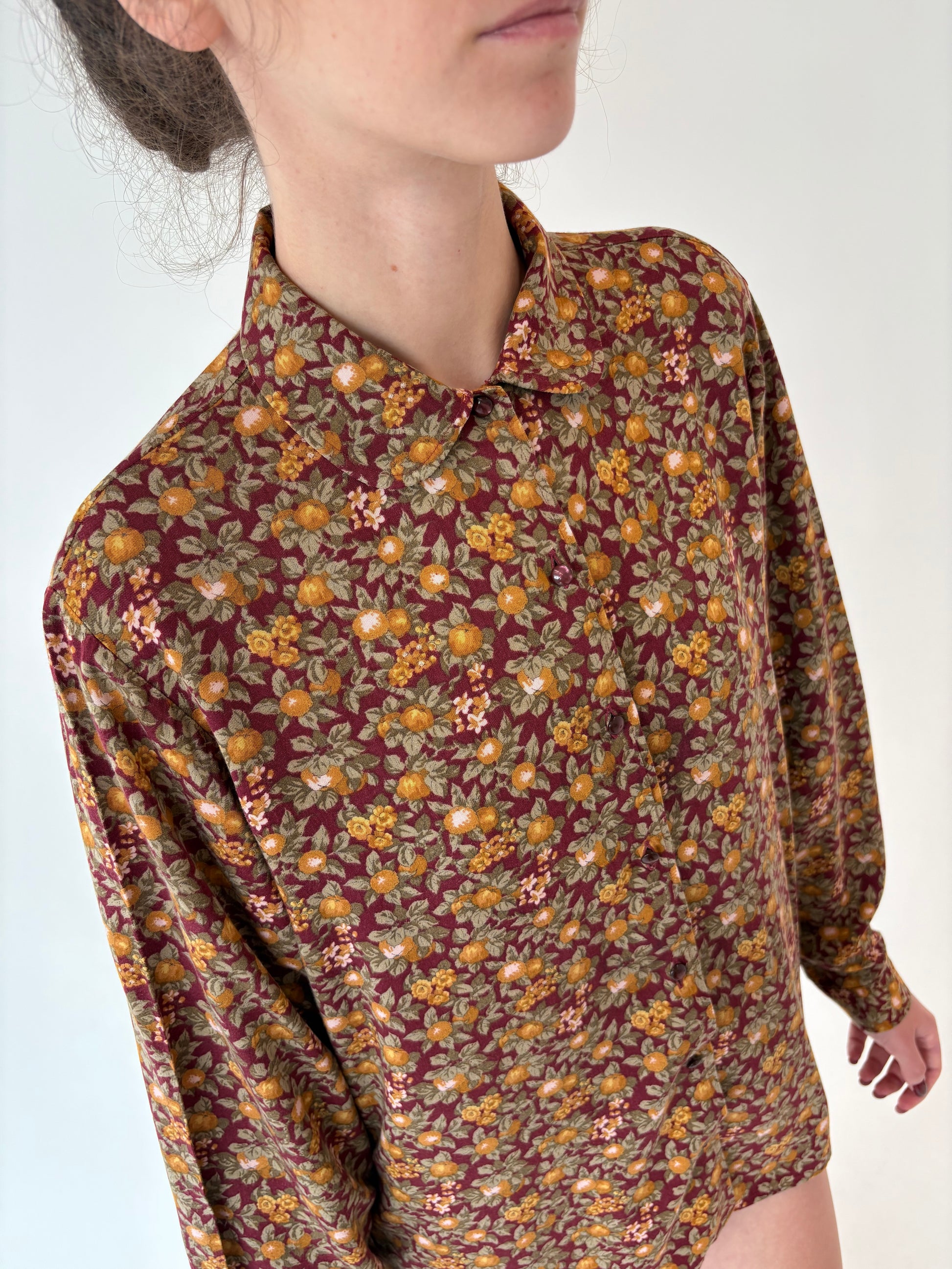 Cămașa vintage burgundy cu print delicat din poplin plin de toamnă