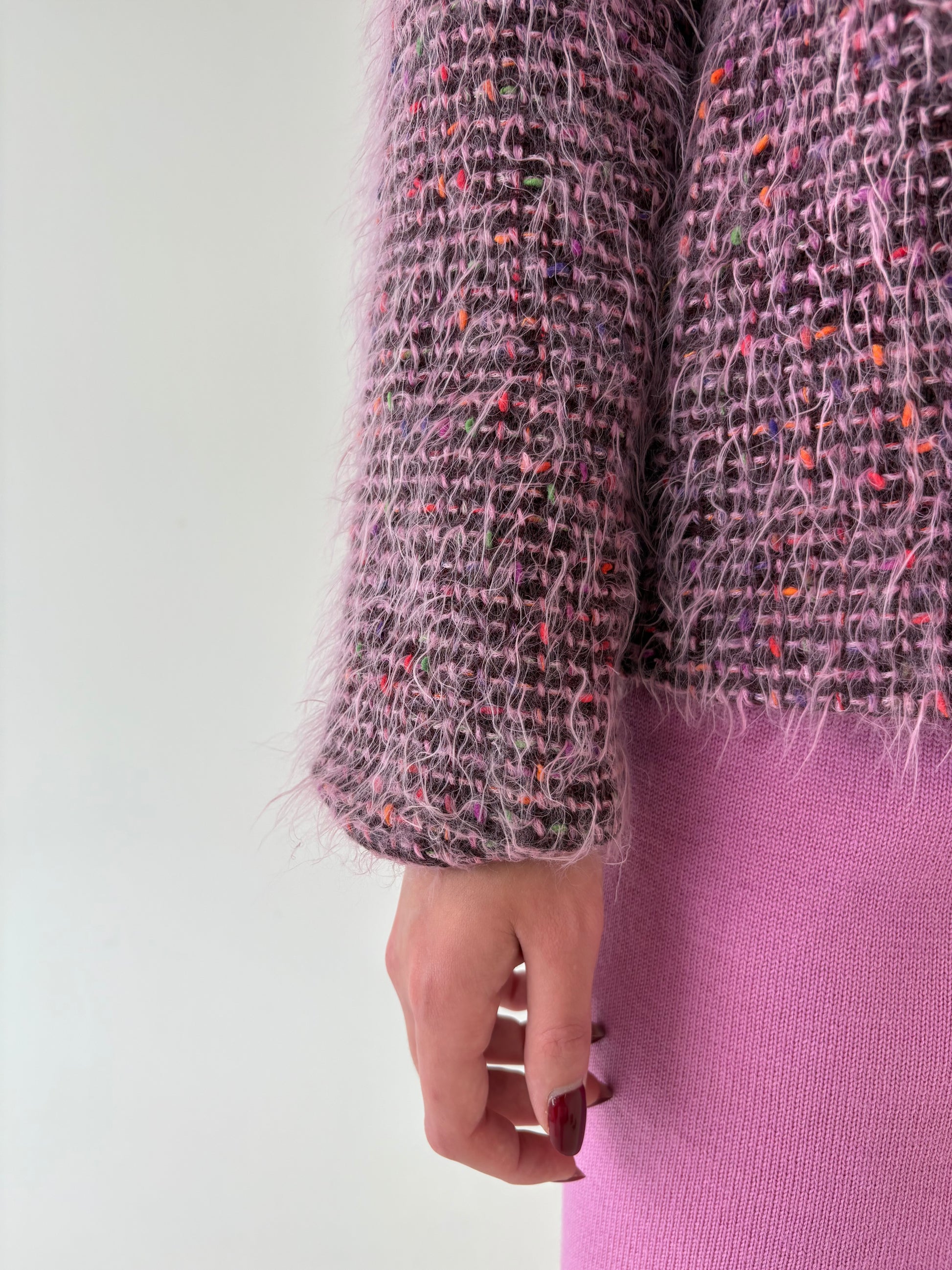 Sacou în stil Chanel din tweed multicolor spectaculos