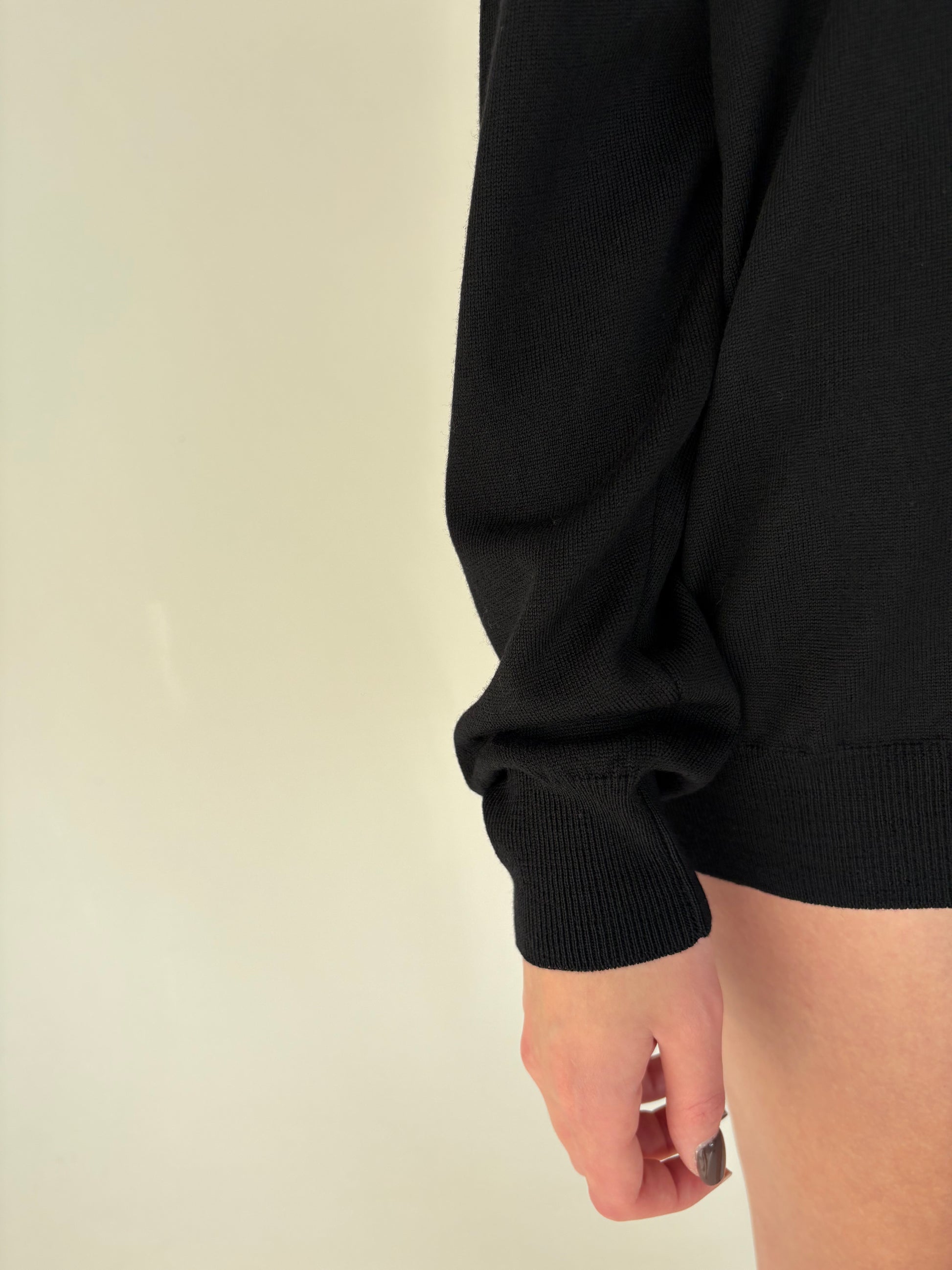 Pulover italian negru în anchior din lana merino extrafina de gramaj mare