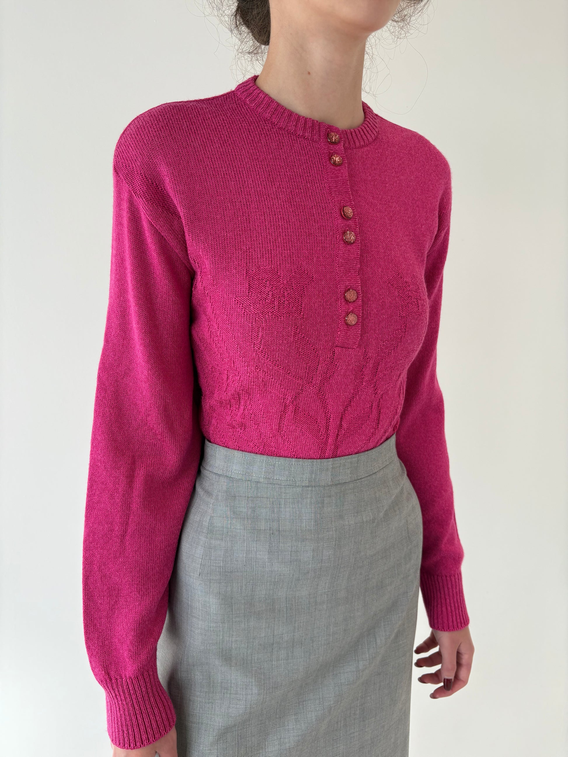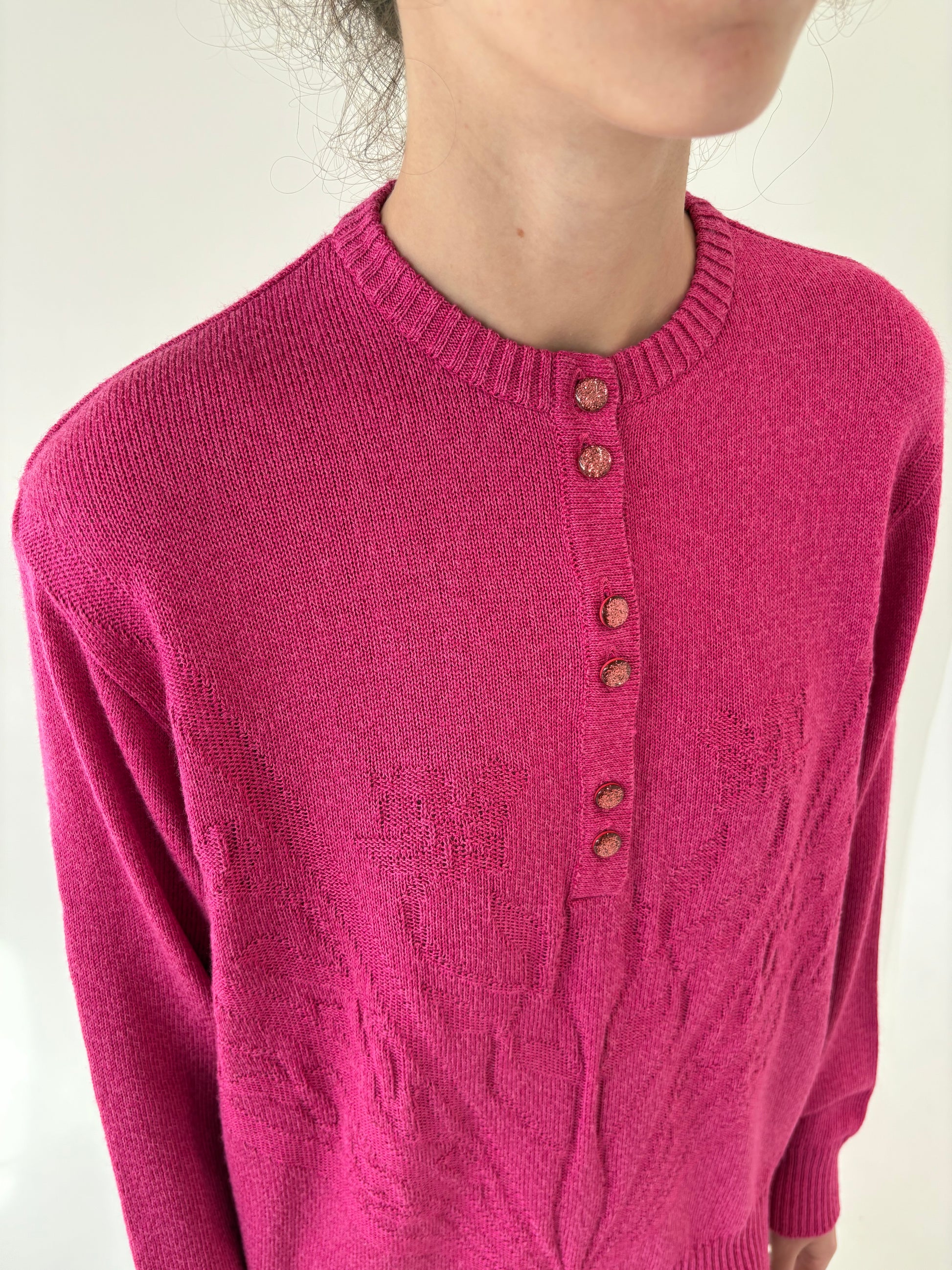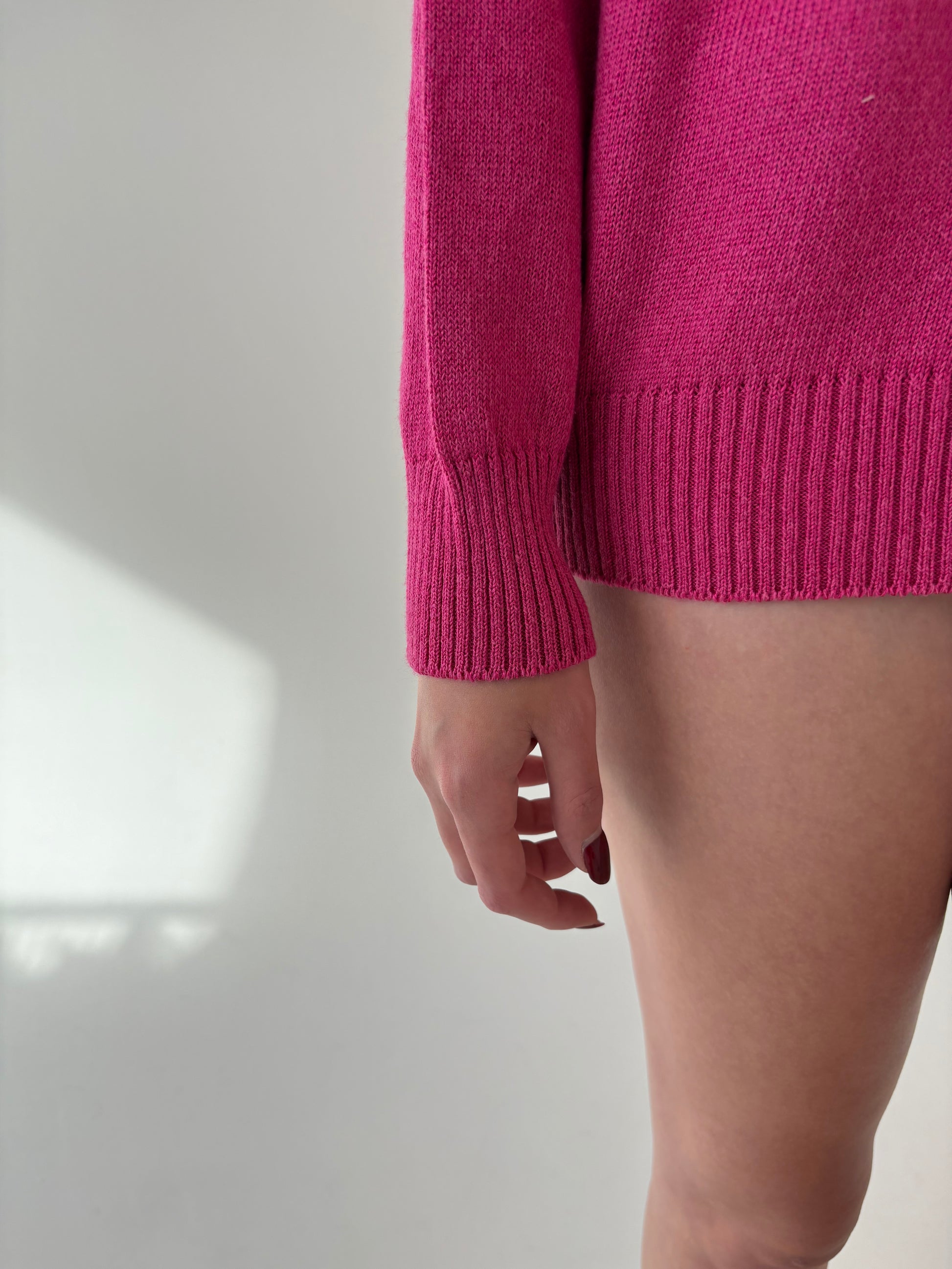 Pulover vintage Barbie pink din mix de lana merino extrafina de gramaj mare