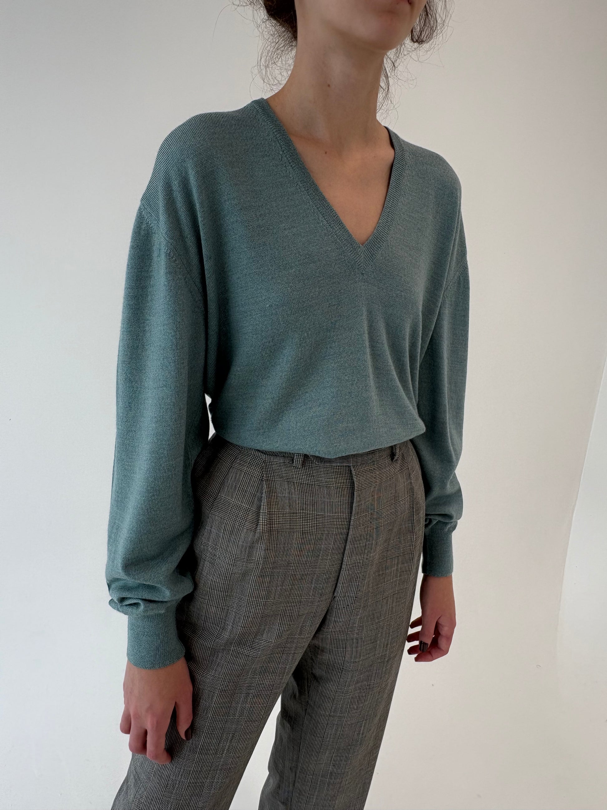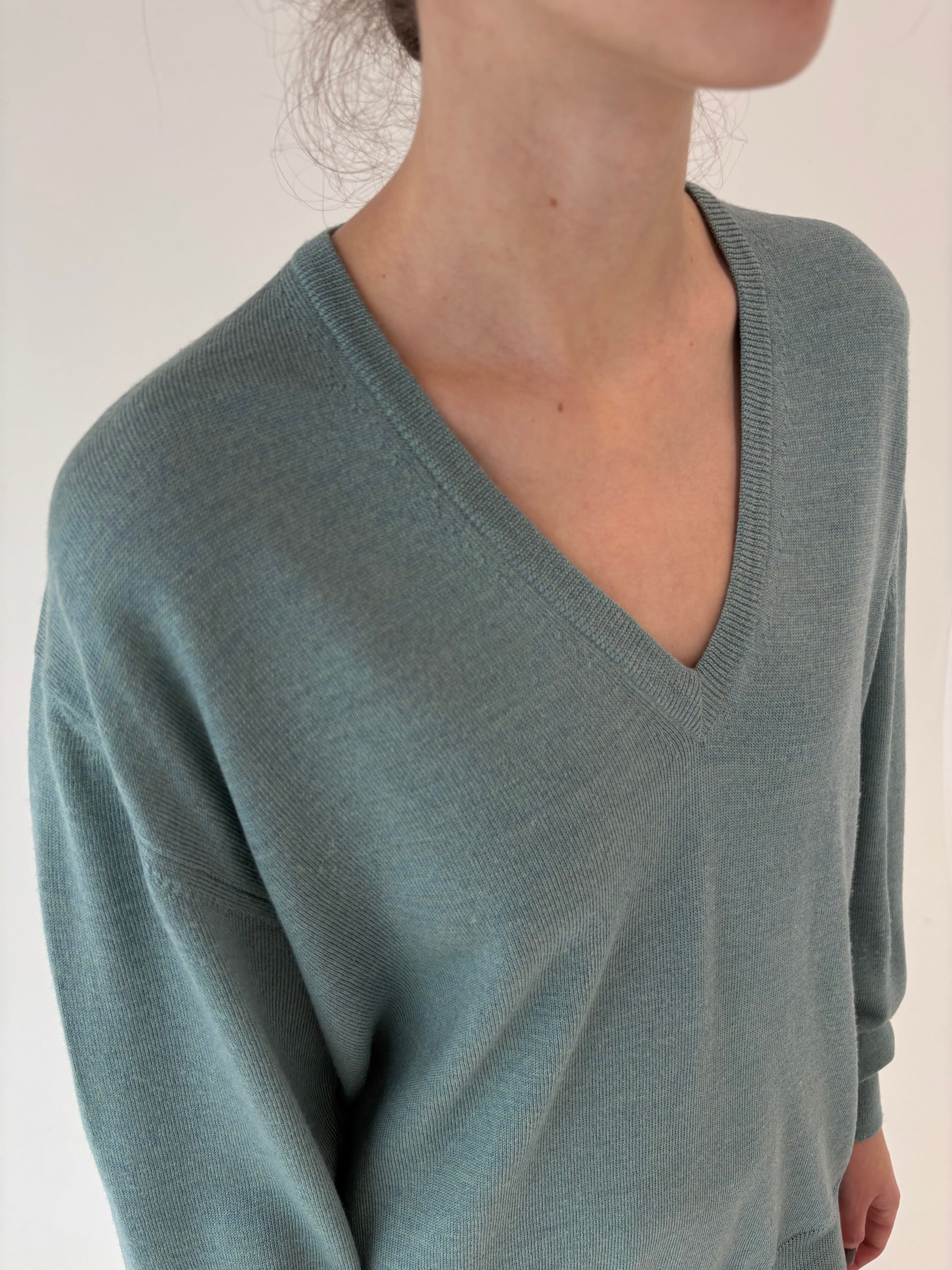 Pulover în croi lejer și anchior cu manșete îngustate din lana extrafina