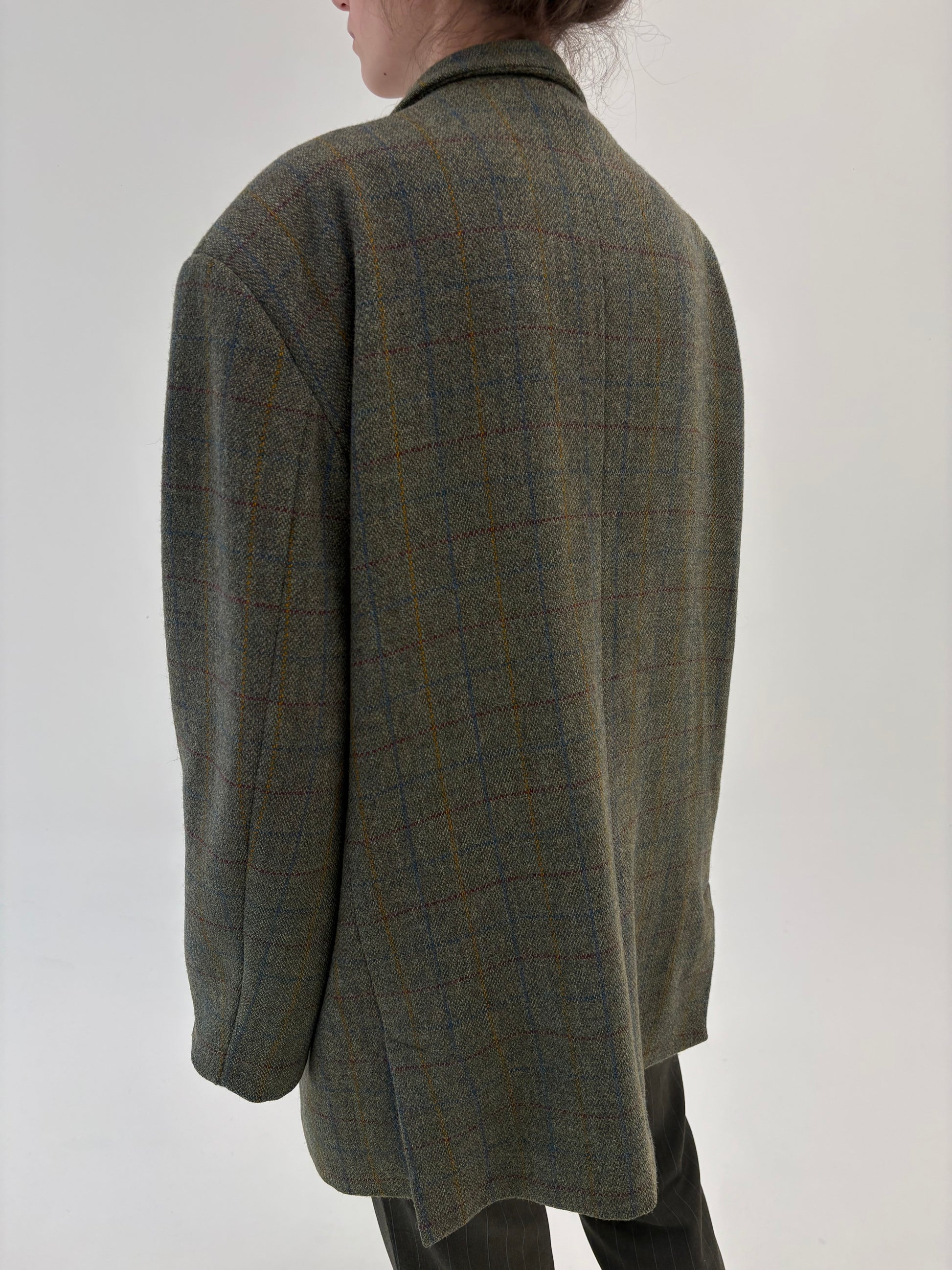 Sacou plus size din tweed forest green în carouri colorate