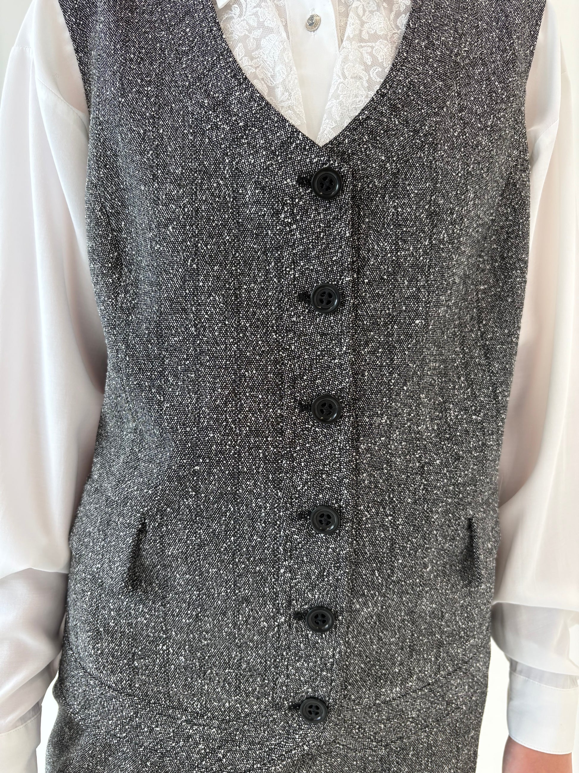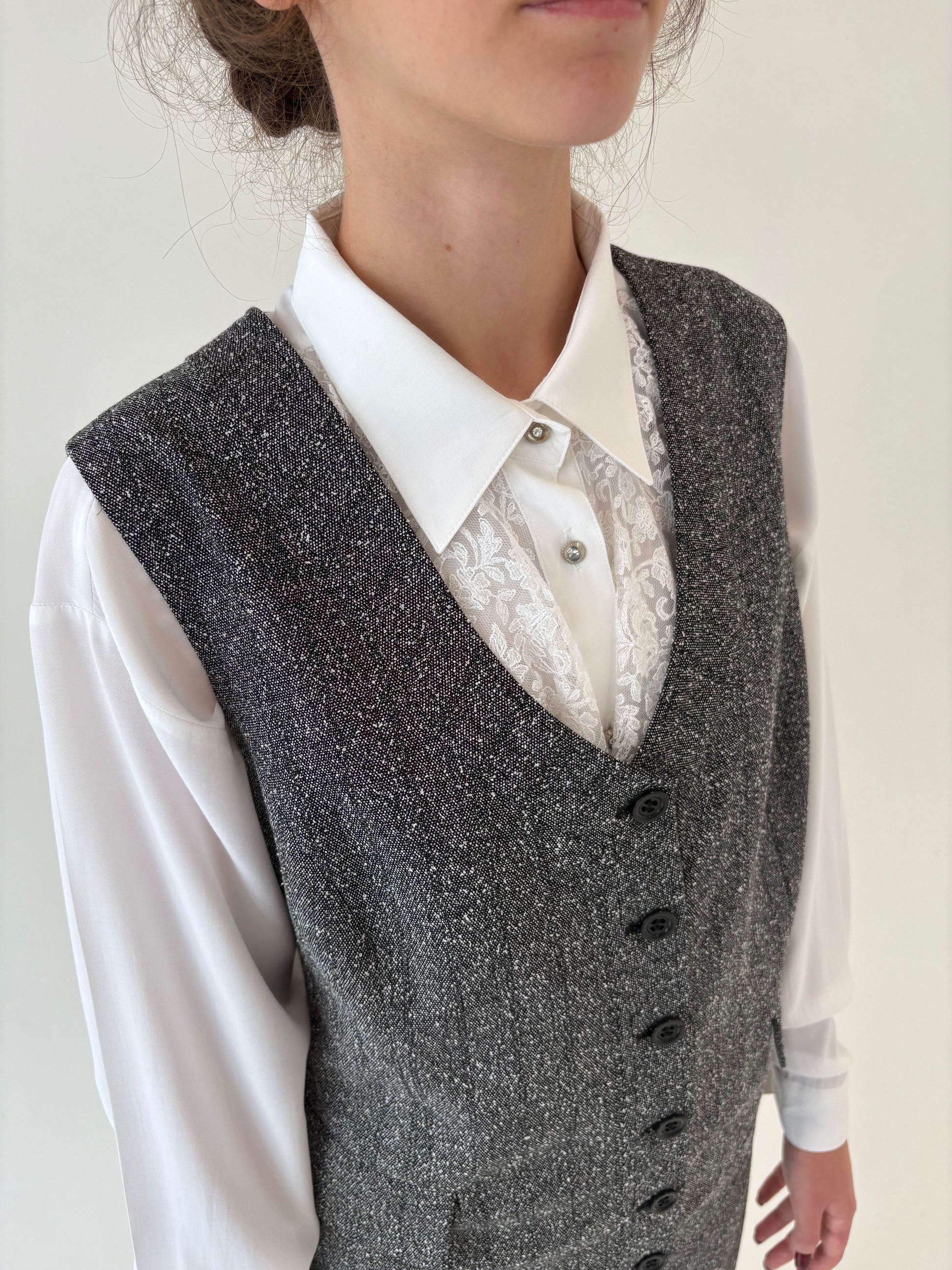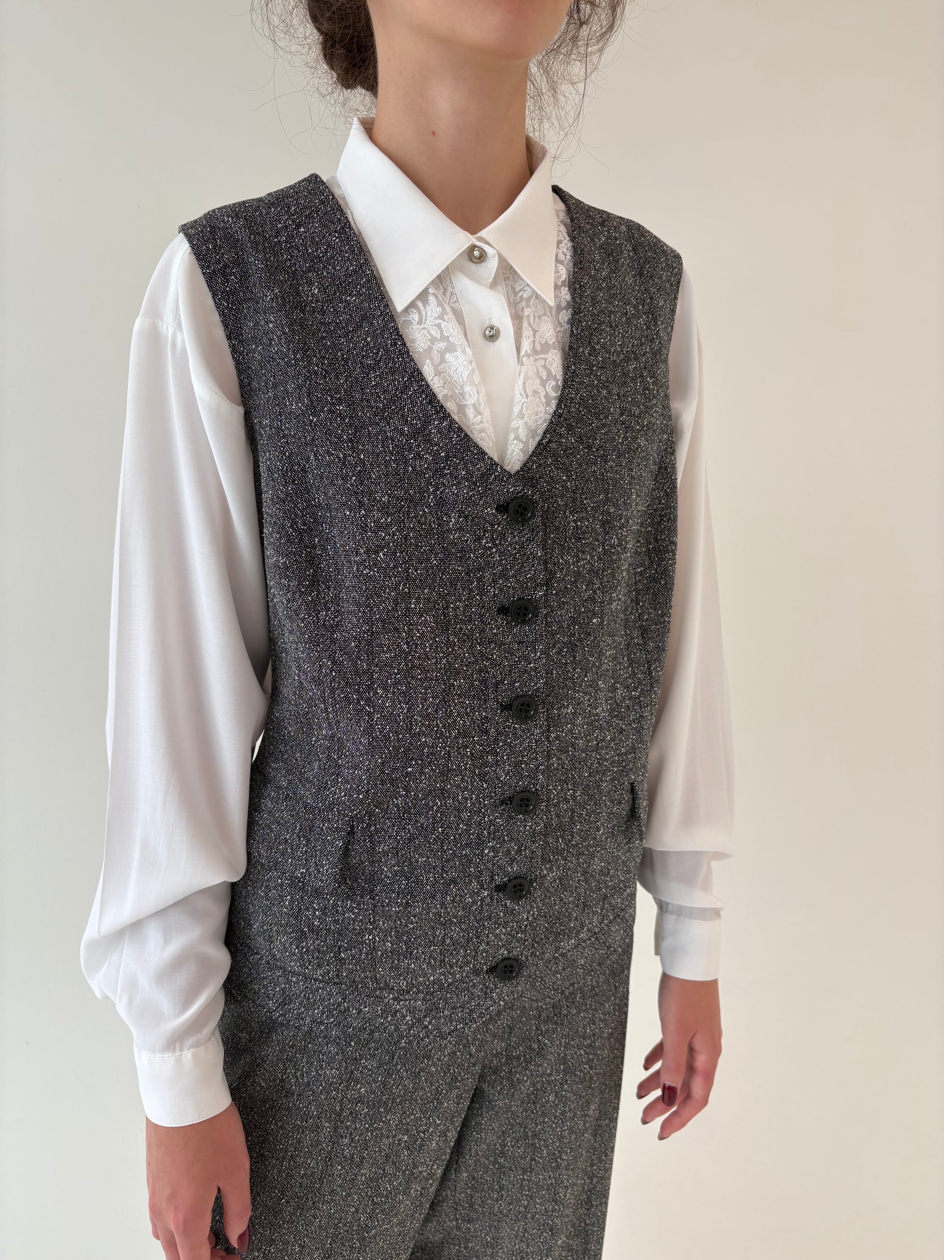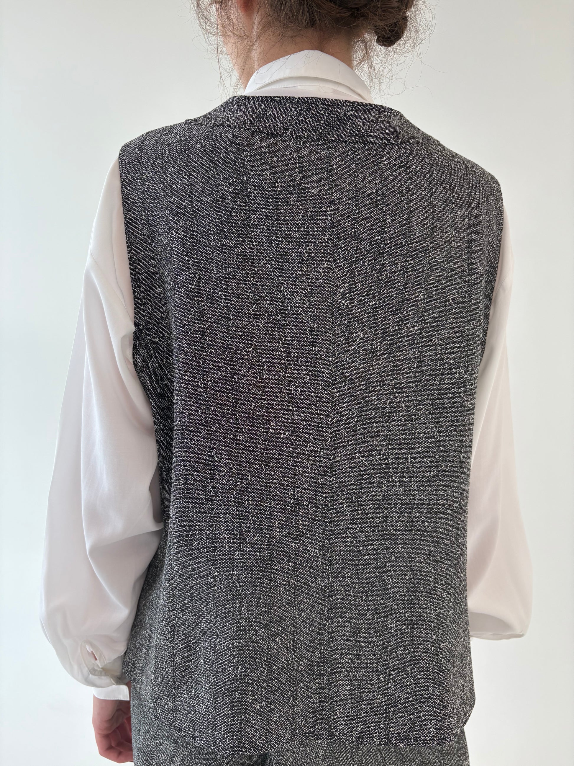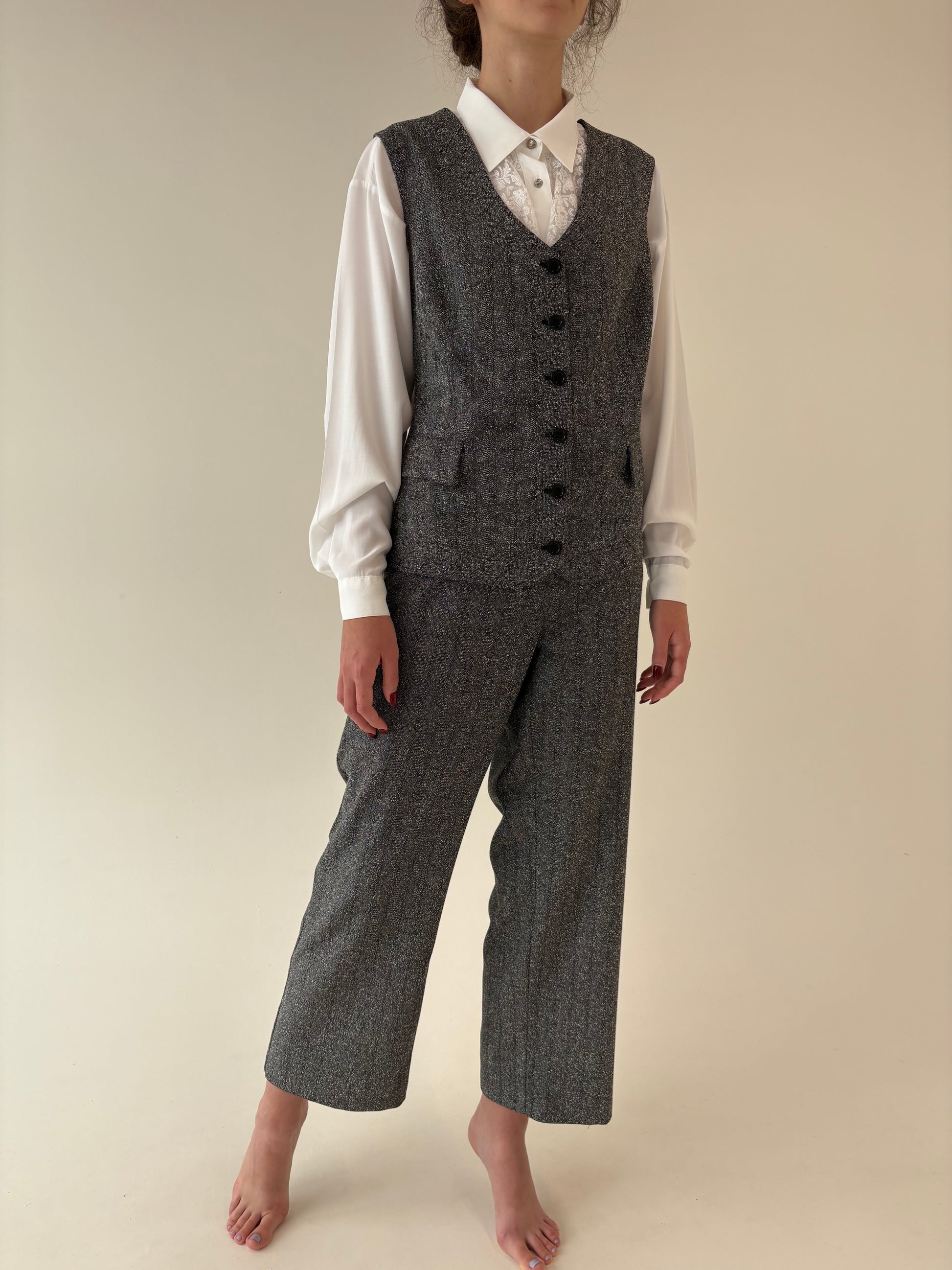 Deux piece cu vesta cambrata din boucle subțire și pantaloni drept