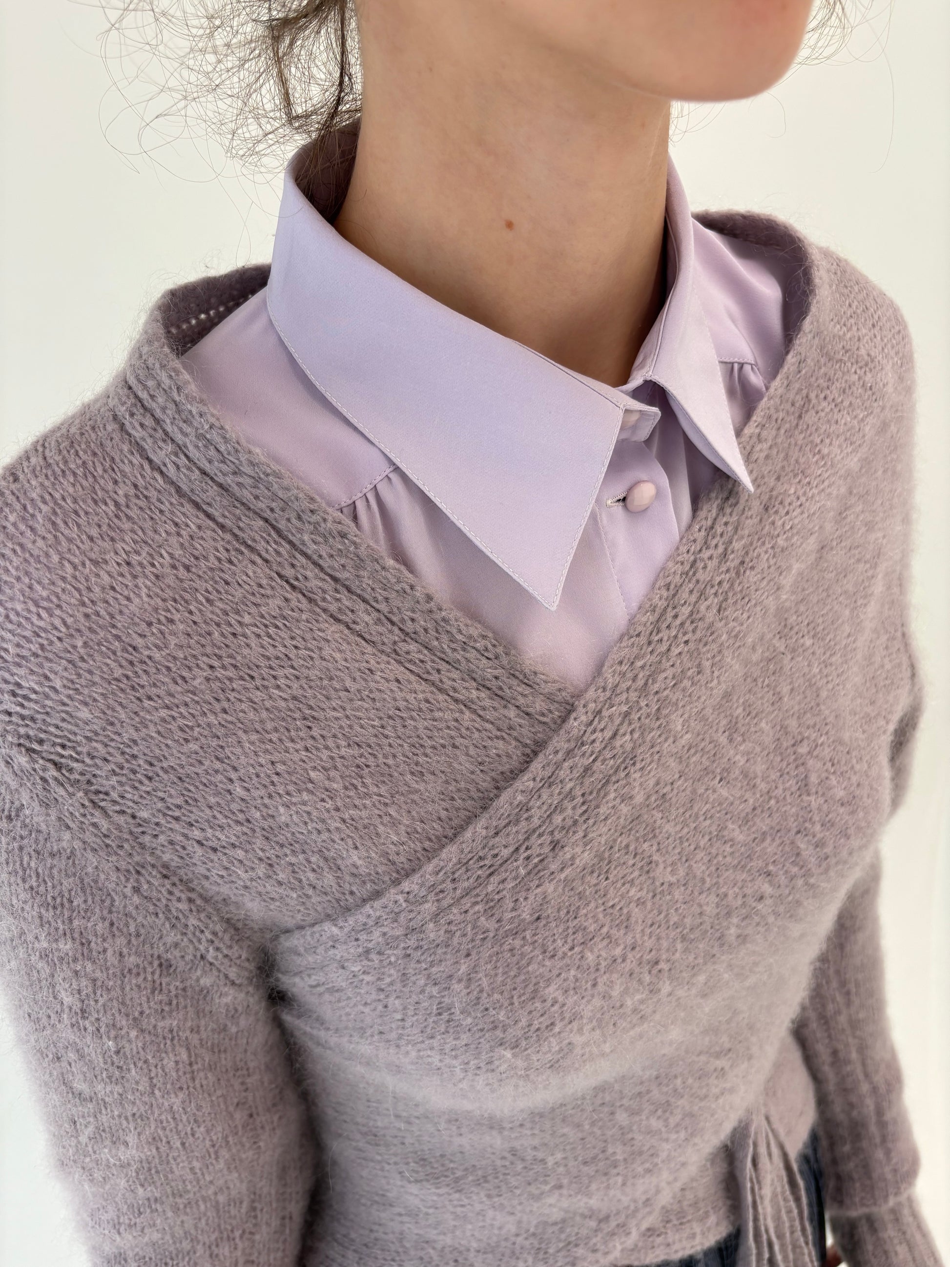 Cardigan din baby mohair dusty lavender petrecut și cambrat