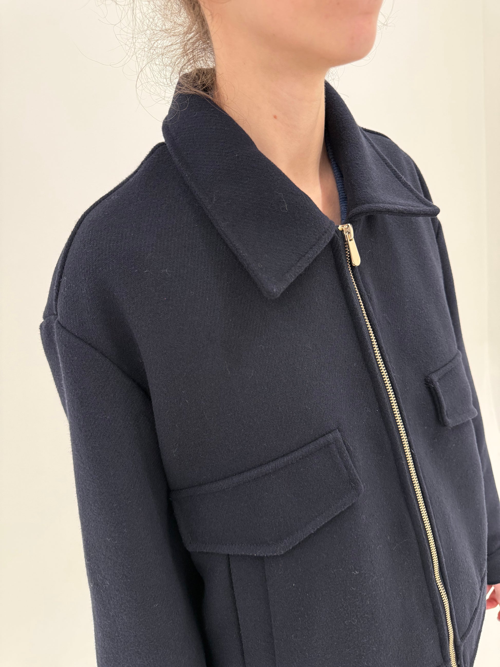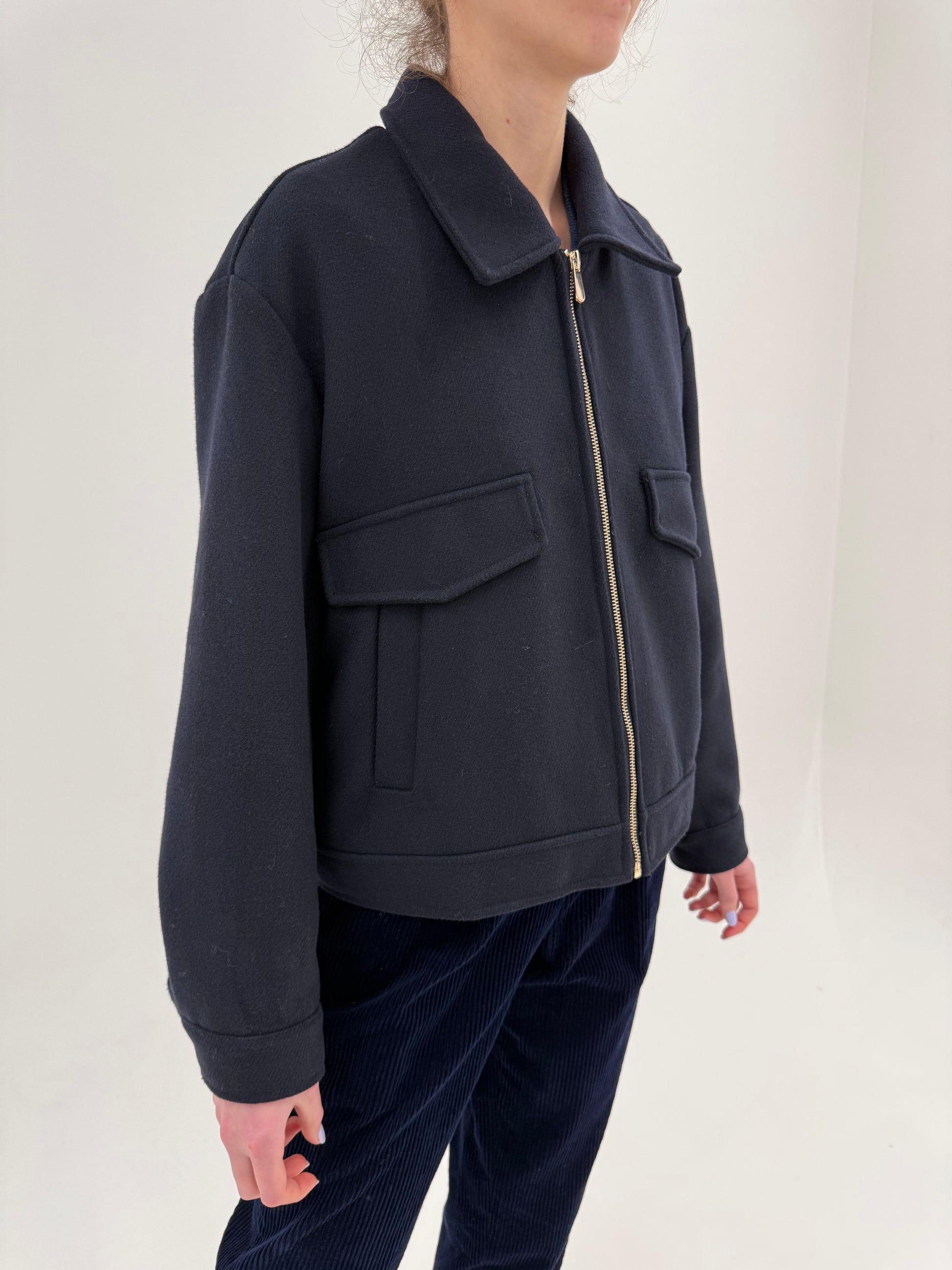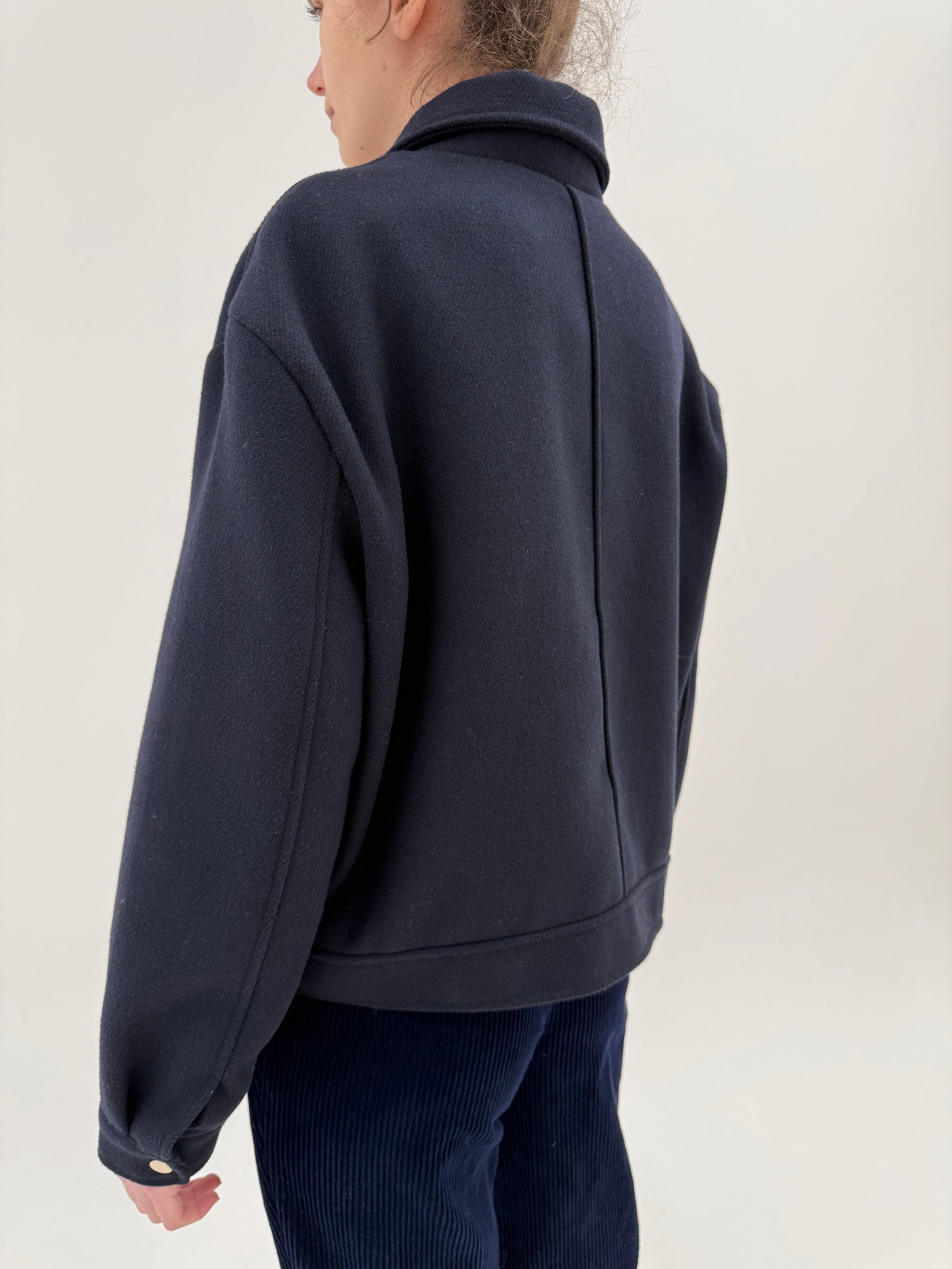 este un croi amplu se poartă oversized, recomandăm la M40 sau L mic, nu e potrivită pt persoane înalte decât pe mărimi mici