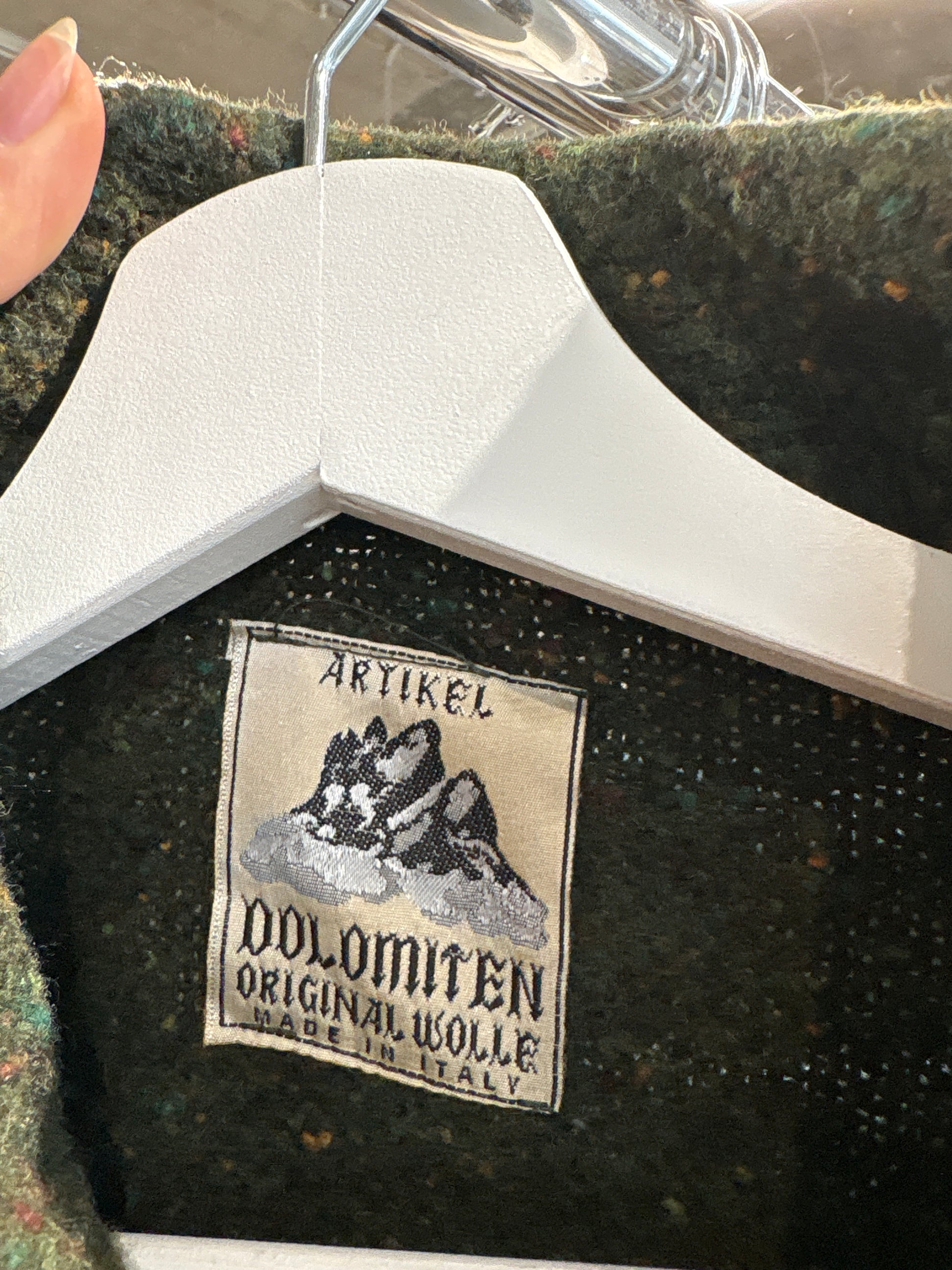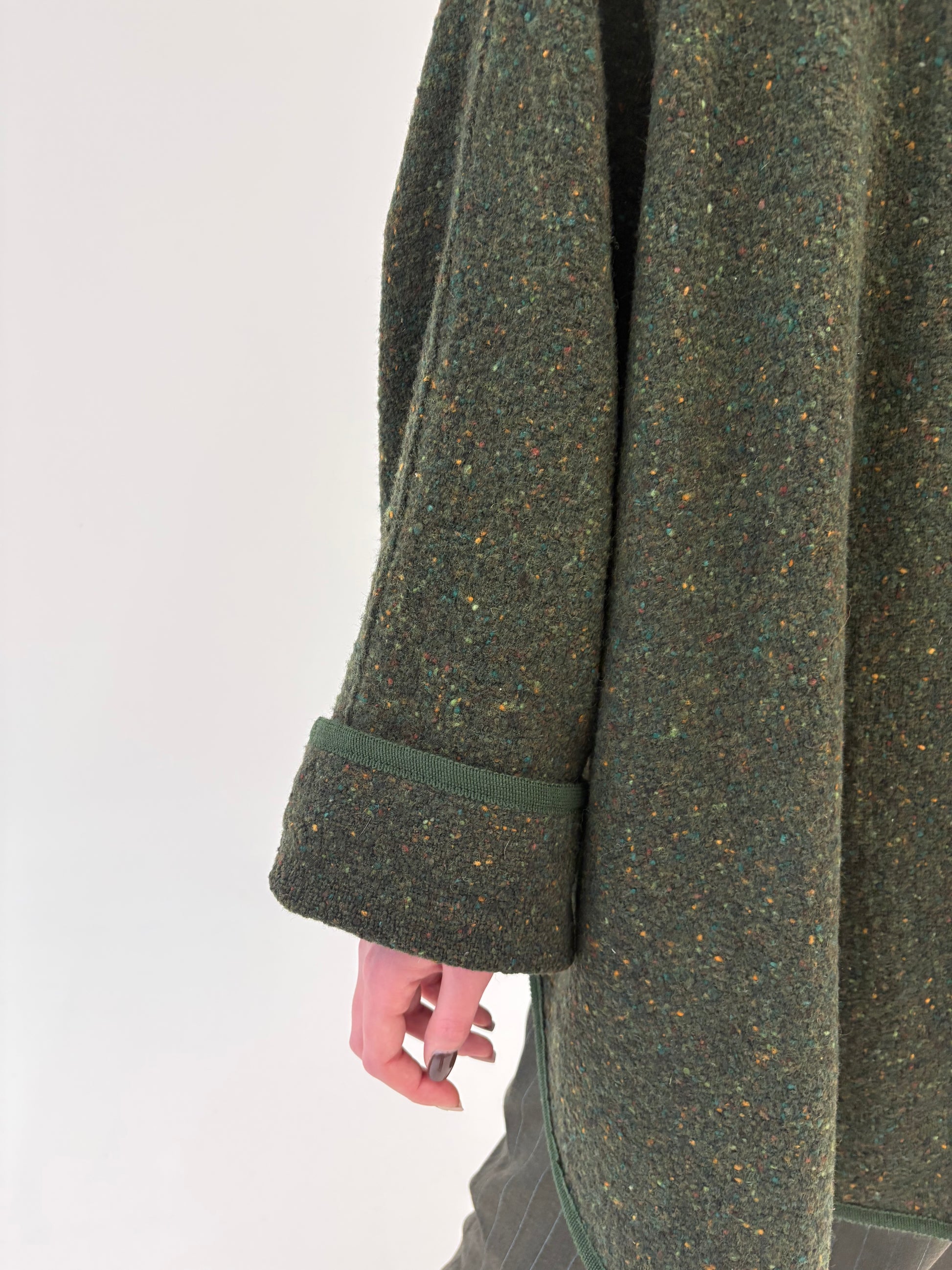 Palton vintage tip capa forest green din tweed Donegal 80% lana cu inserții colorate