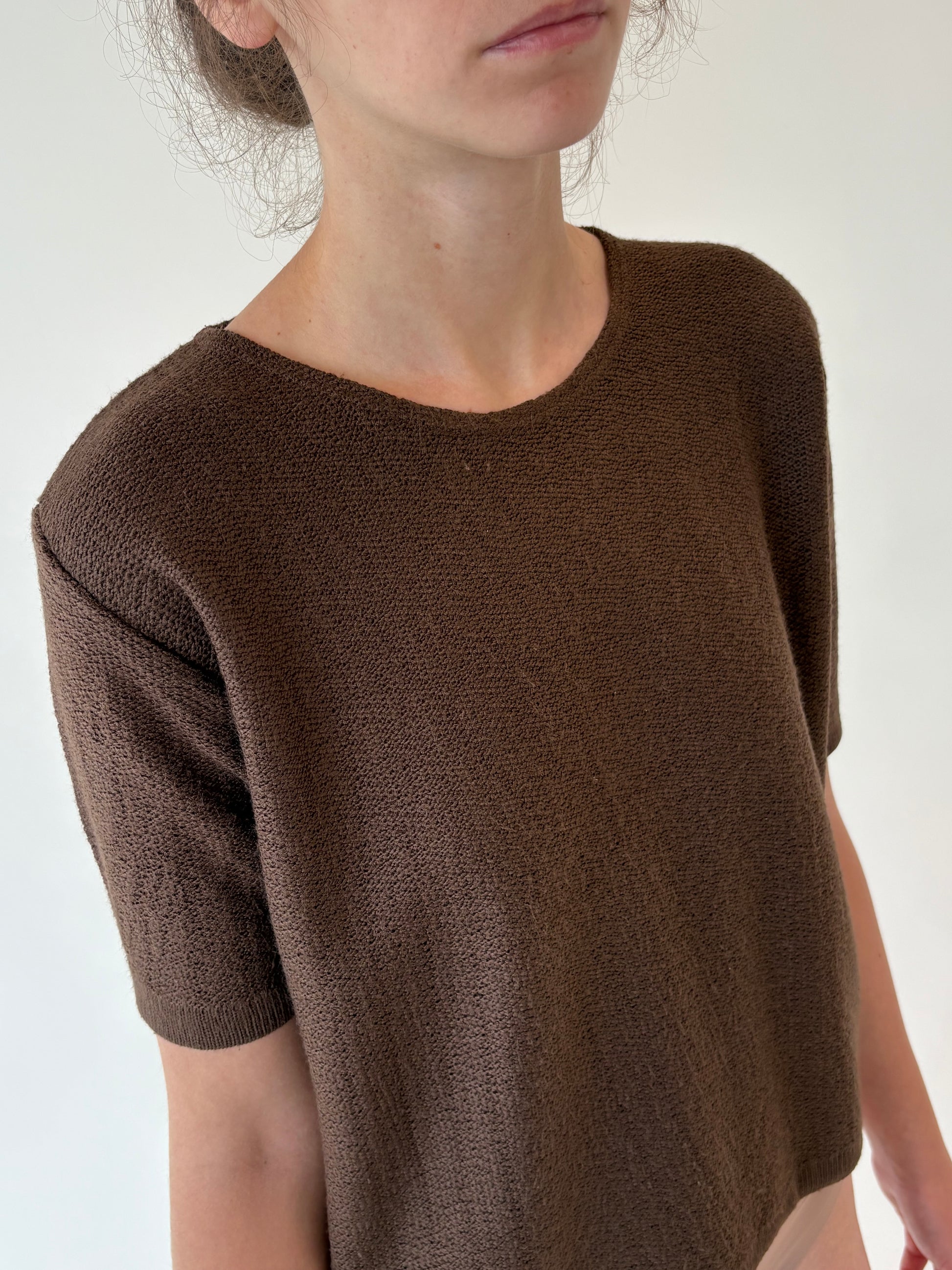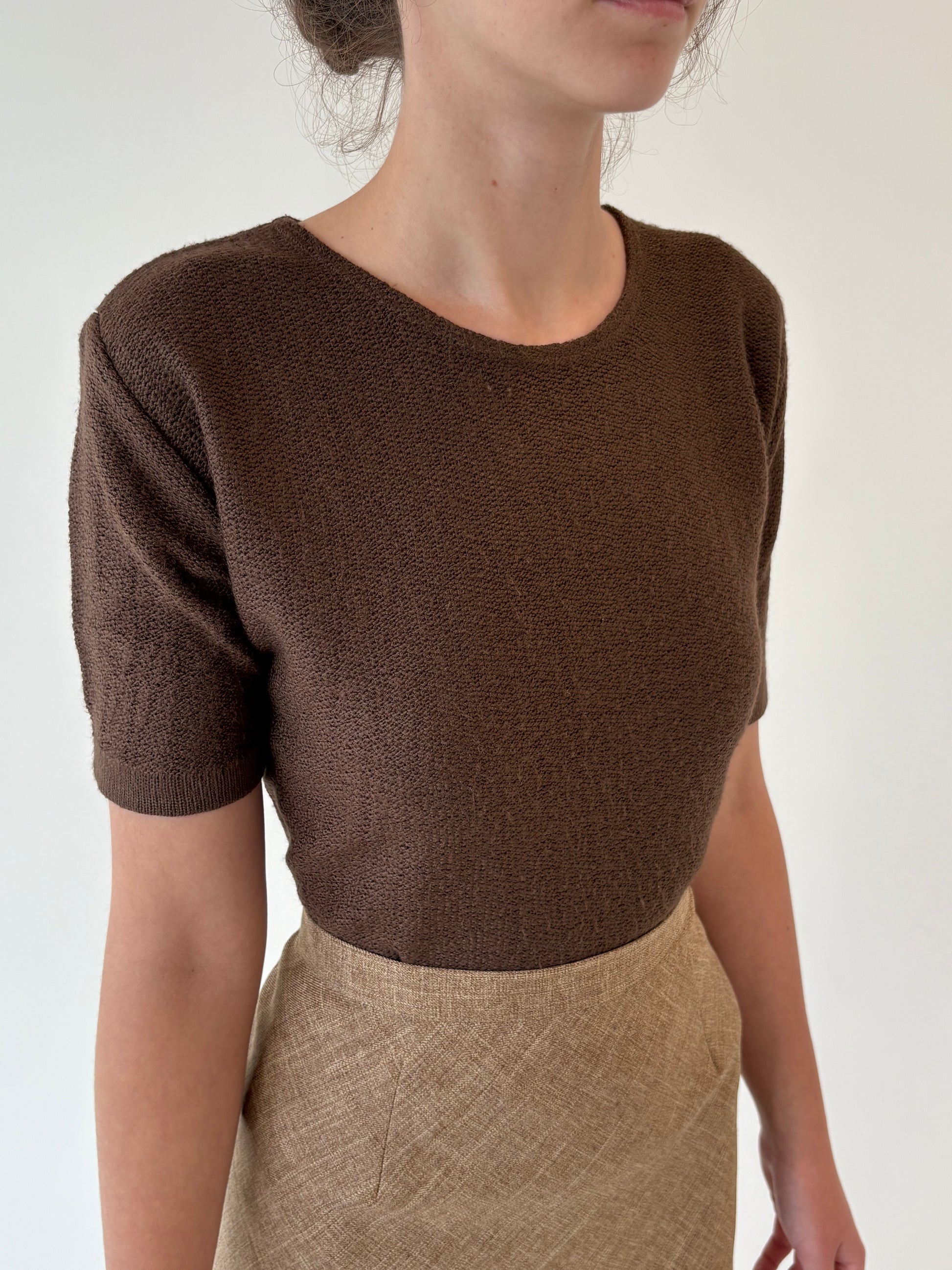 Top vintage chocolate brown din jerse din mix de lana extrafina