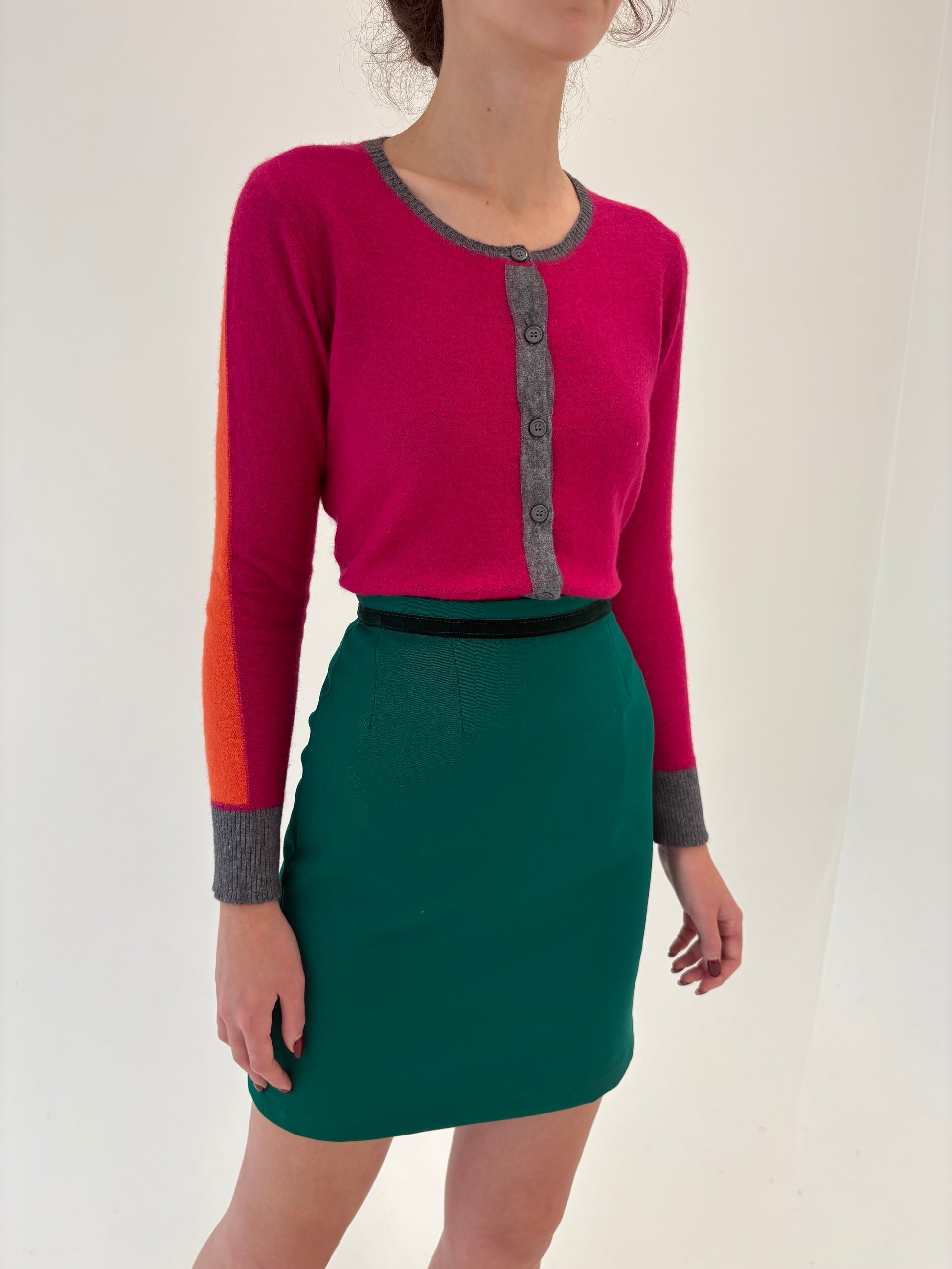 Fustă vintage verde smarald cu talie ultra înaltă marcată