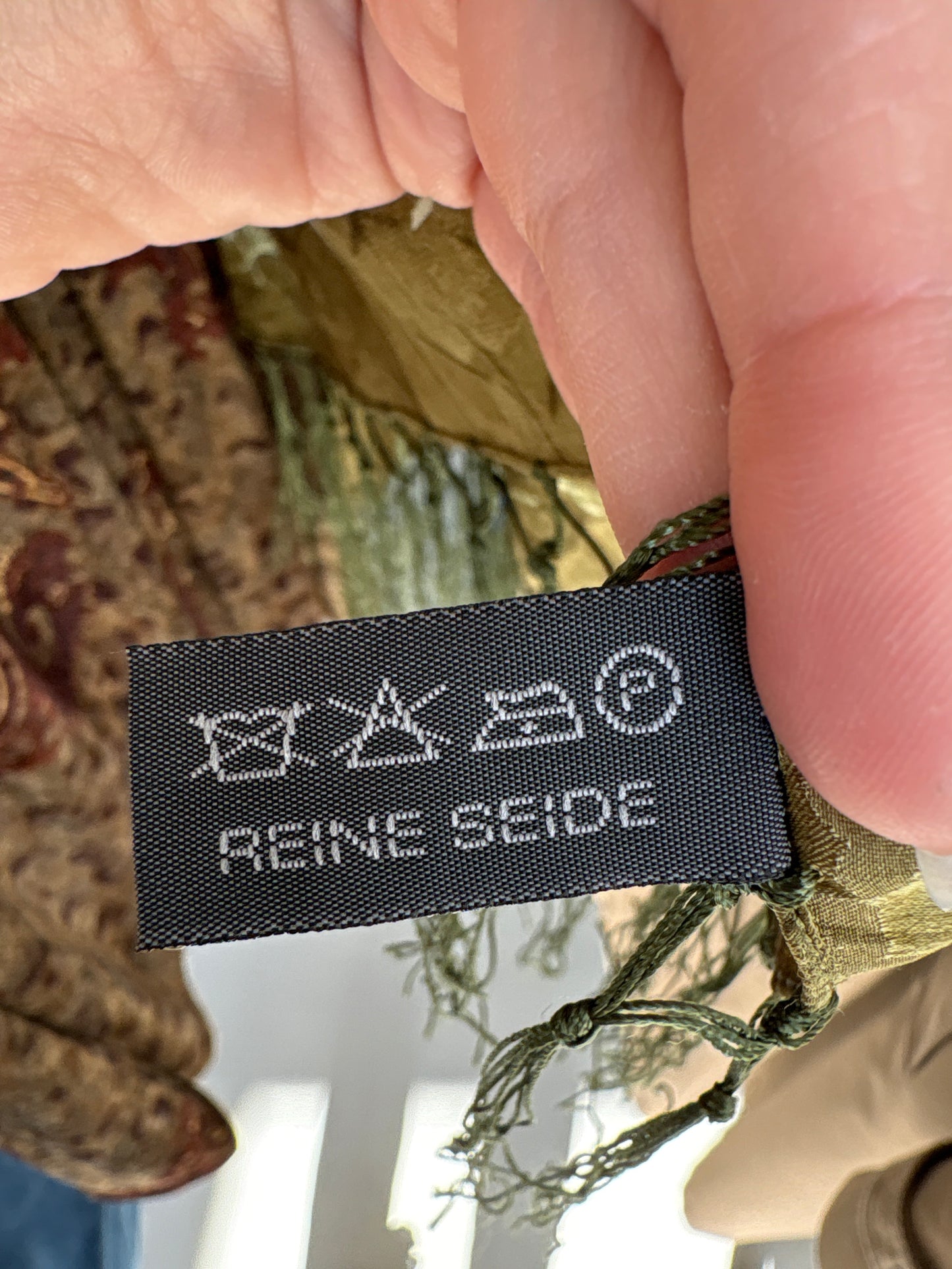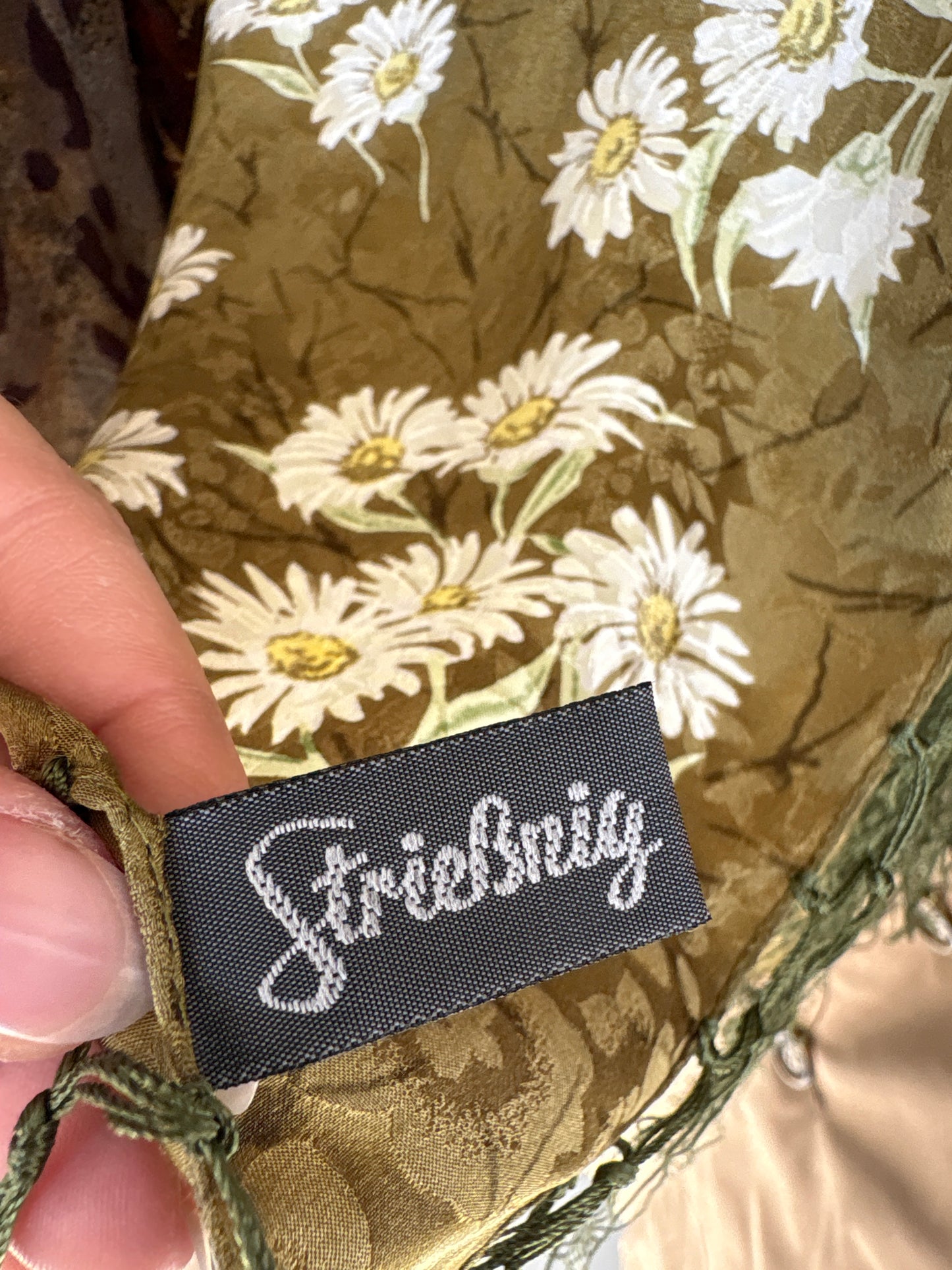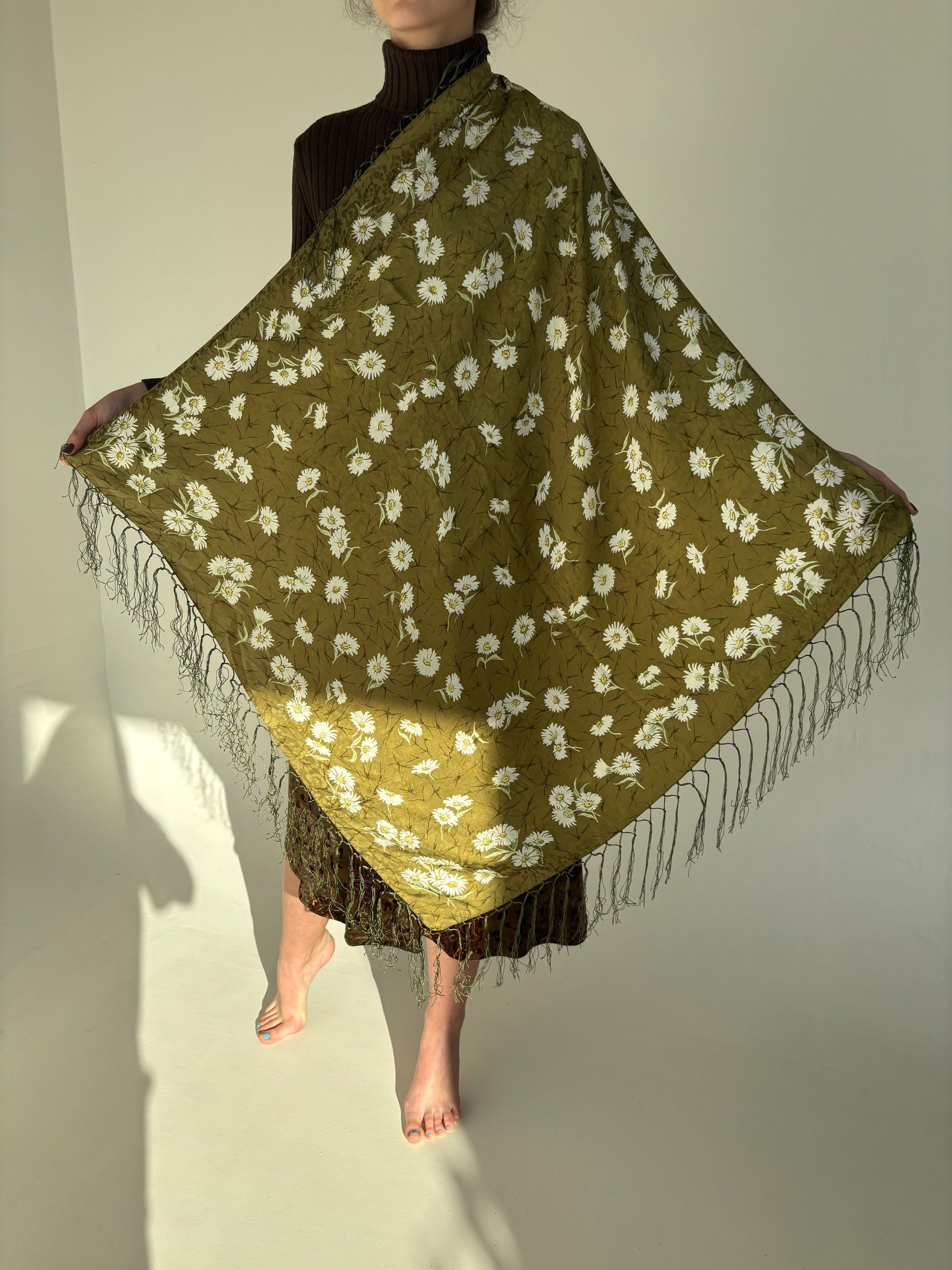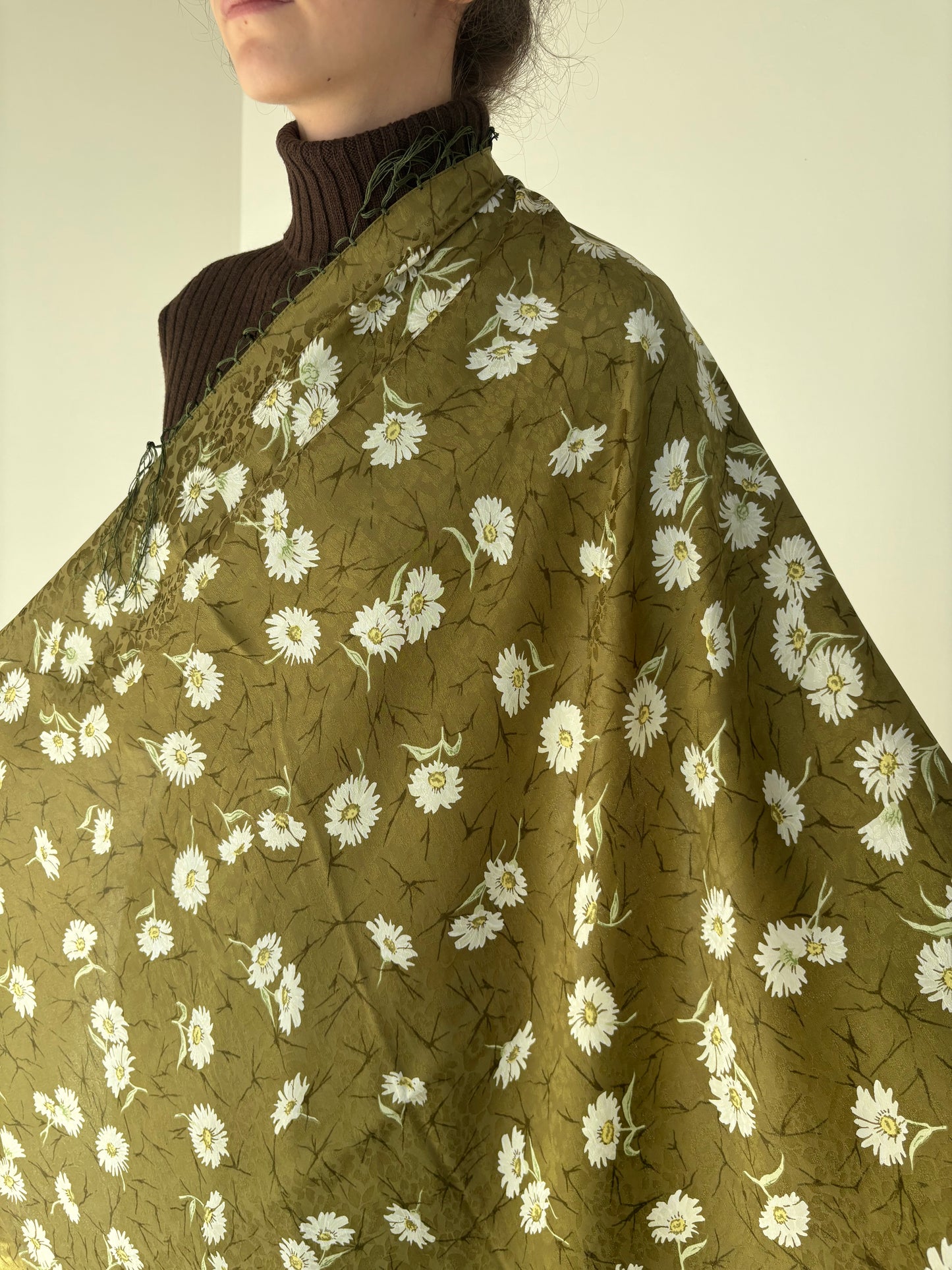 Eșarfă XXL din mătase natural cu print cu margarete pe seaweed green