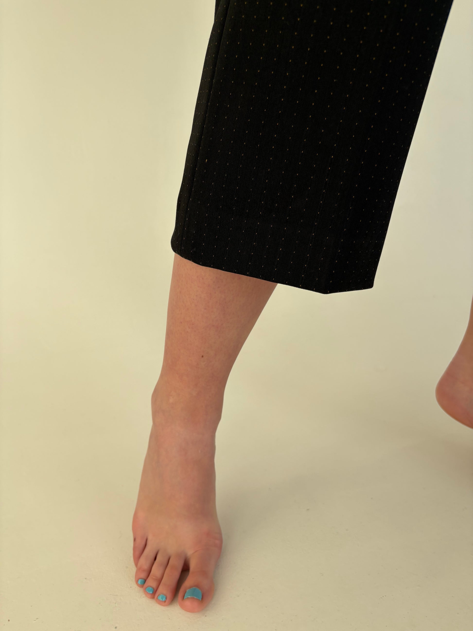 Pantaloni petite negri cu inserții fine camel din lana extrafina confort