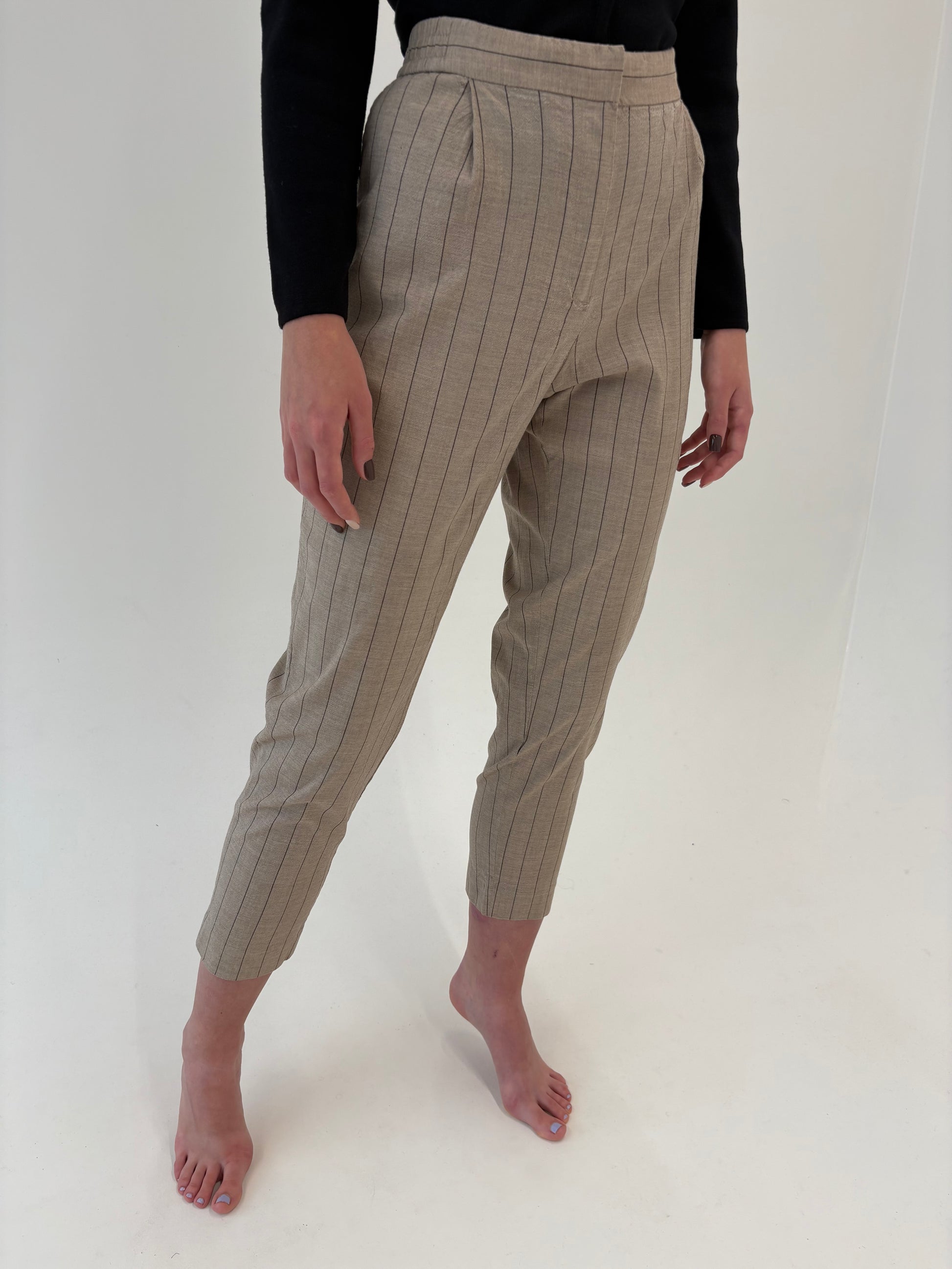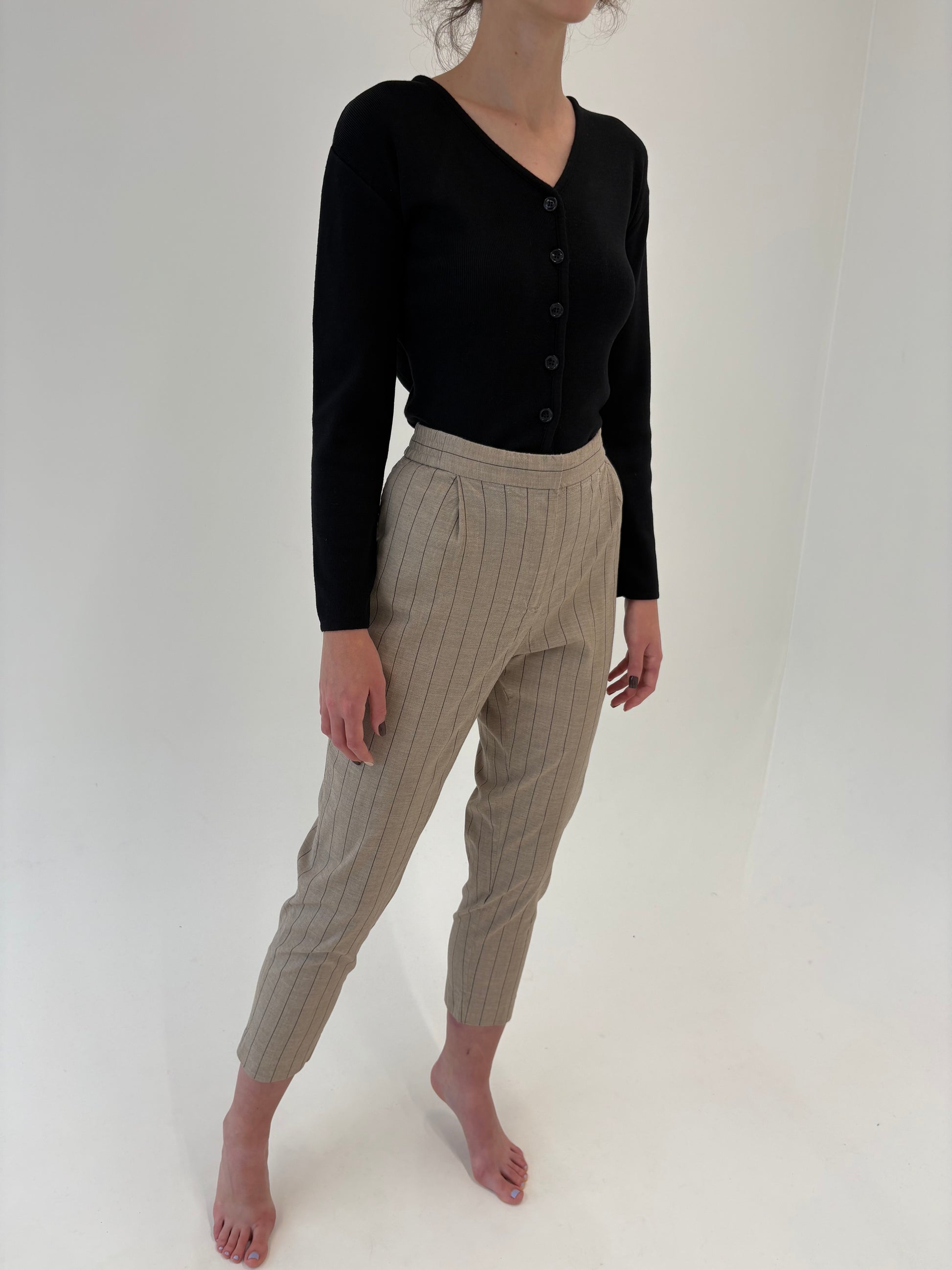 Pantaloni grej cu talie ultra înaltă din mix de lana extrafina și vascoza