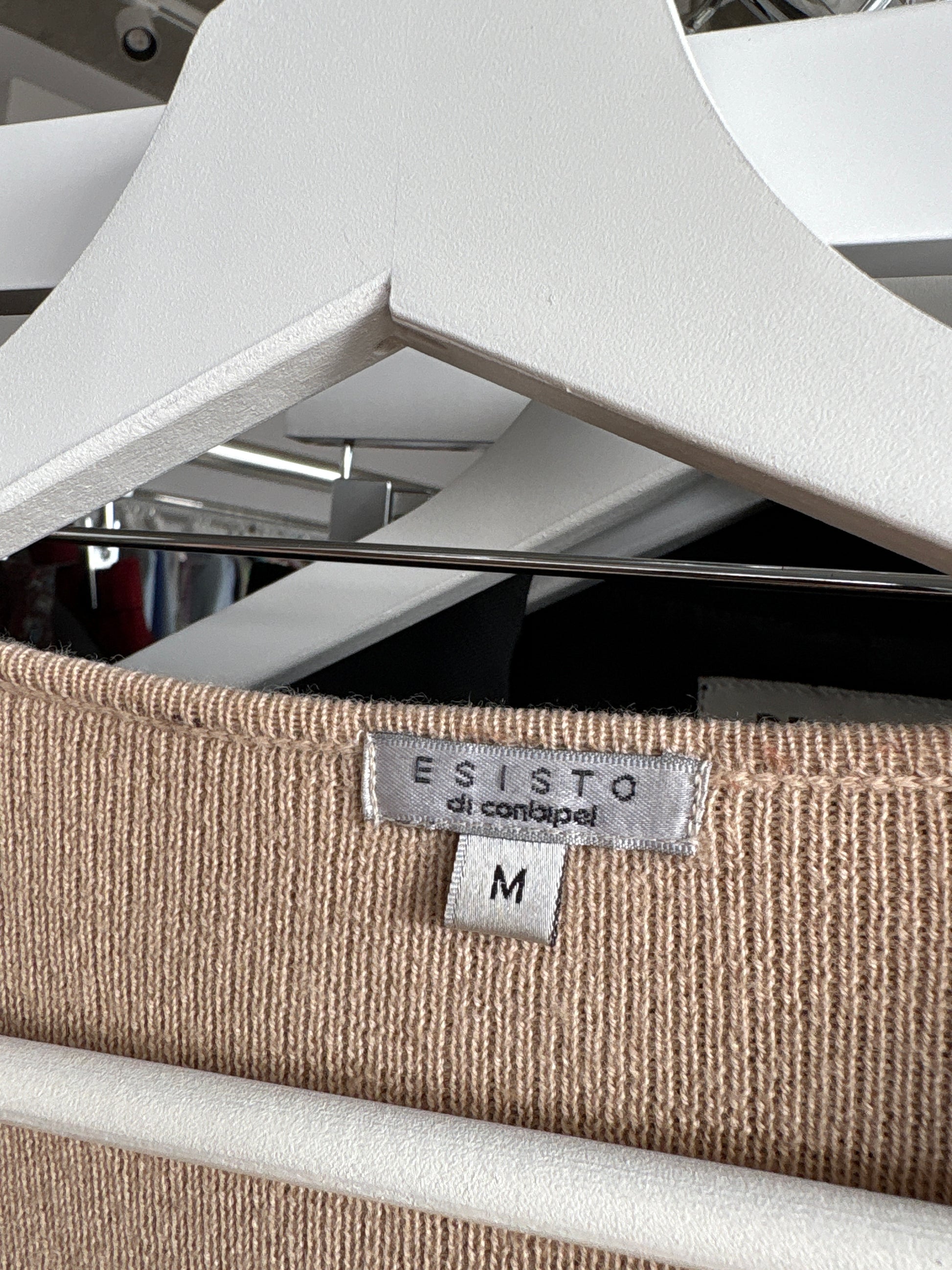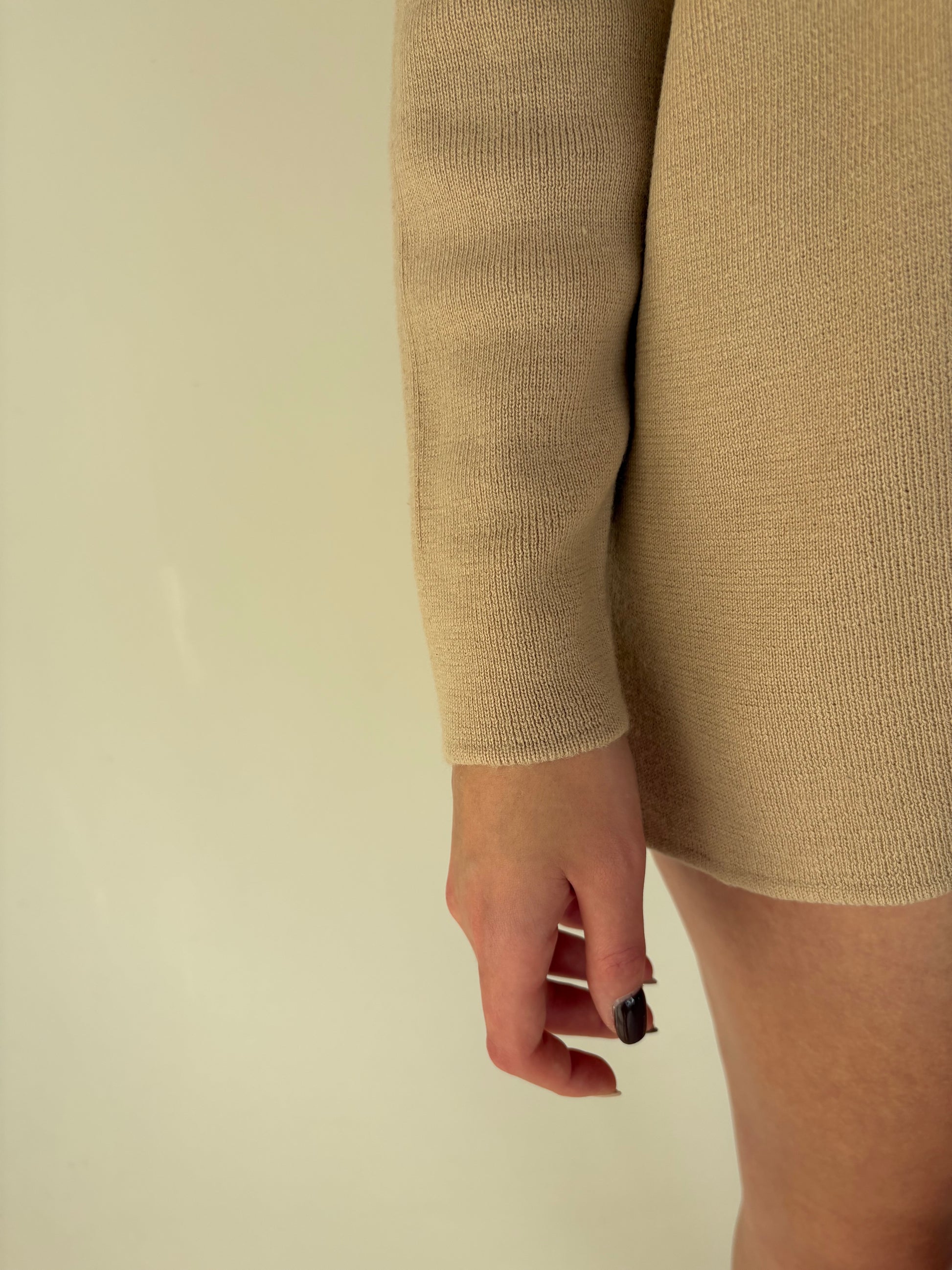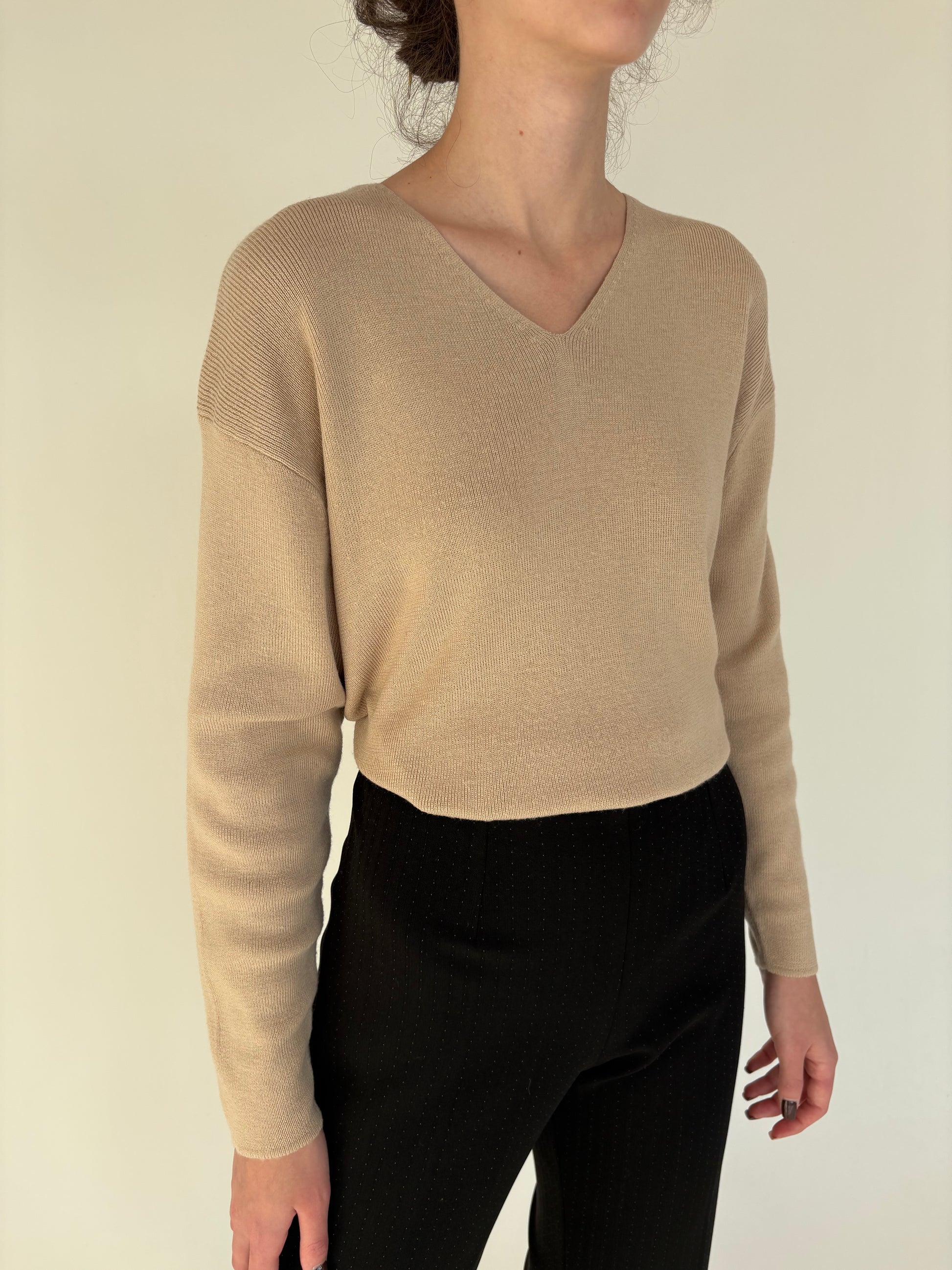 Pulover camel din lana merino extrafina ribbed in croi lejer