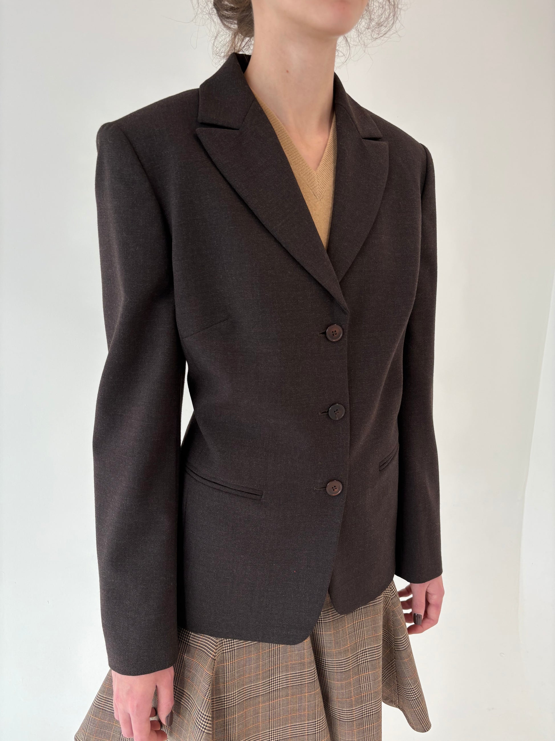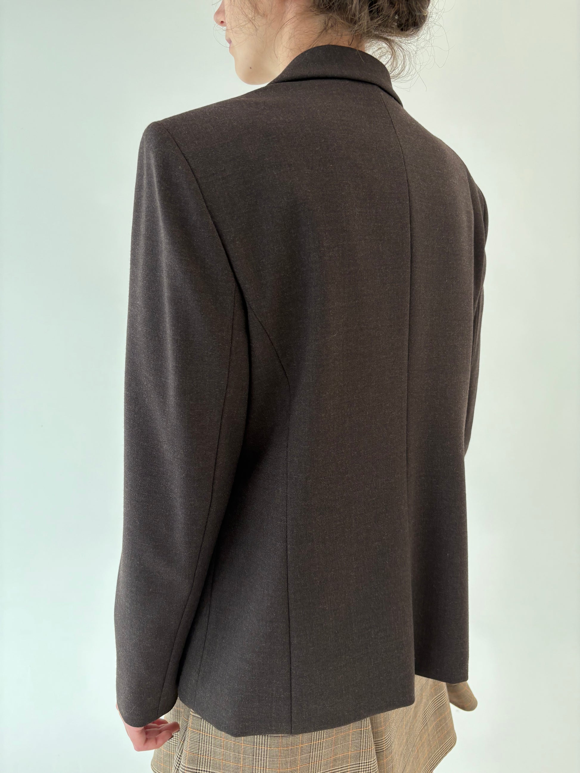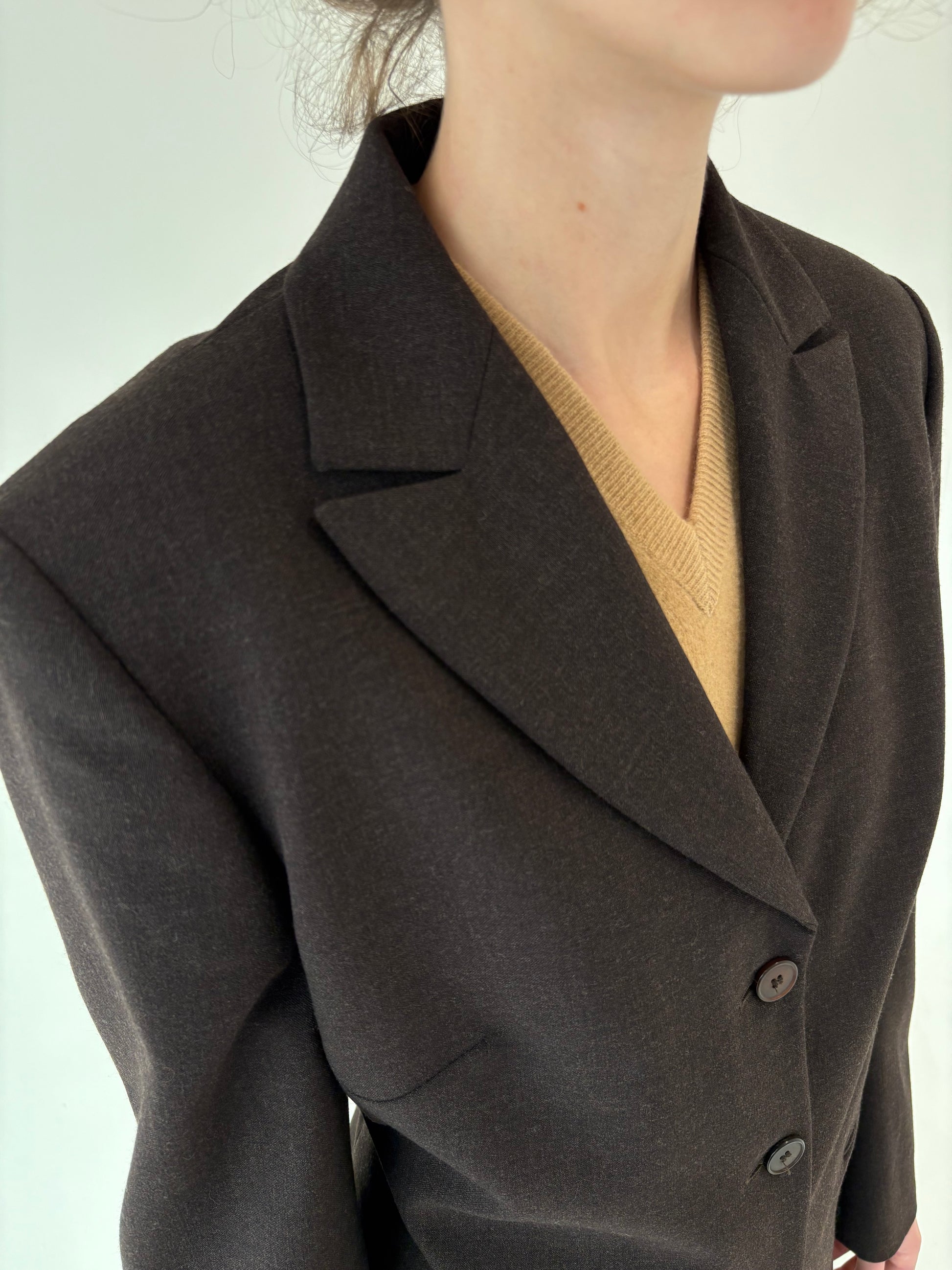 Sacou italian de brand premium dark chocolate brown în croi ușor cambrat