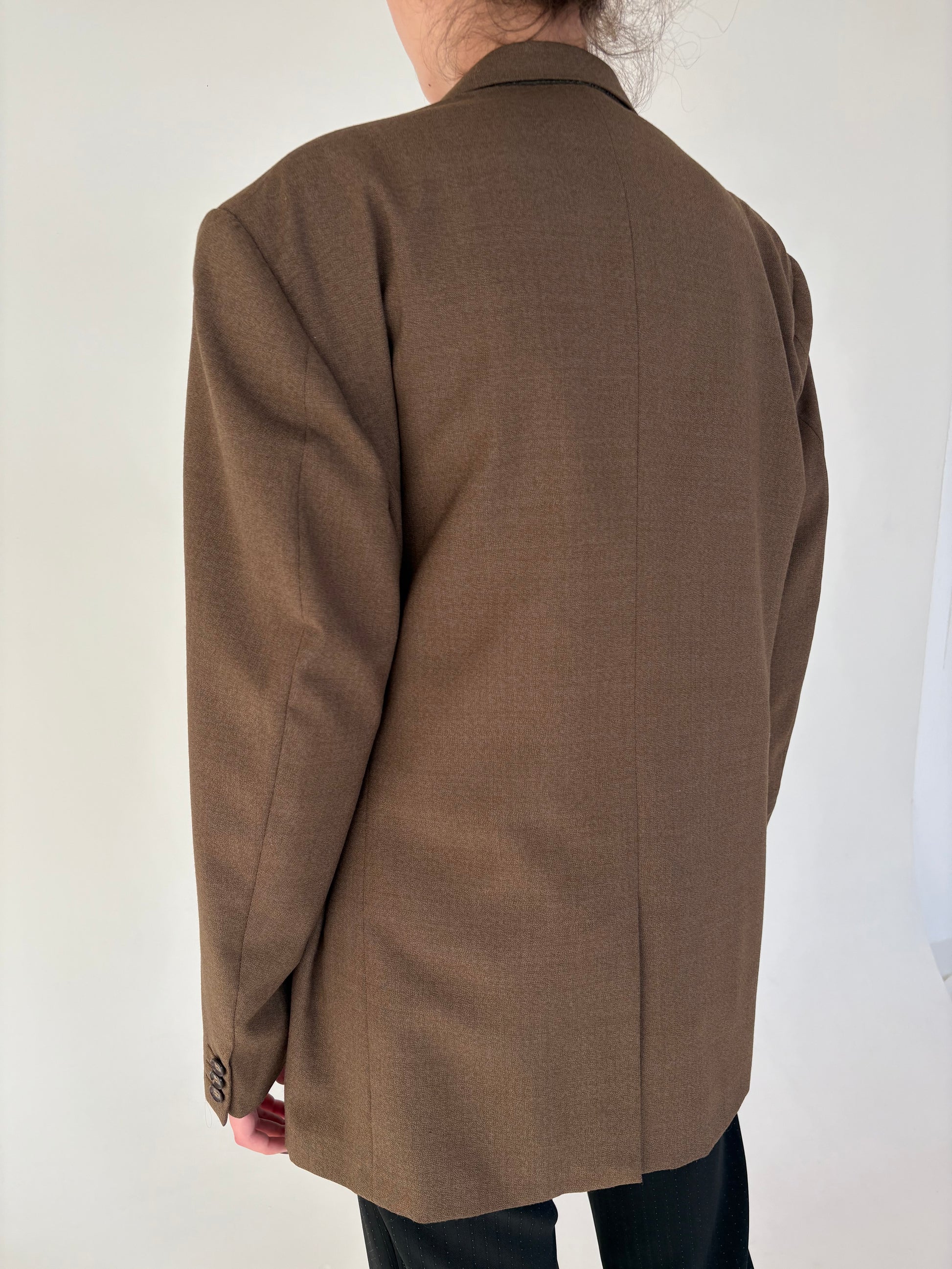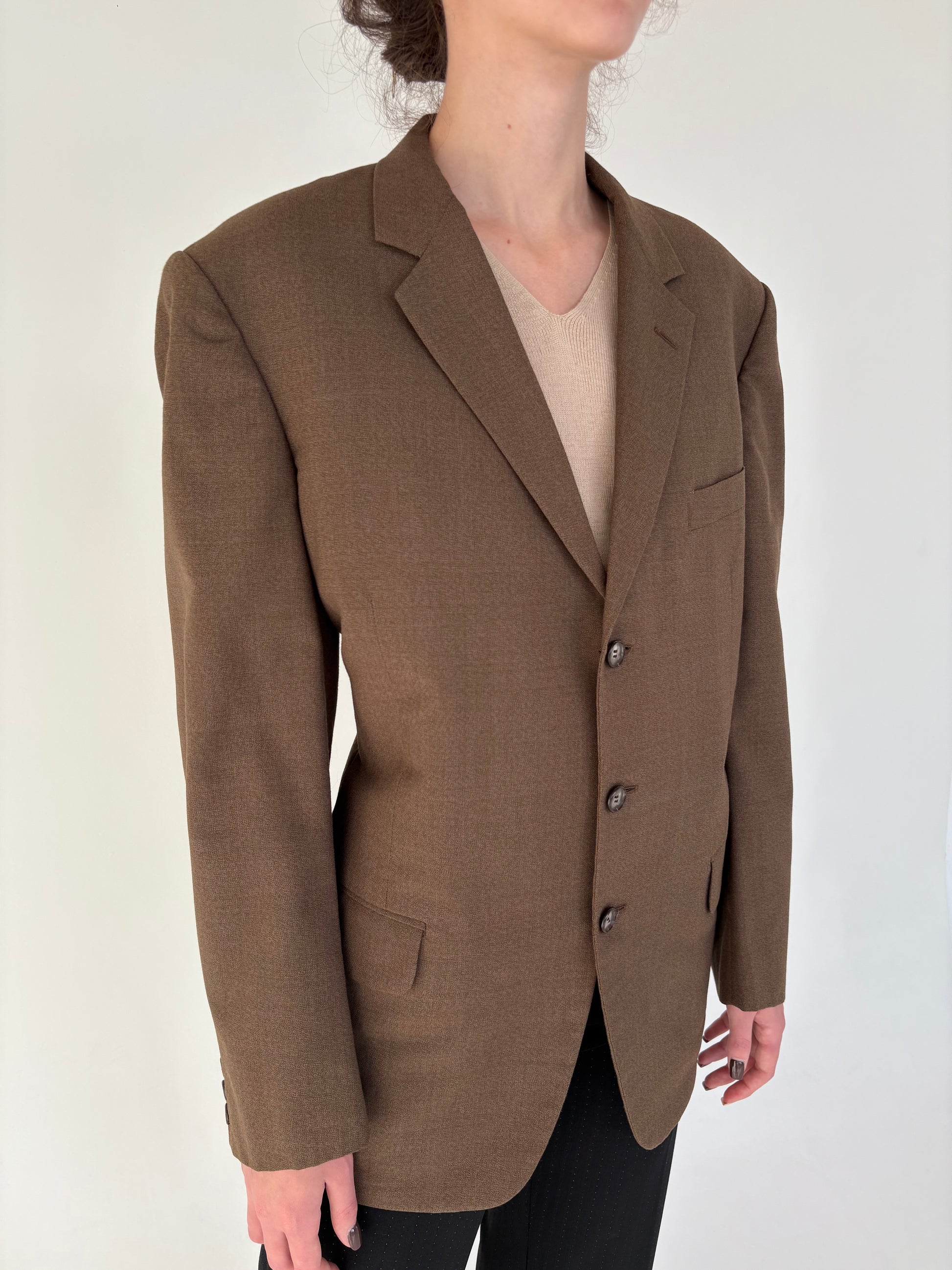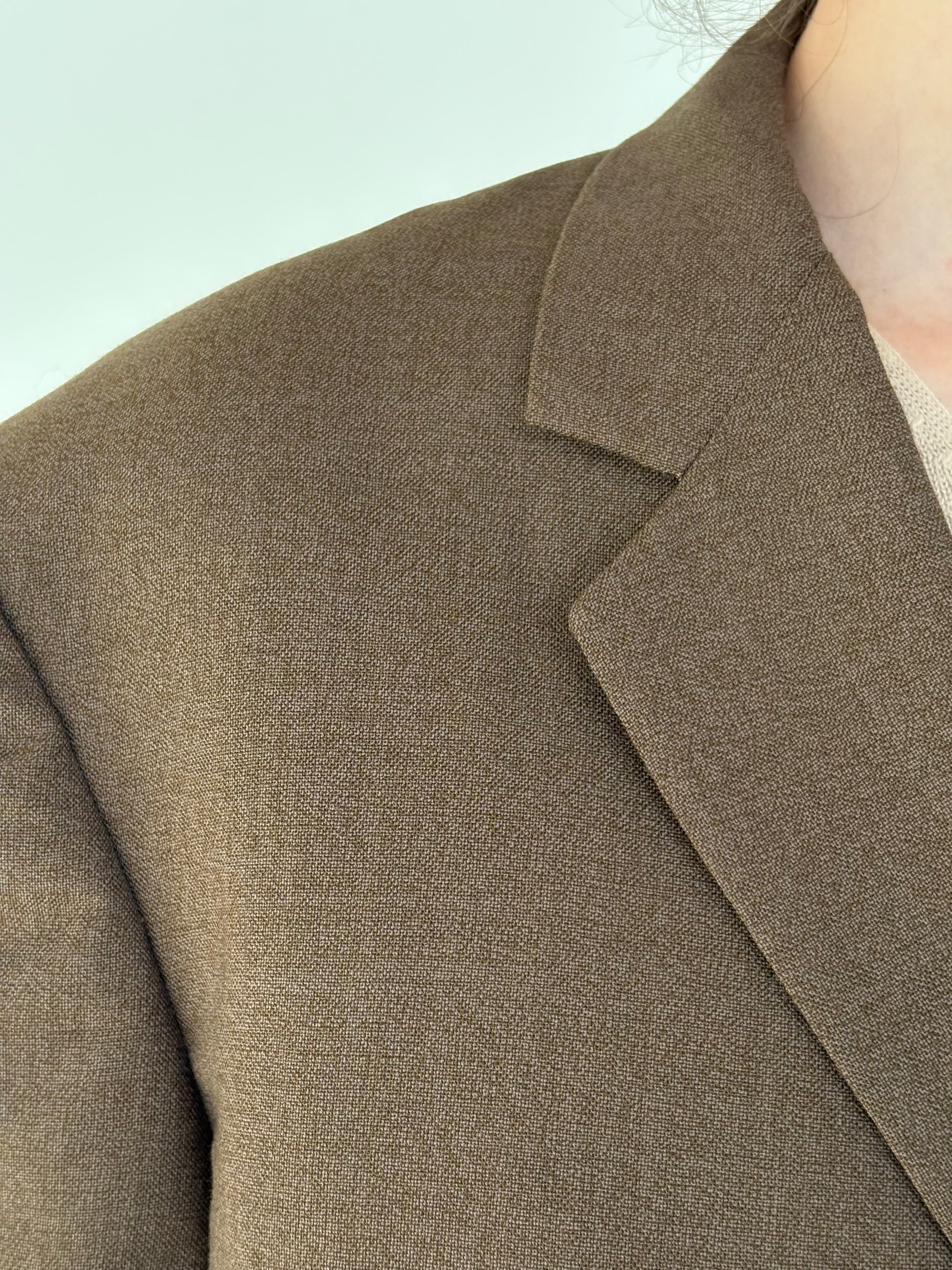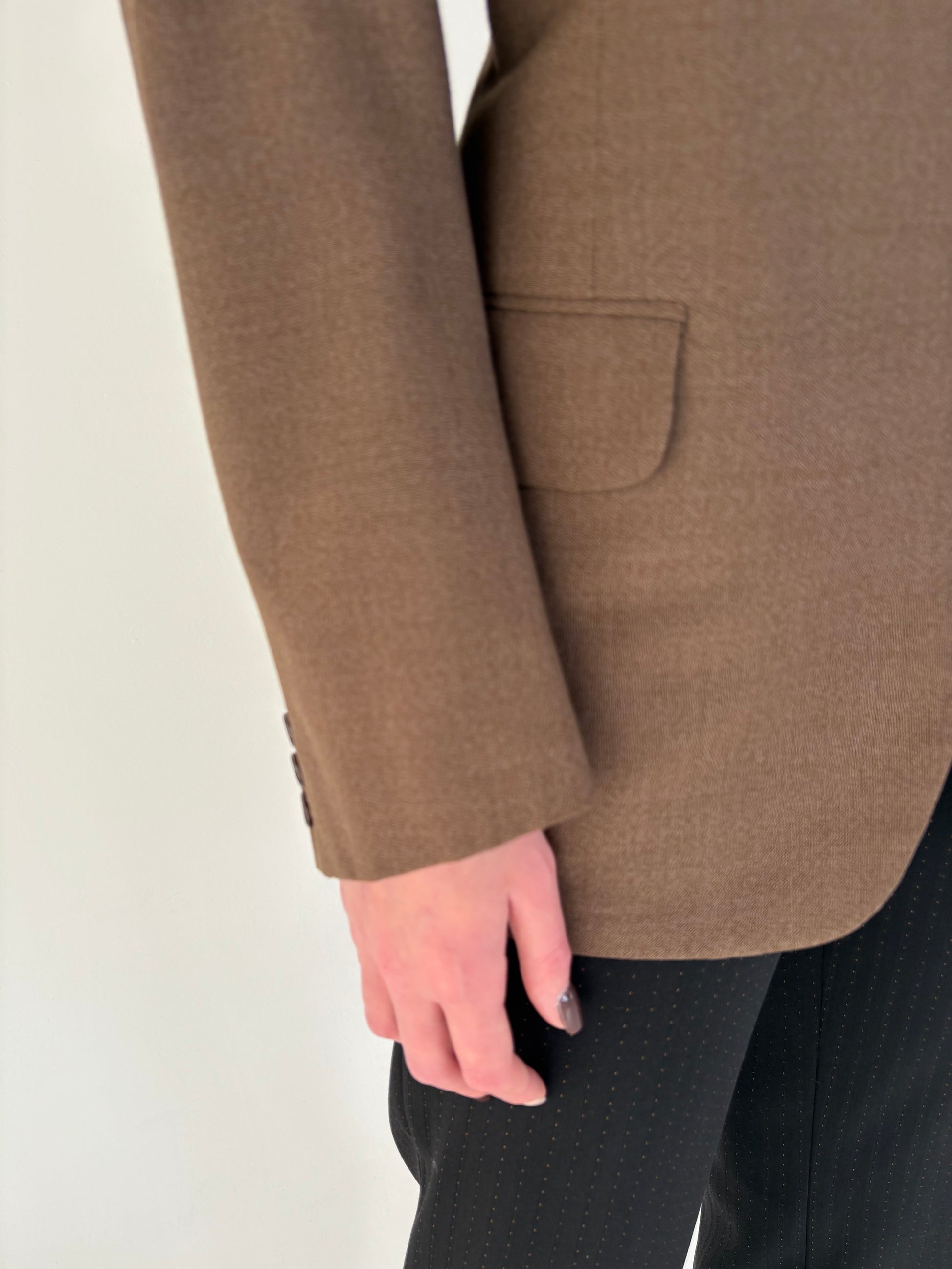 Sacou chocolate brown din lana ușor structurată în croi actual