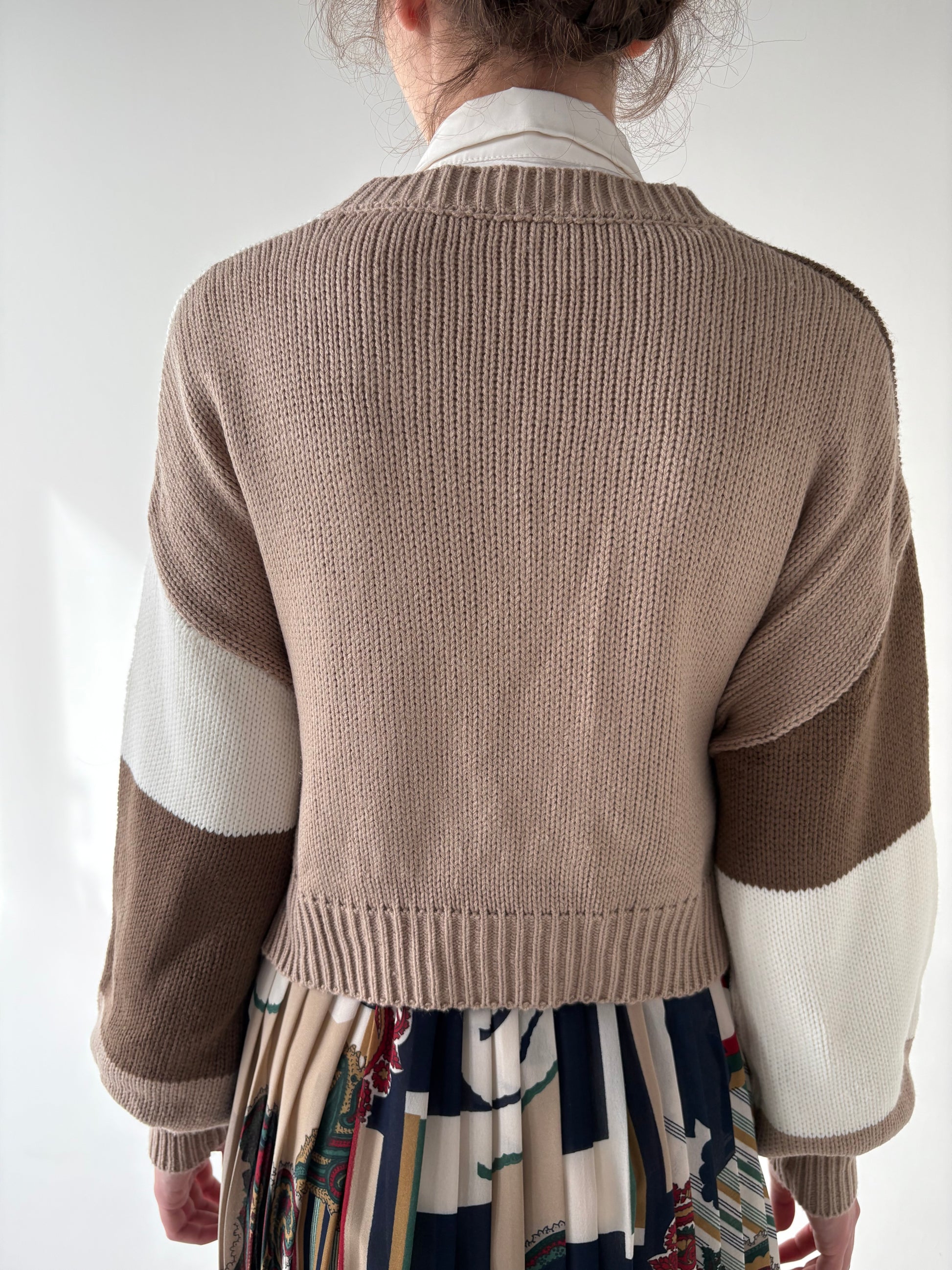 Cardigan gros cu mâneci ample în nuanțe de nude din mix de lana extrafina