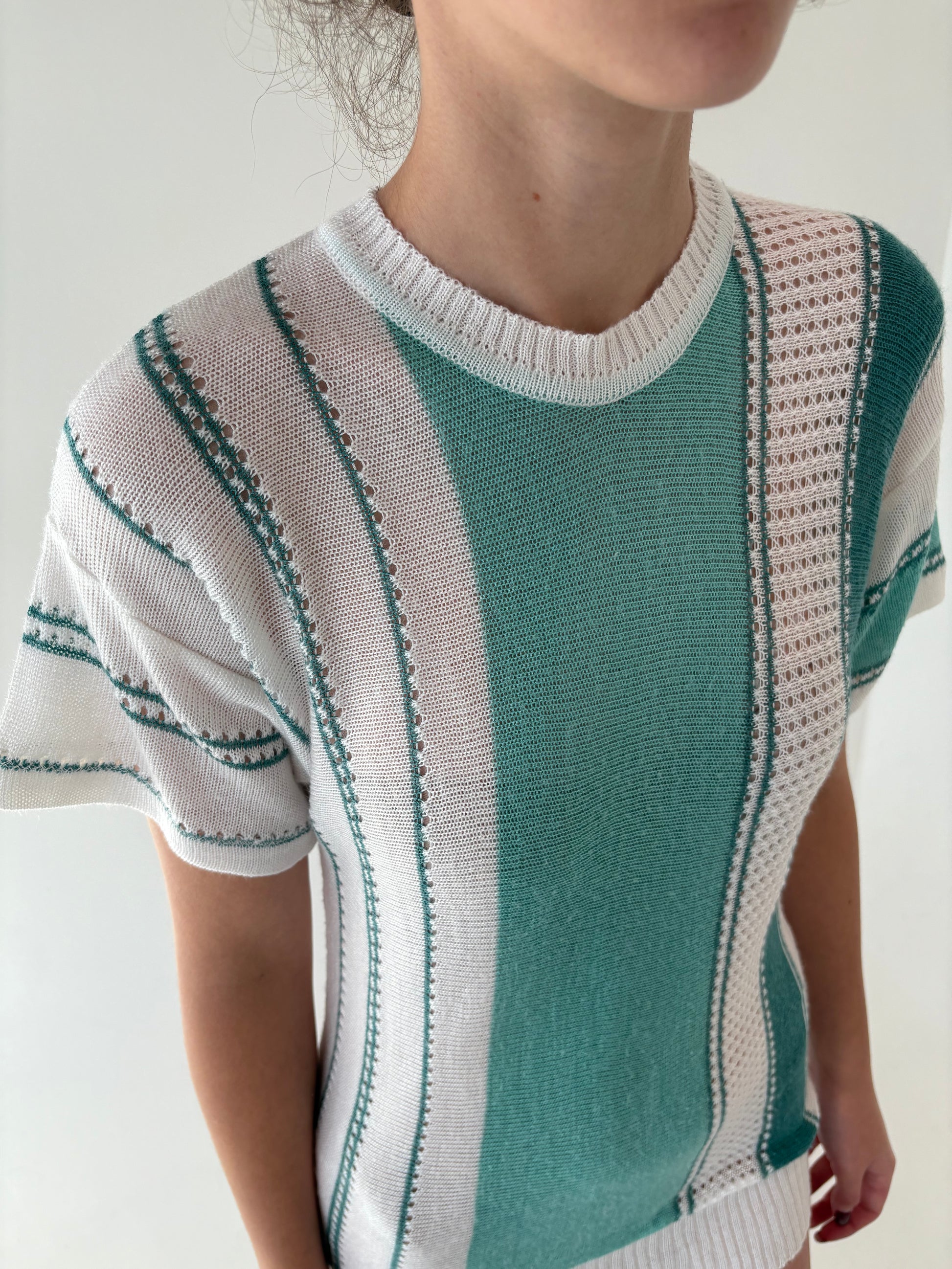 Top vintage dantelat în combinație superbă de culori din mix de lana extrafina