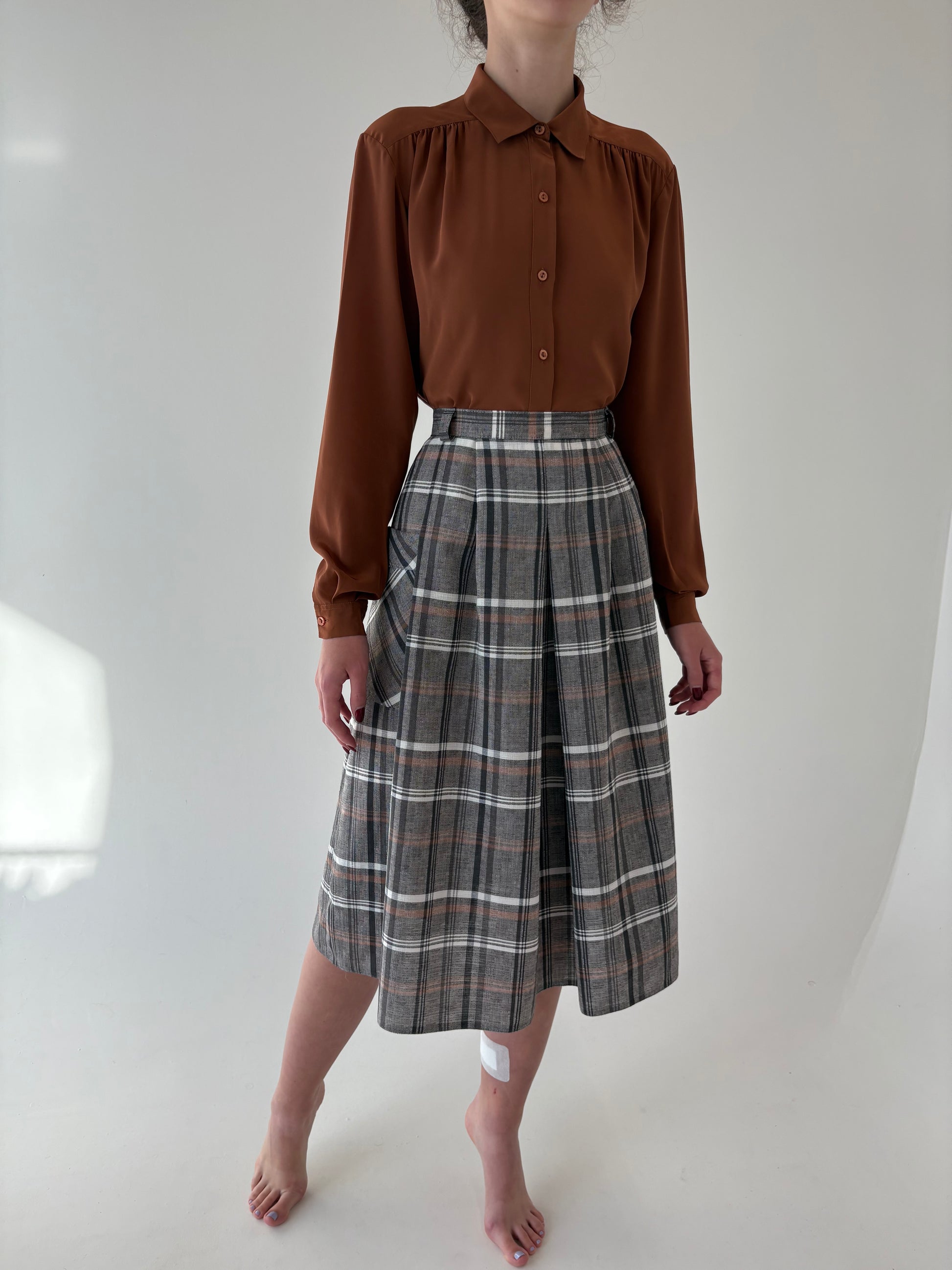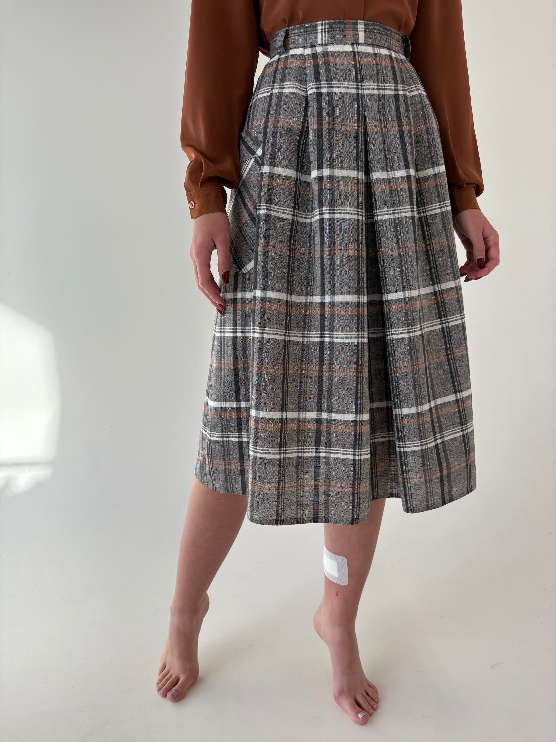 Fustă vintage din lana extrafina cu buzunare și talie ultra marcată