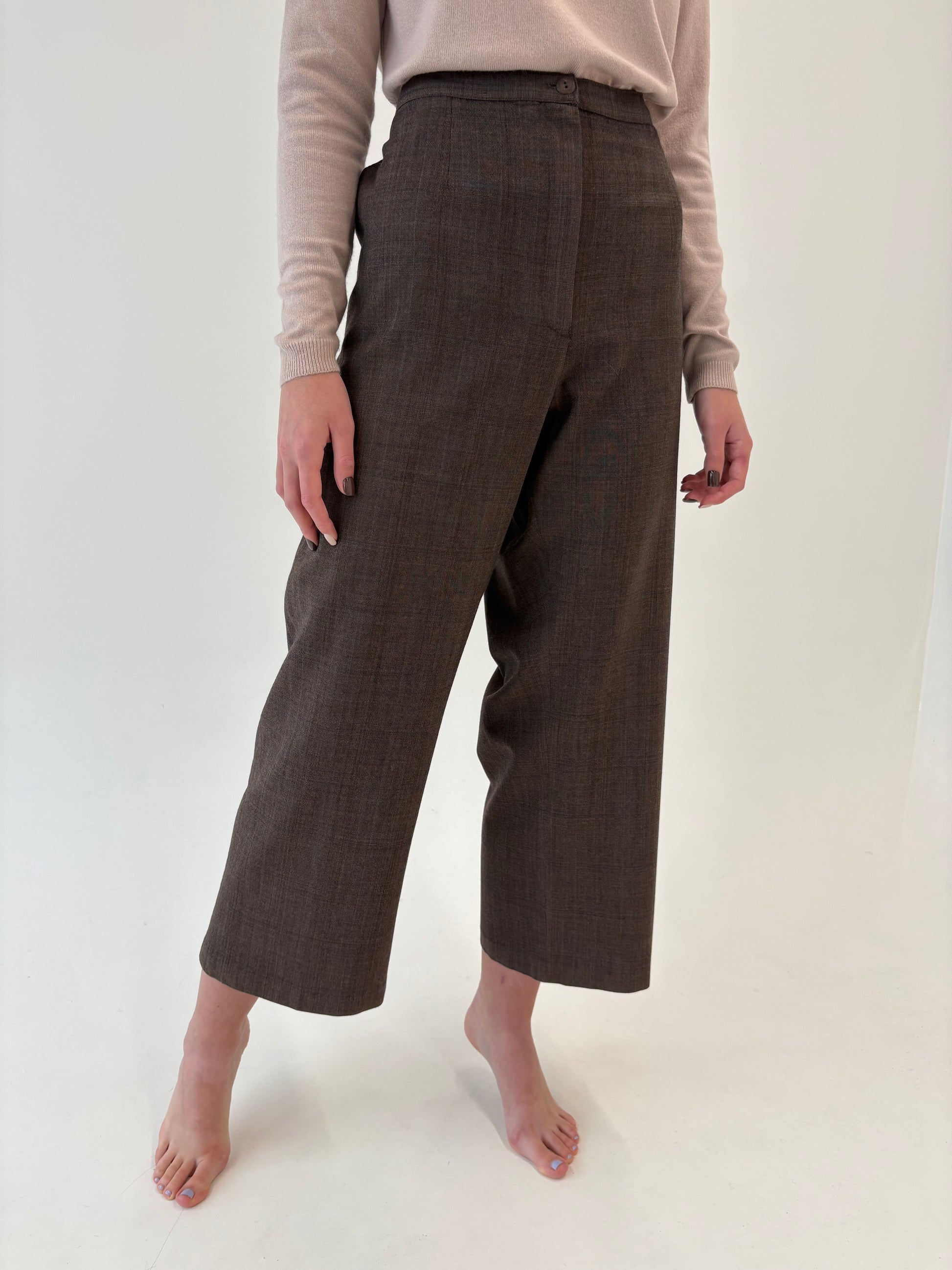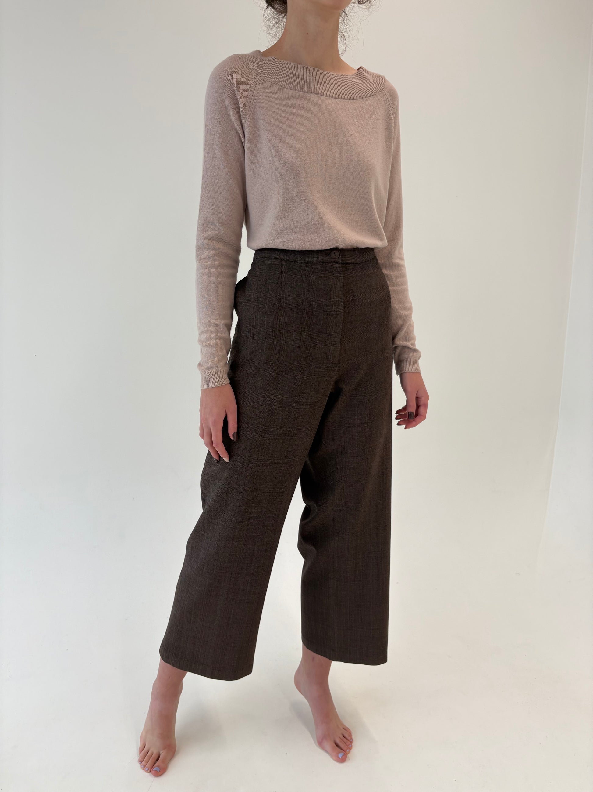 Pantaloni chocolate brown din lana extrafina cu talie înaltă