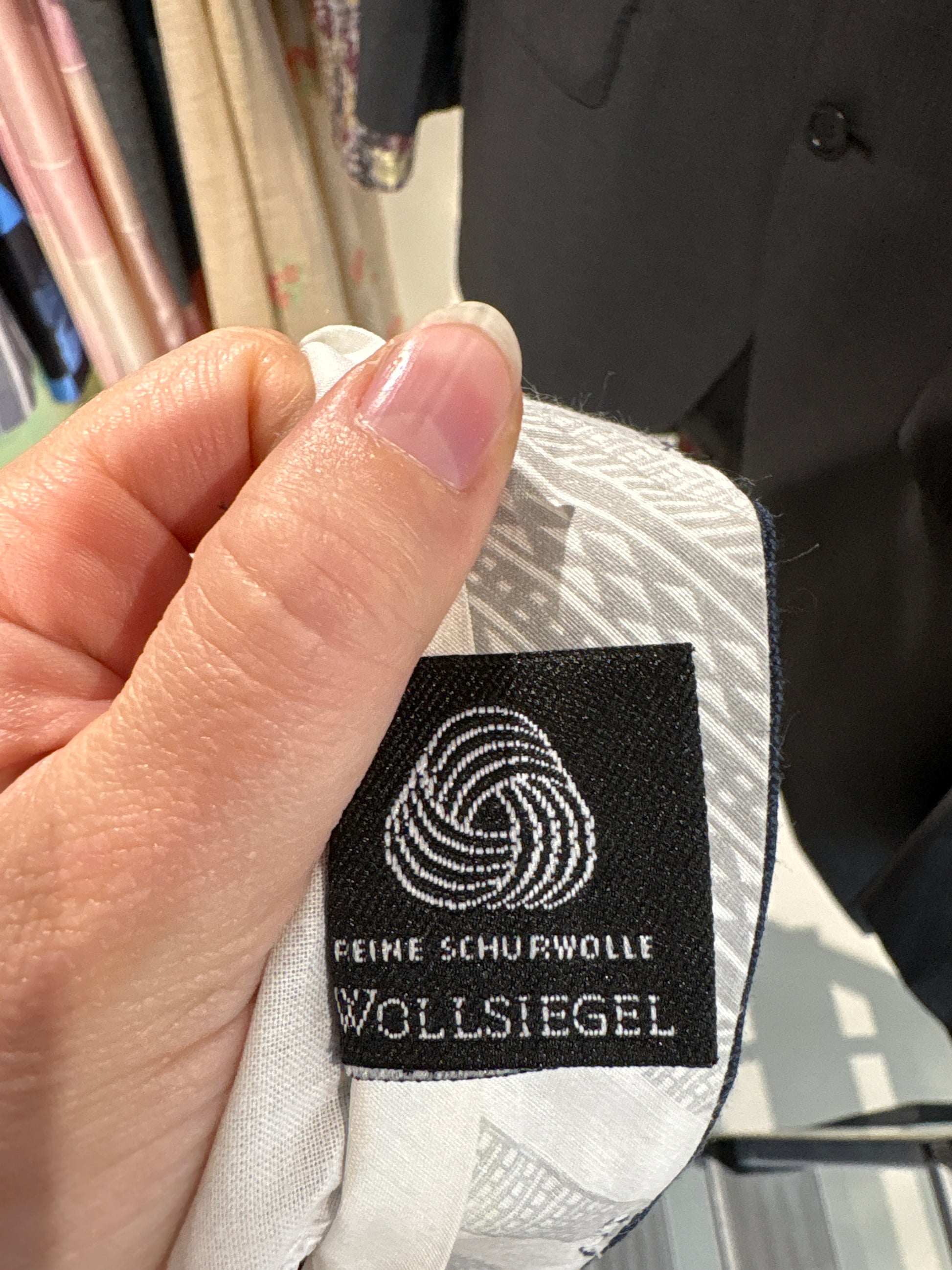 Pantaloni Navy cu pense din stofă de lana extrafina pura certificată