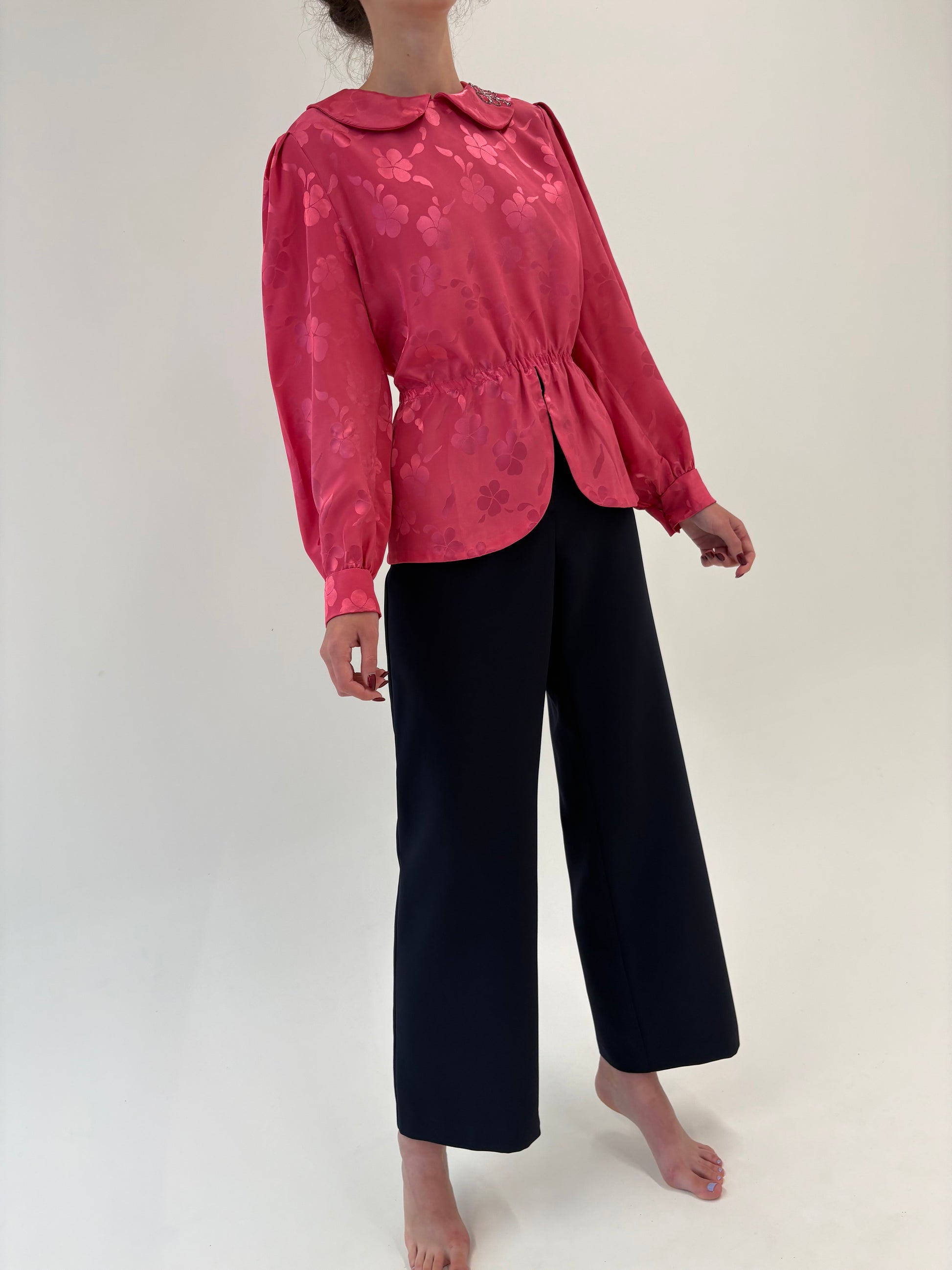Pantaloni Navy business spre palazzo tall cu talie înaltă și buzunare