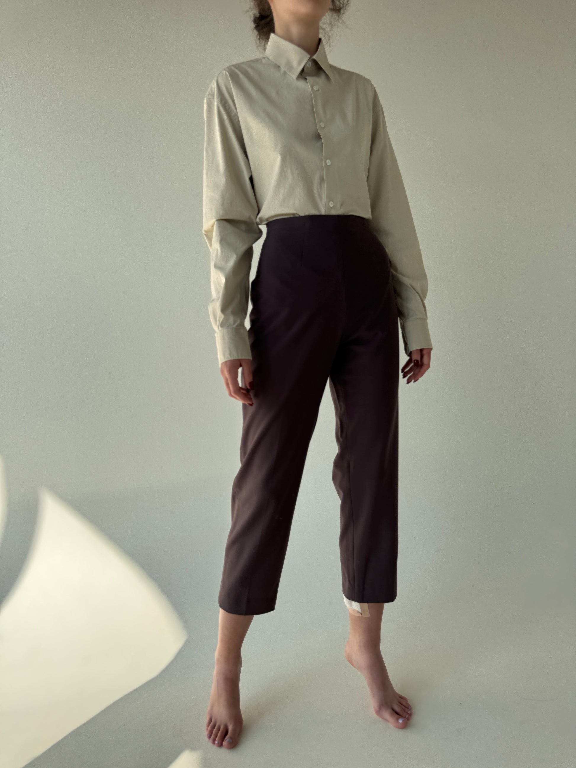Pantaloni aubergine business petite din lanita extrafina modelatoare