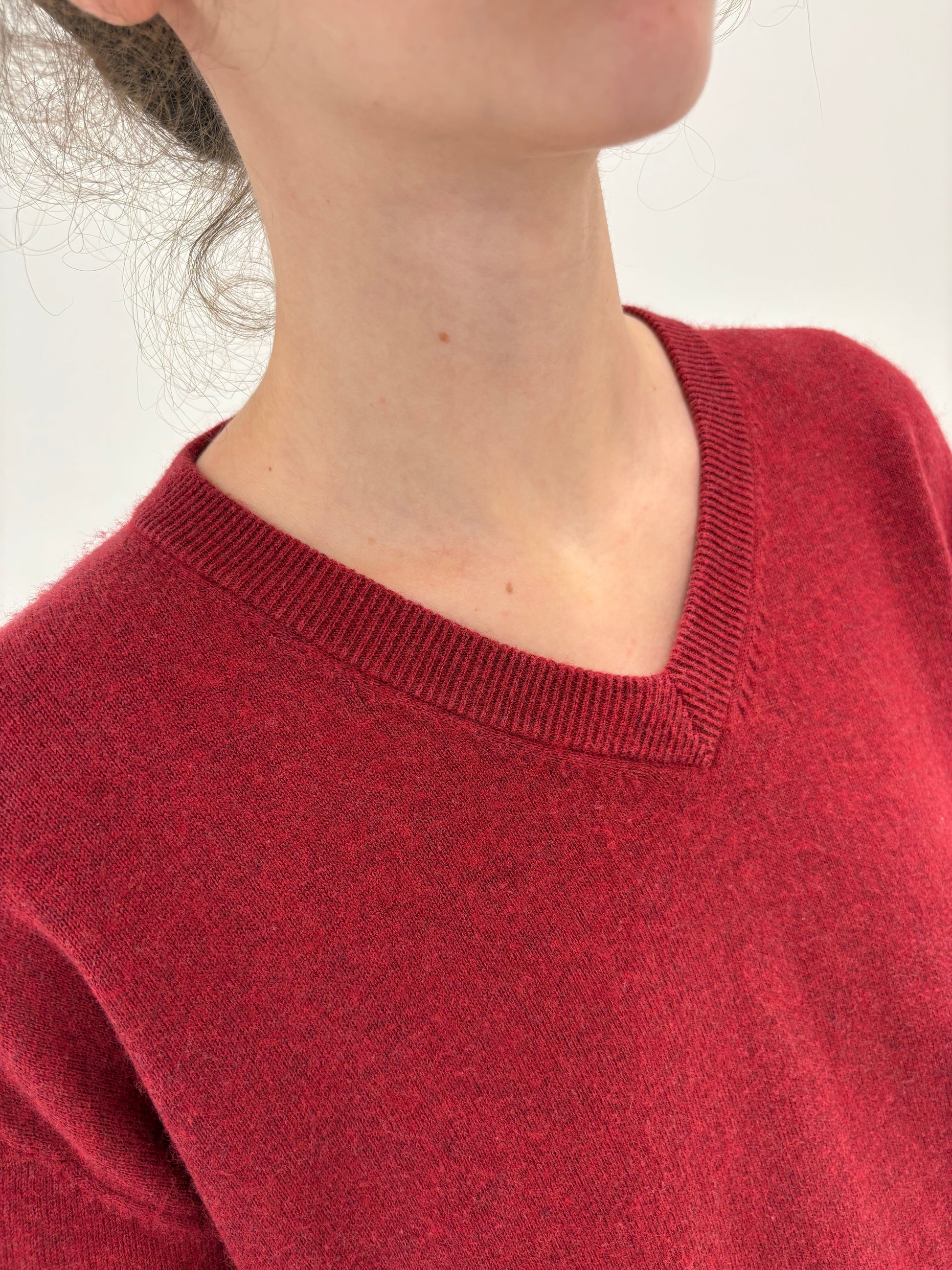 Pulover dark red din lana extrafina si bumbac de gramaj mare în anchior