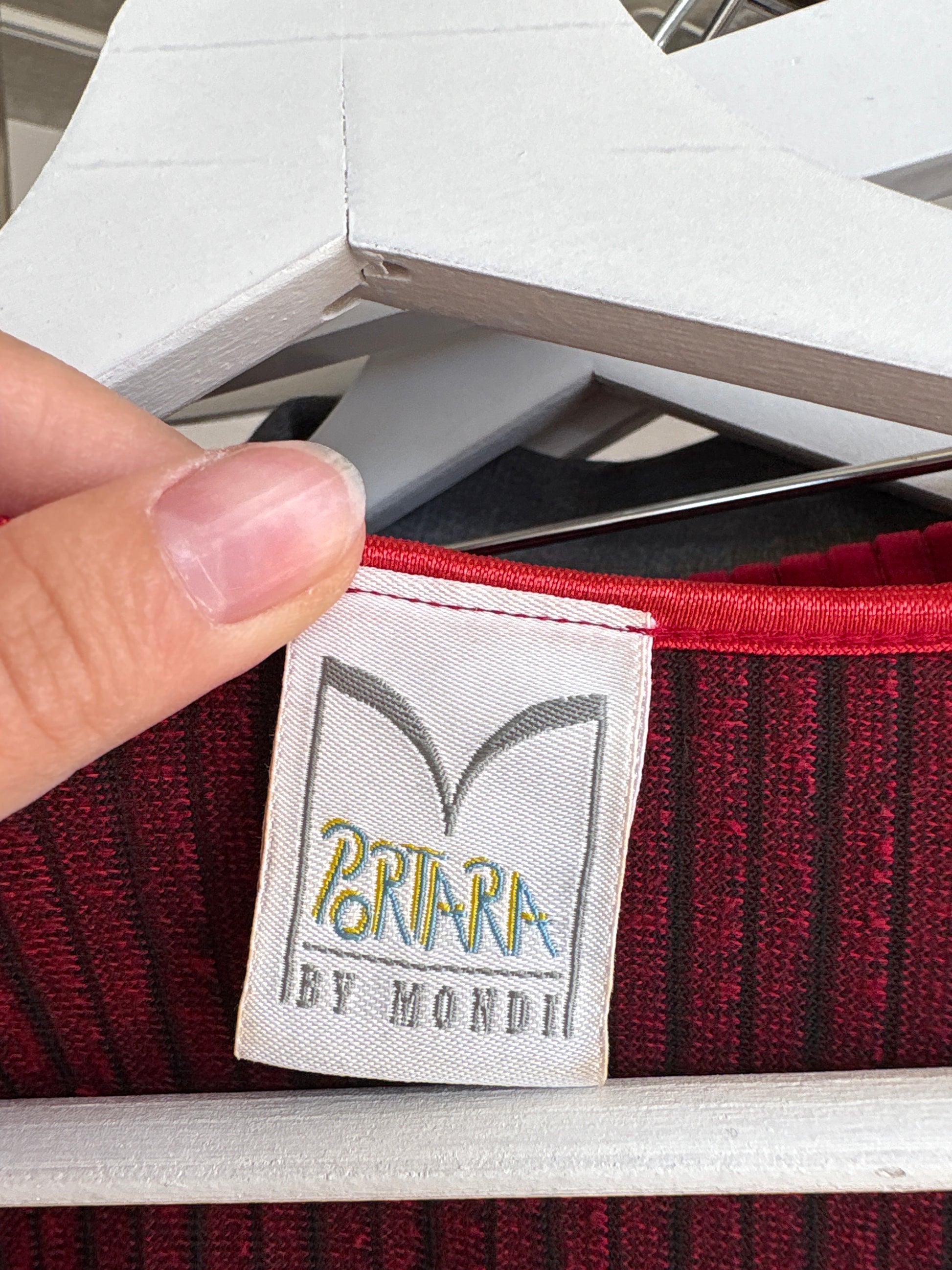 Set vintage de brand luxury Mondi by Escada din corduroy modelator cherry red