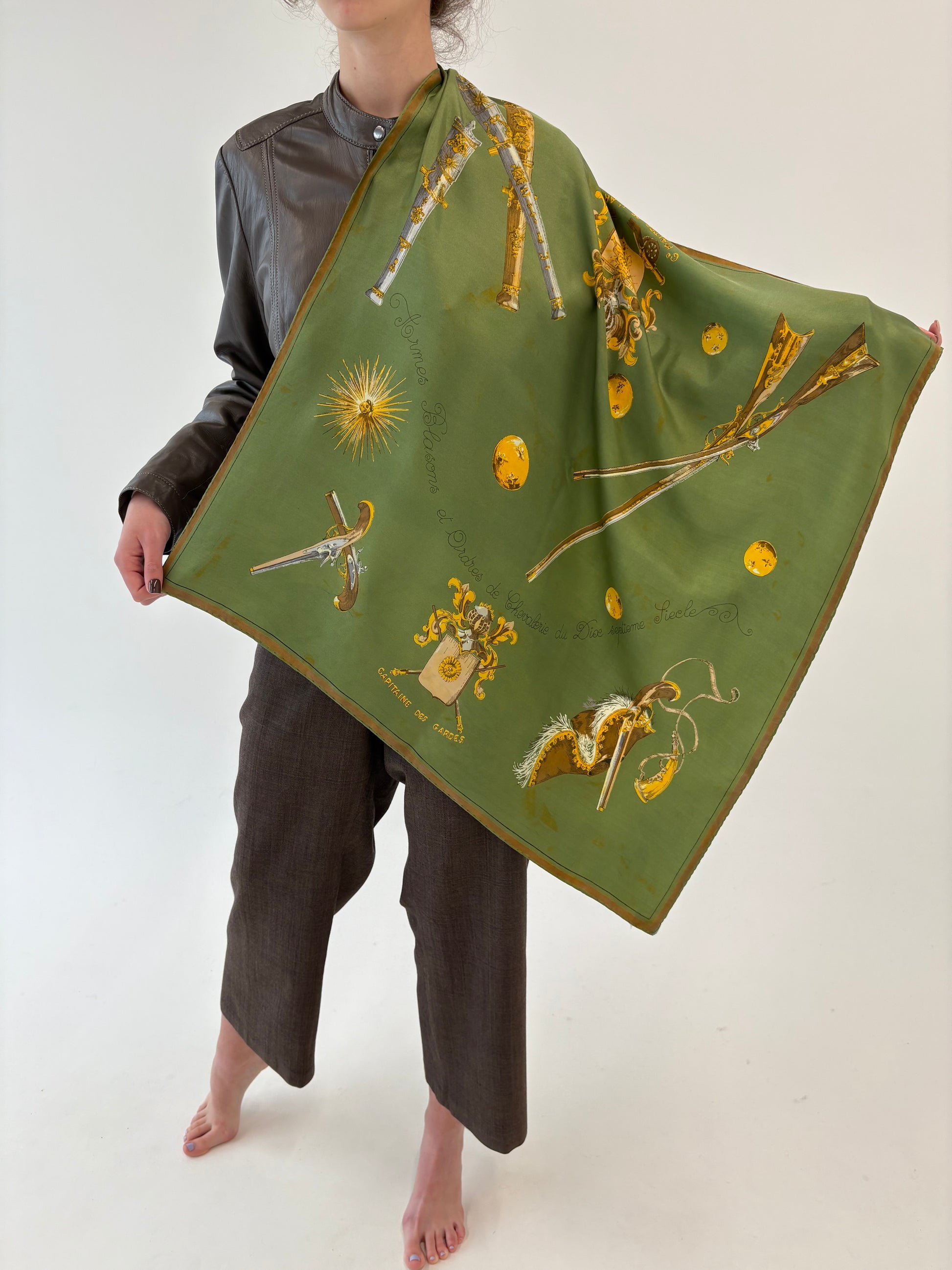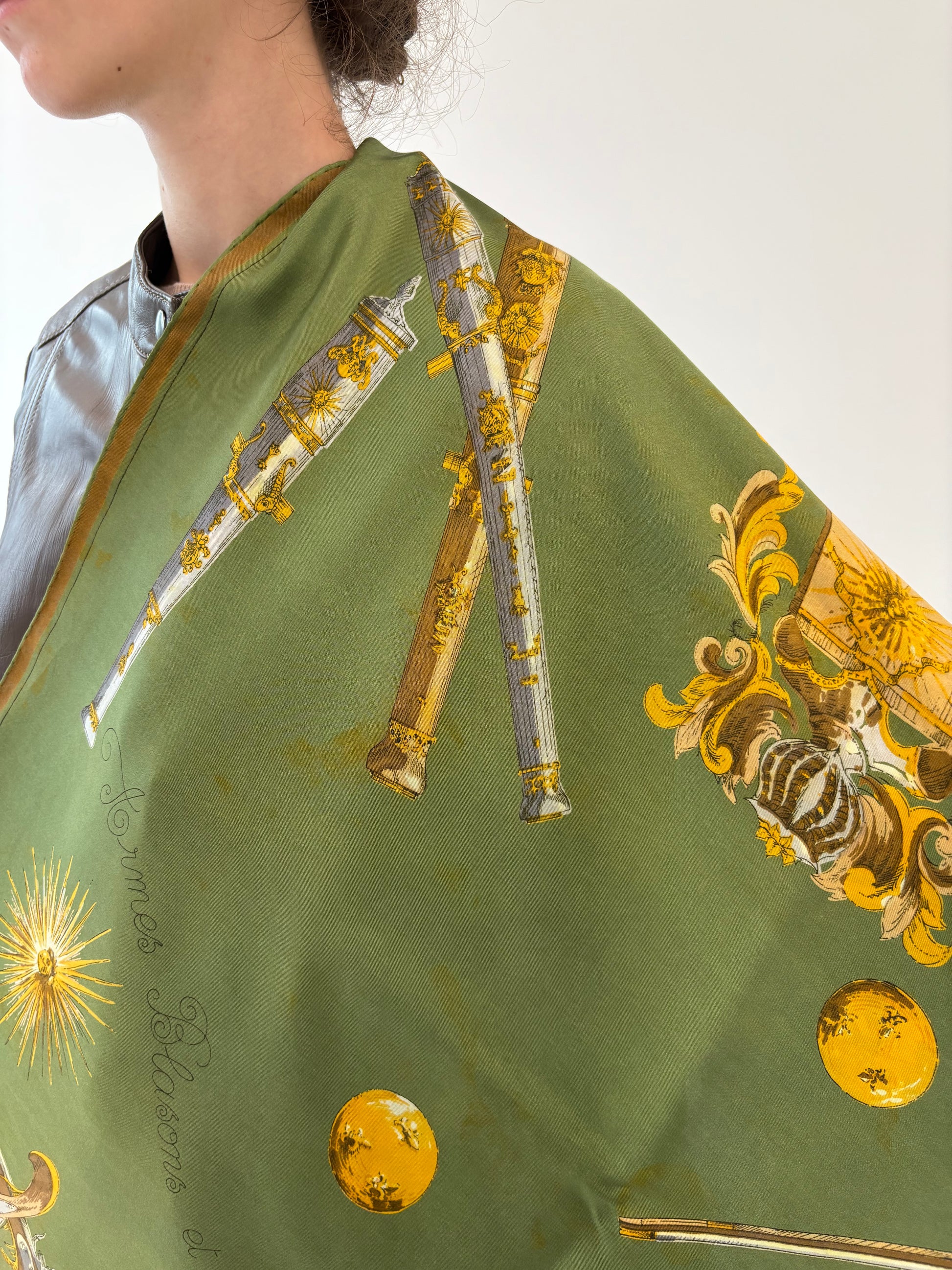 Eșarfă cu print baroc din mătase naturală seaweed green
