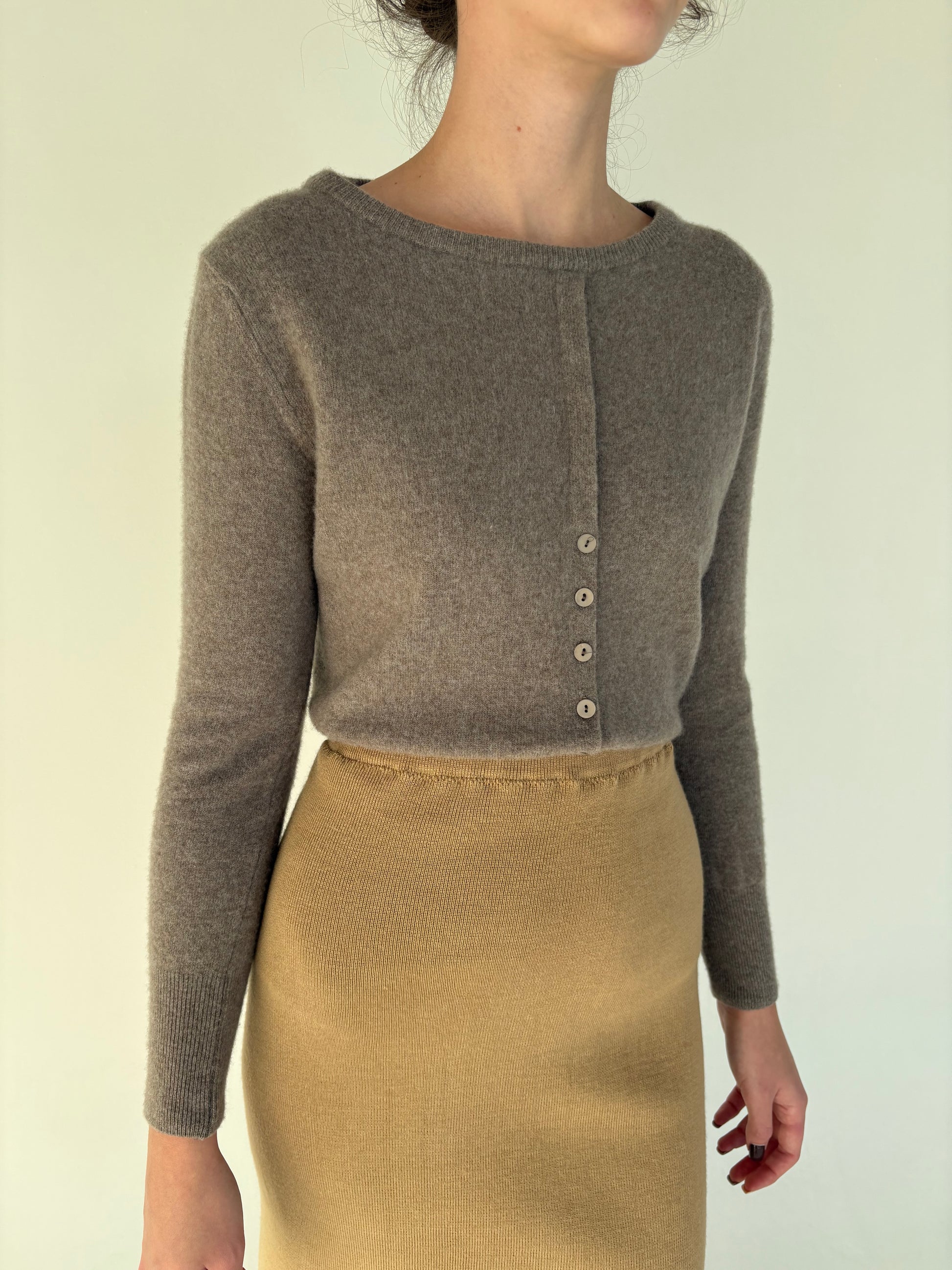 Cardigan taupe de brand premium italian din lana merino și cașmir