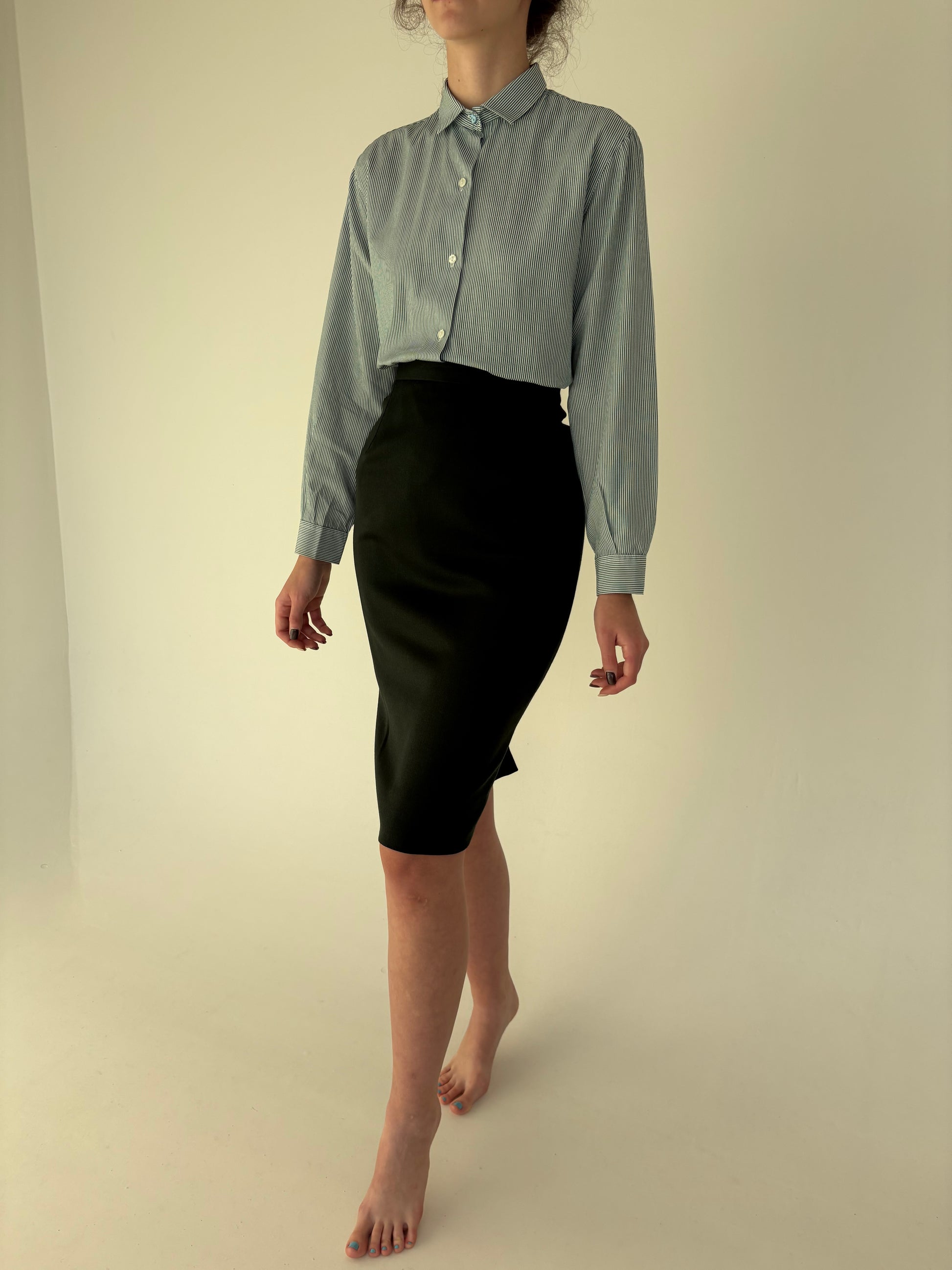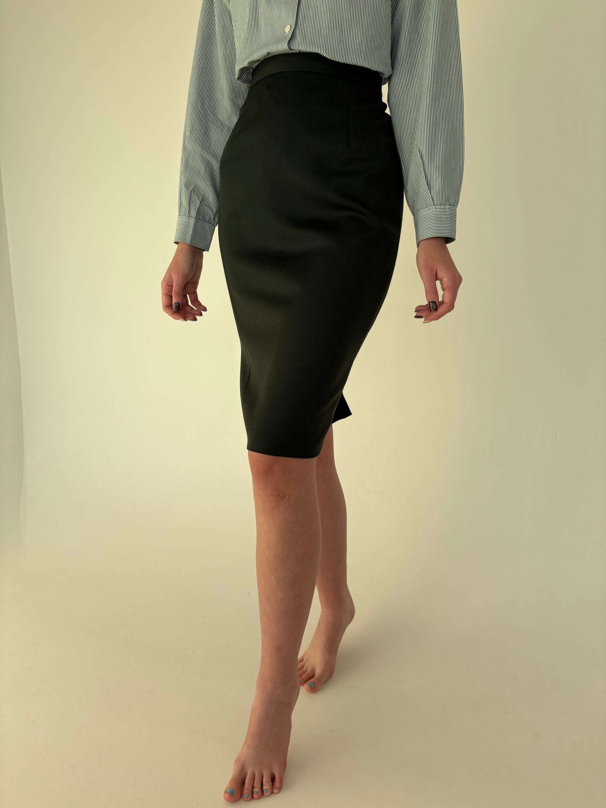 Fustă forest green conică cu talie ultra înaltă din lana extrafina ușor lucioasă