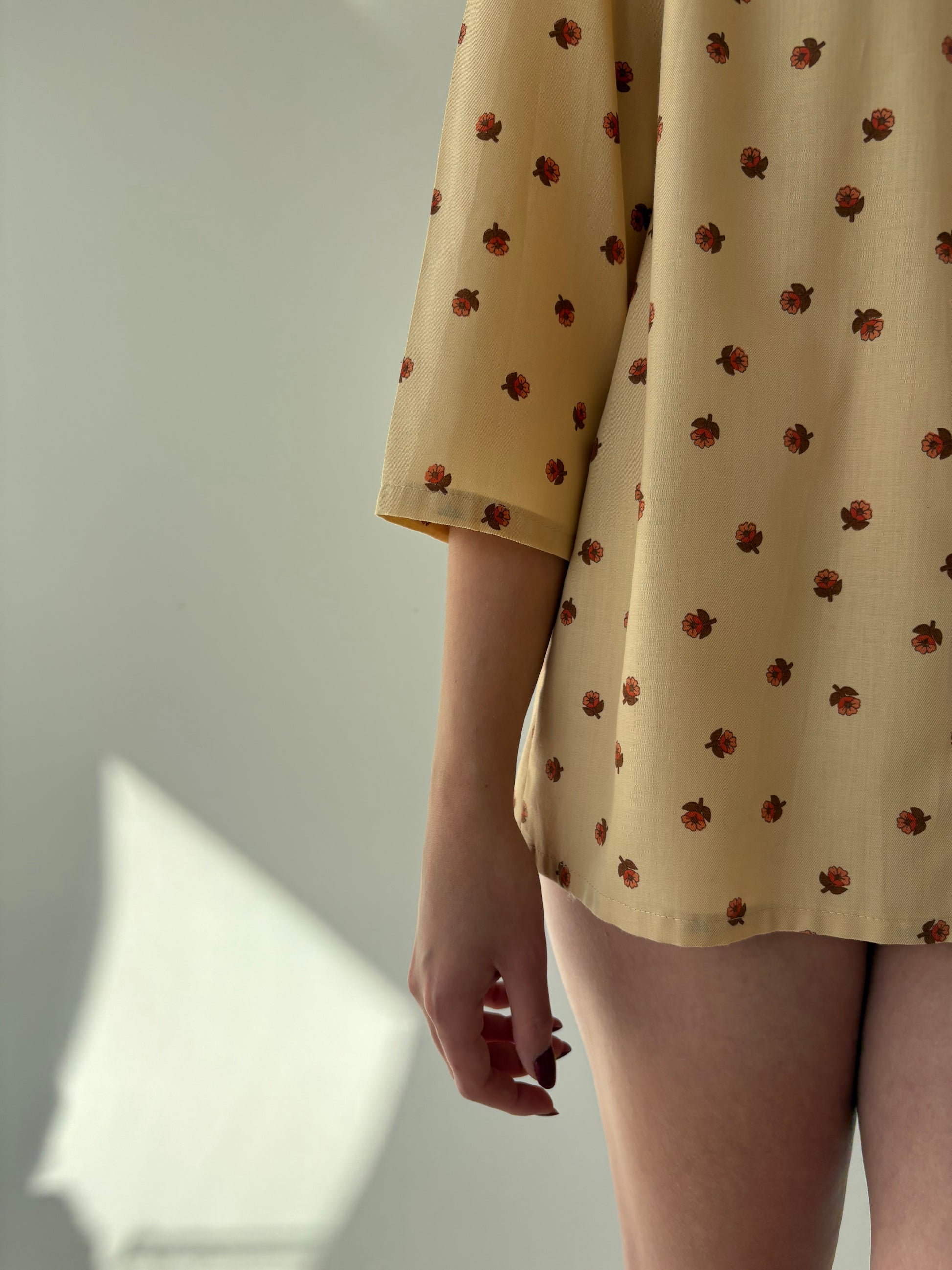 Cămașa vintage camel cu print delicat din mix de lana extrafina