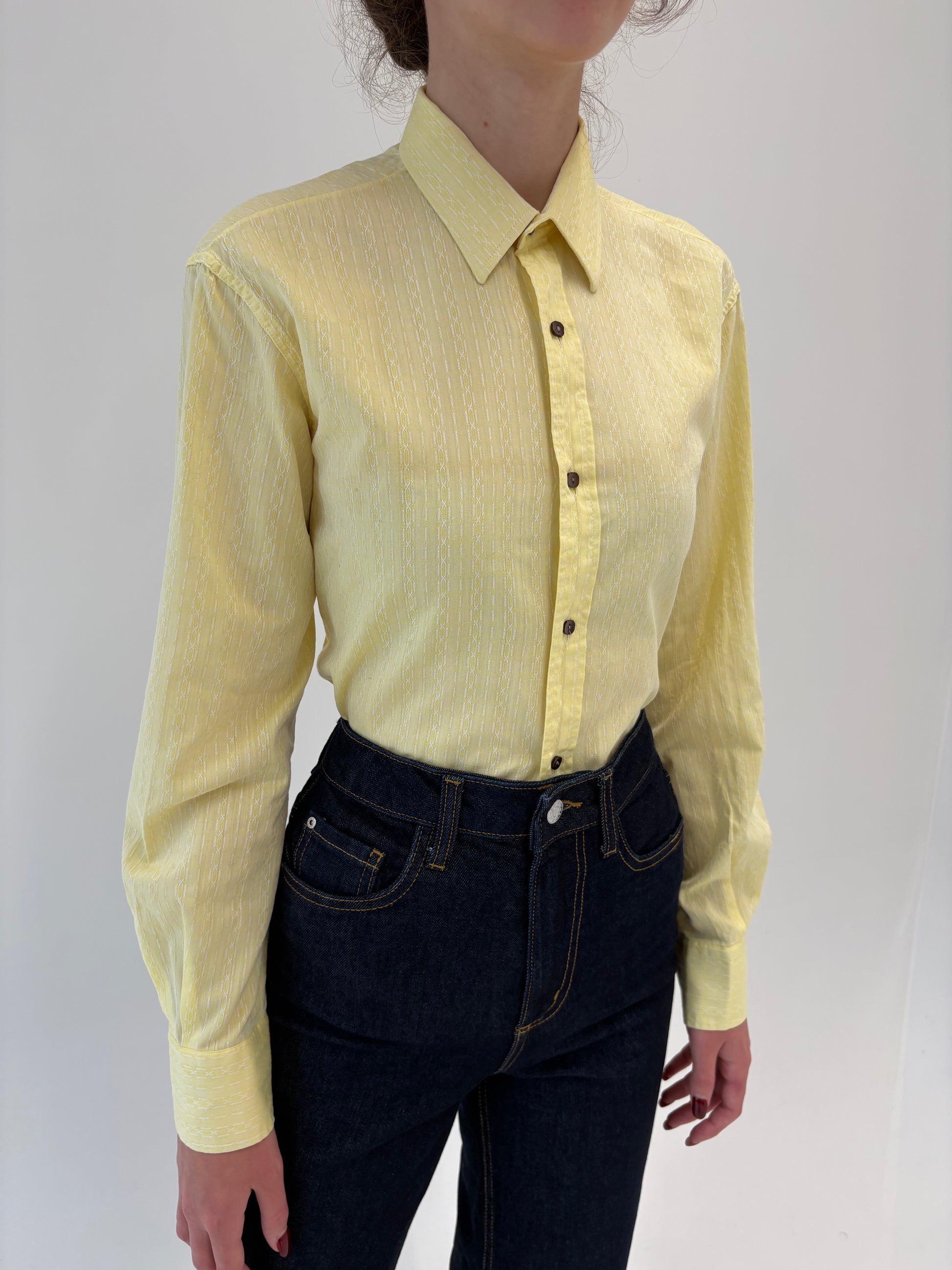 Cămașa vintage butter yellow din jacquard de bumbac excepțional