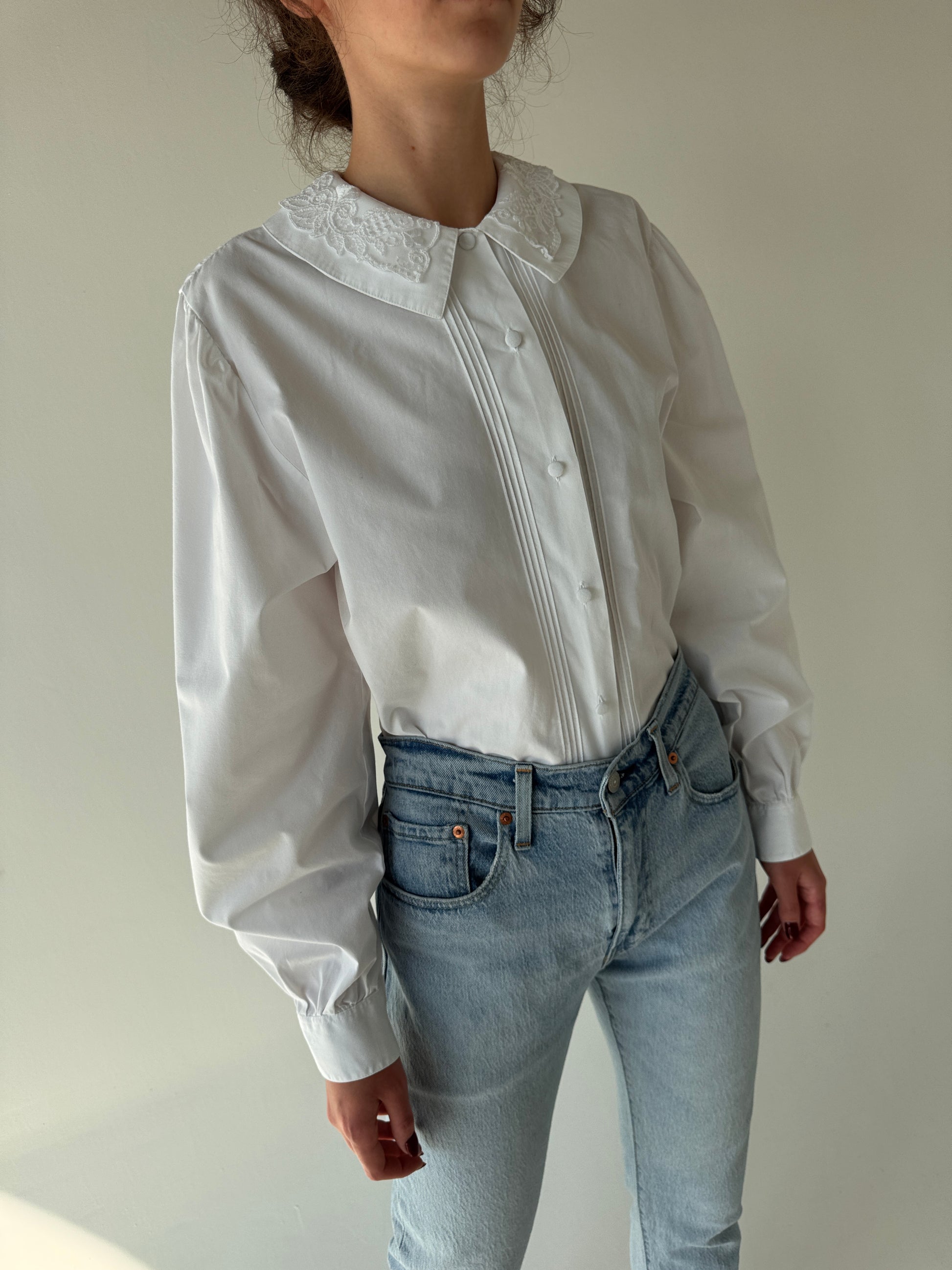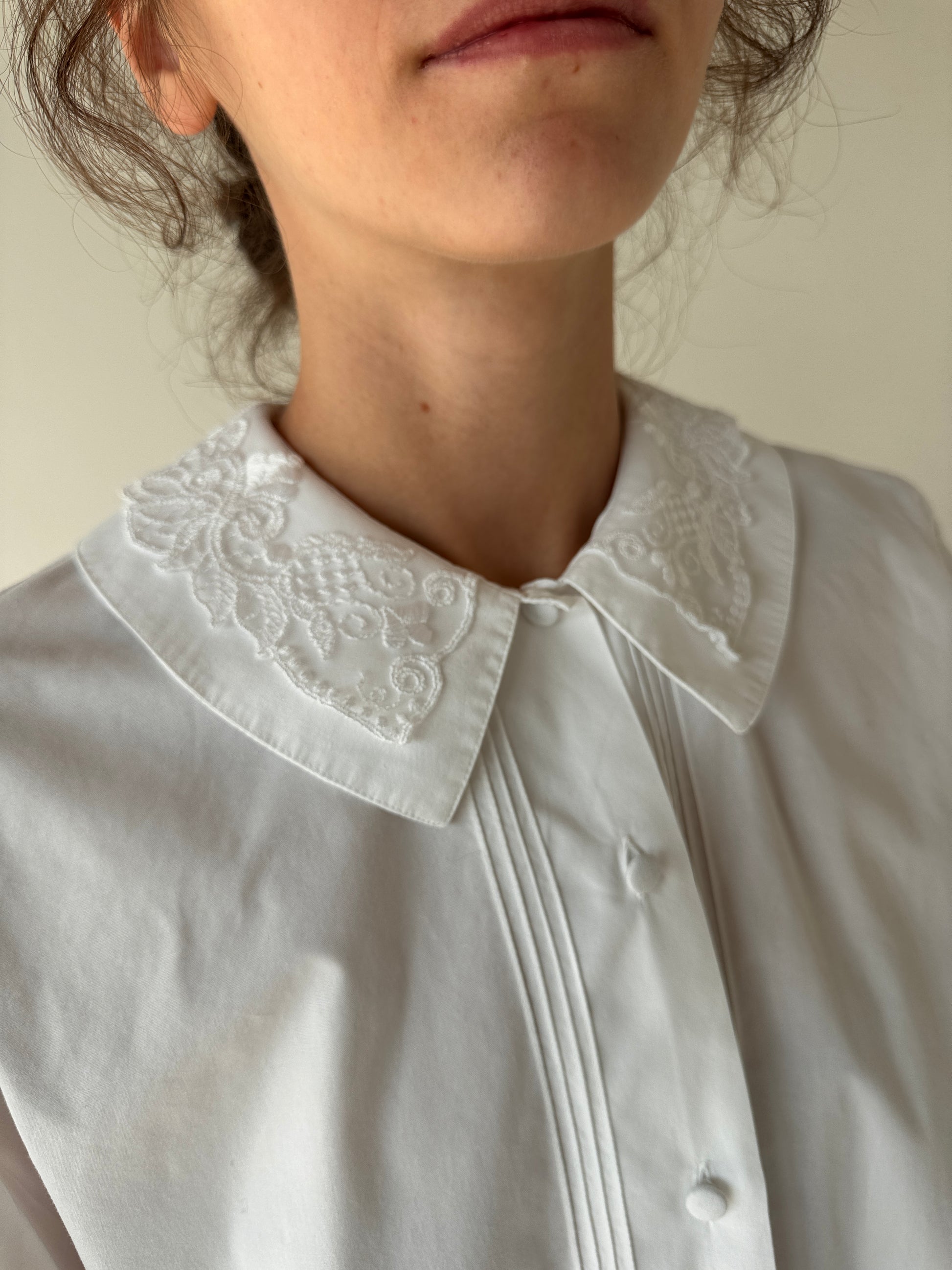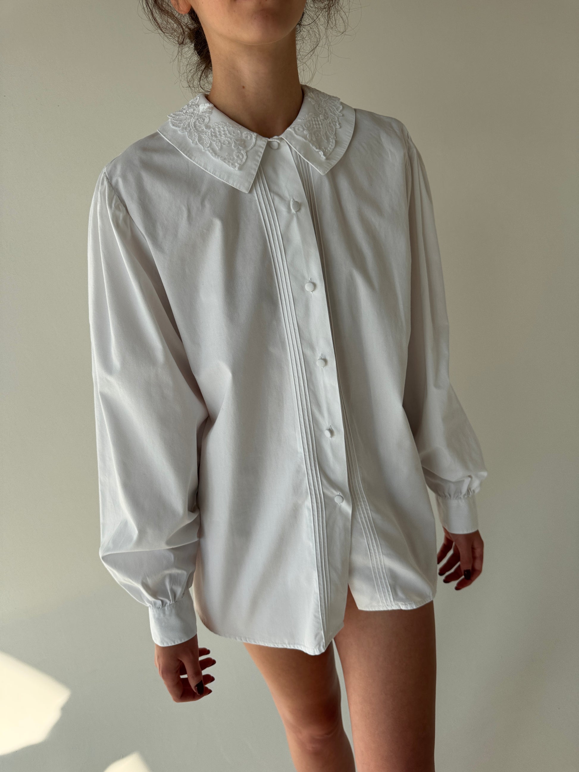 bumbac plin excepțional cu ținuta ușor structurat, guler dublu cu aplicații din dantelă