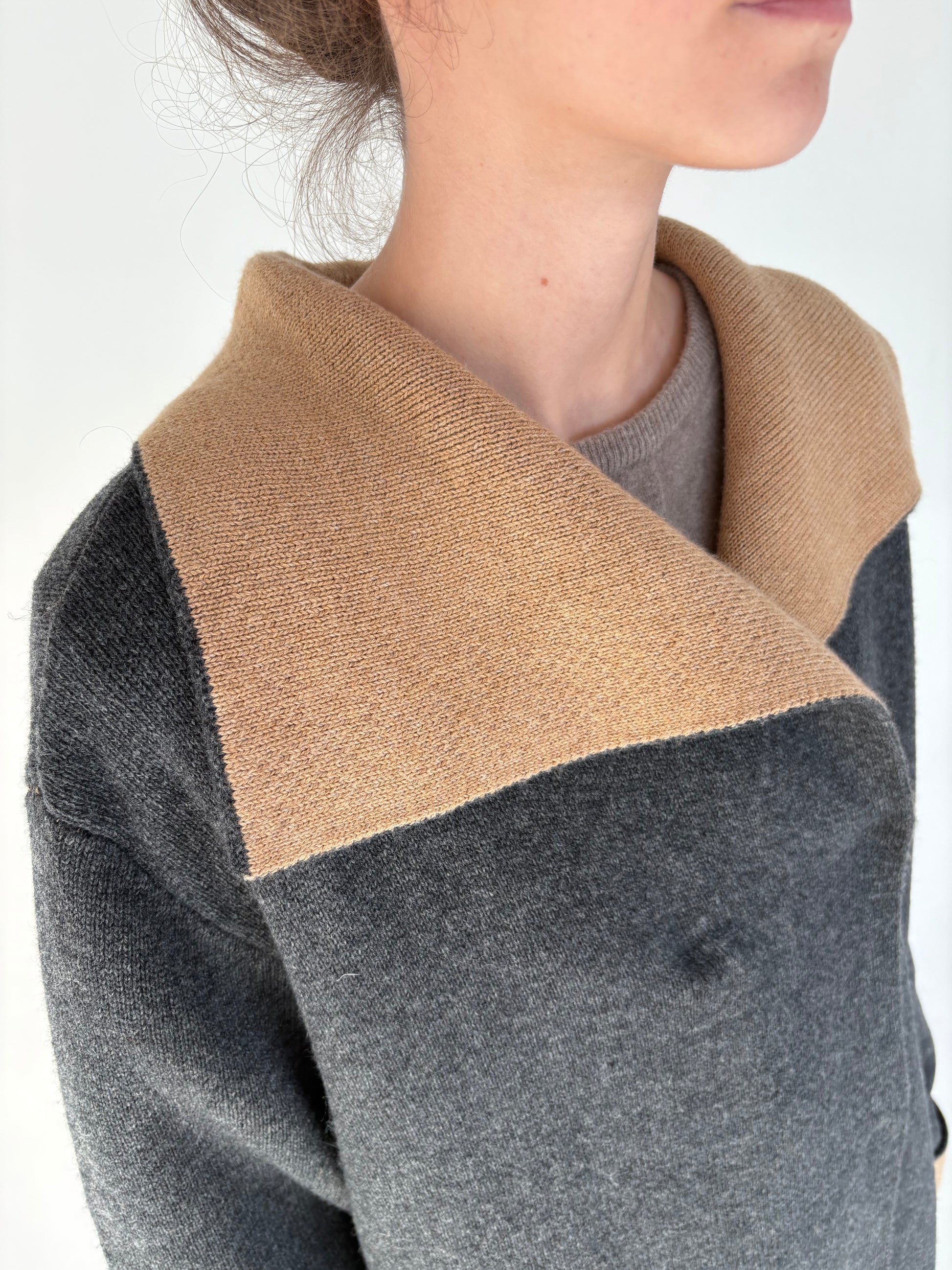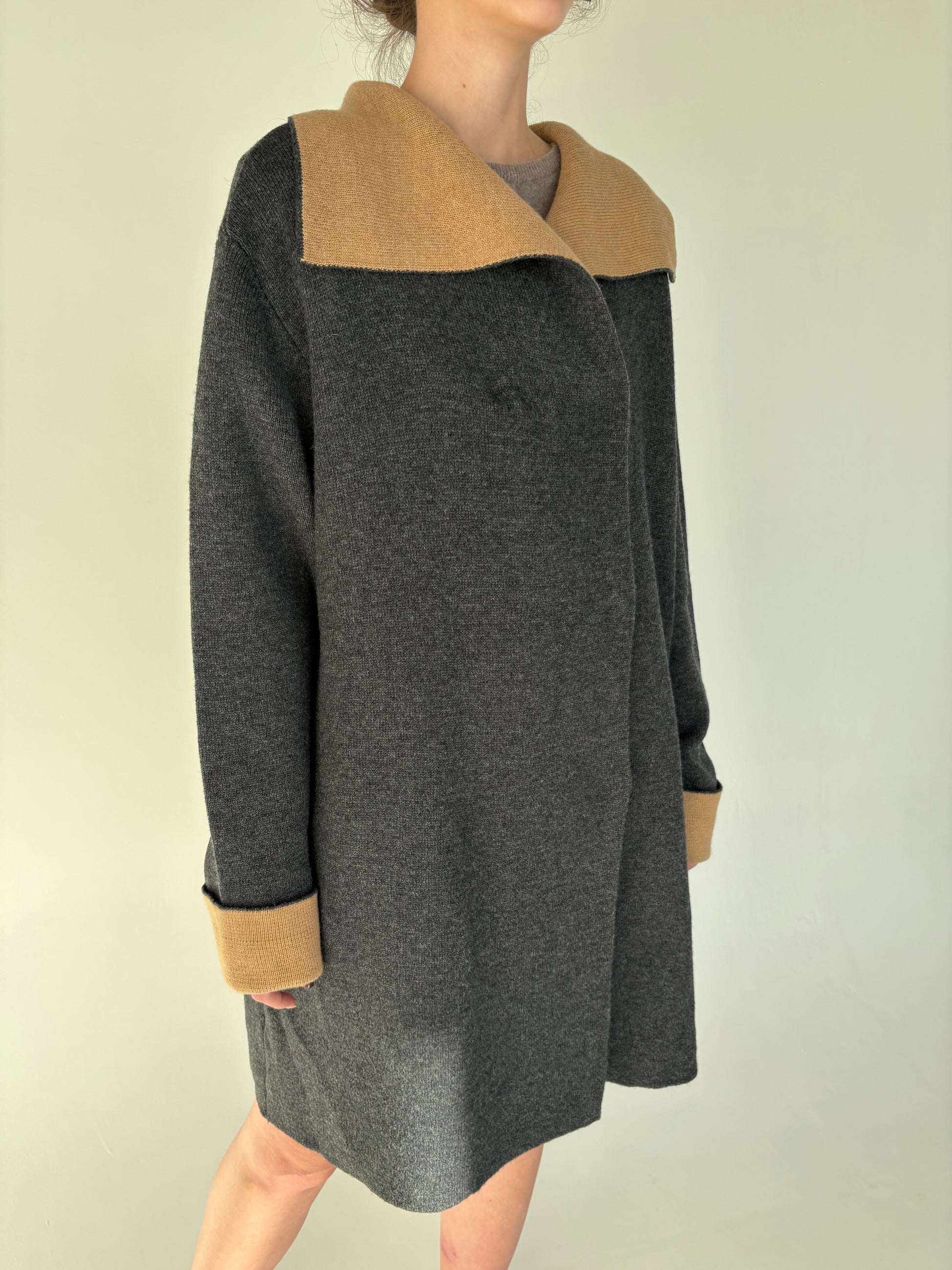 Pardesiu ultra confort din trvoit camel și gri 80% lana extrafina de gramaj mare