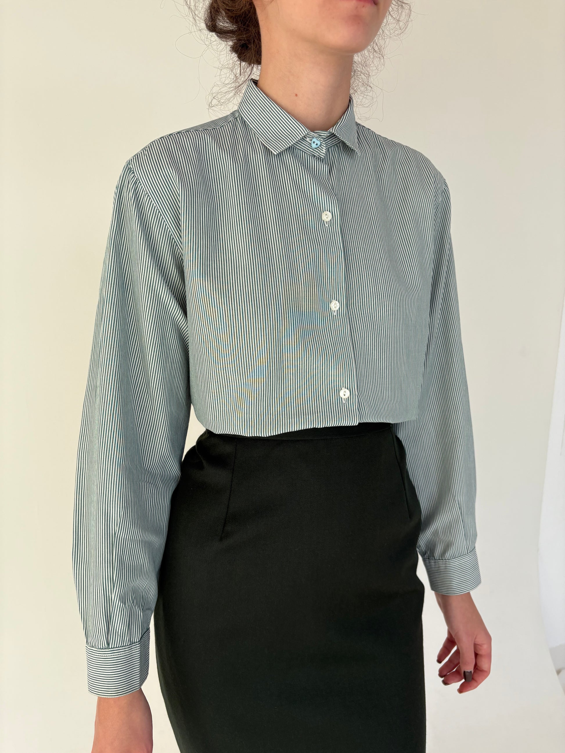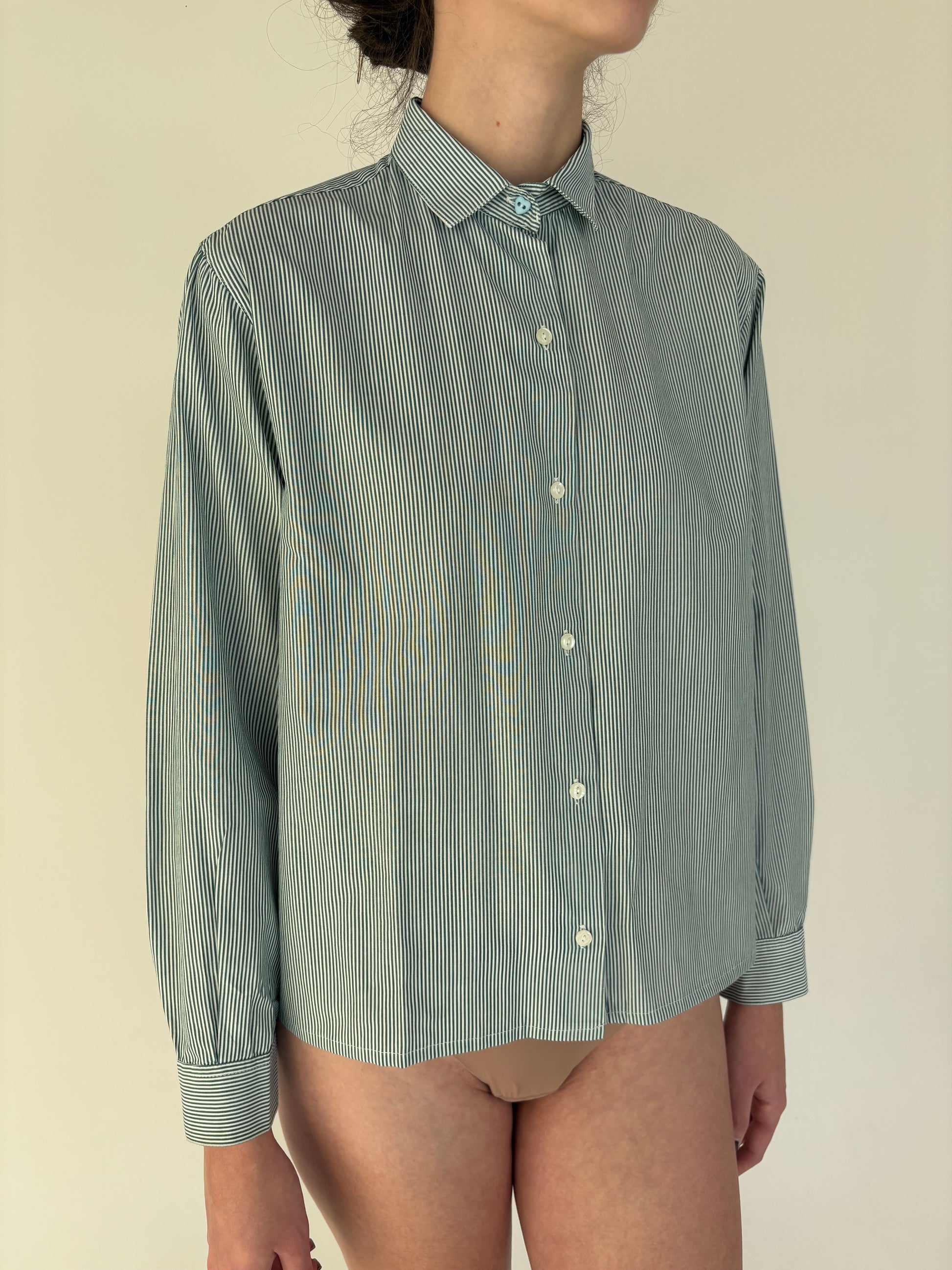 Cămașa premium italiană cu dungi forest green