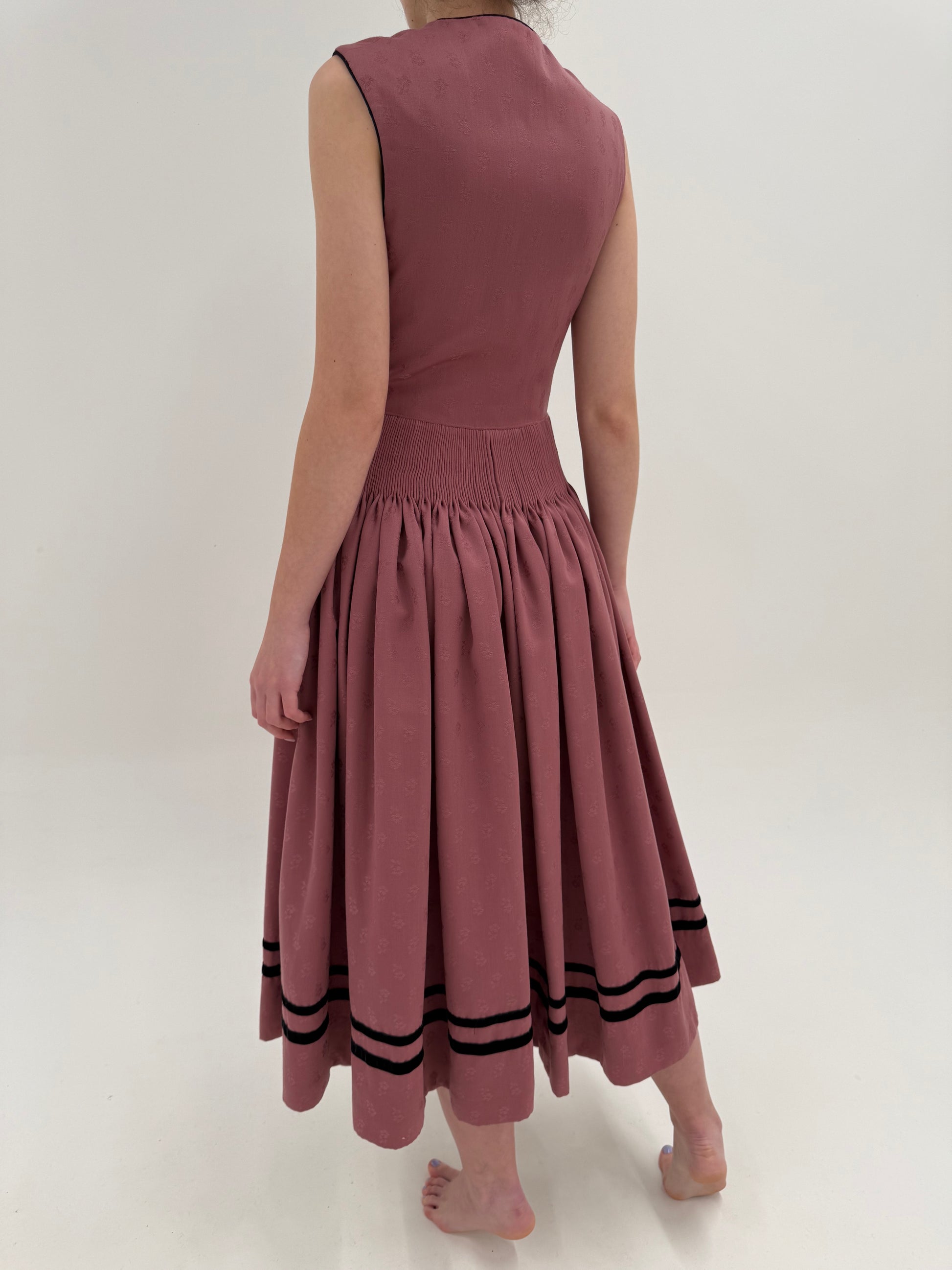 Rochie vintage maxi roz pudrat din lana extrafina cu lucrătură manuală
