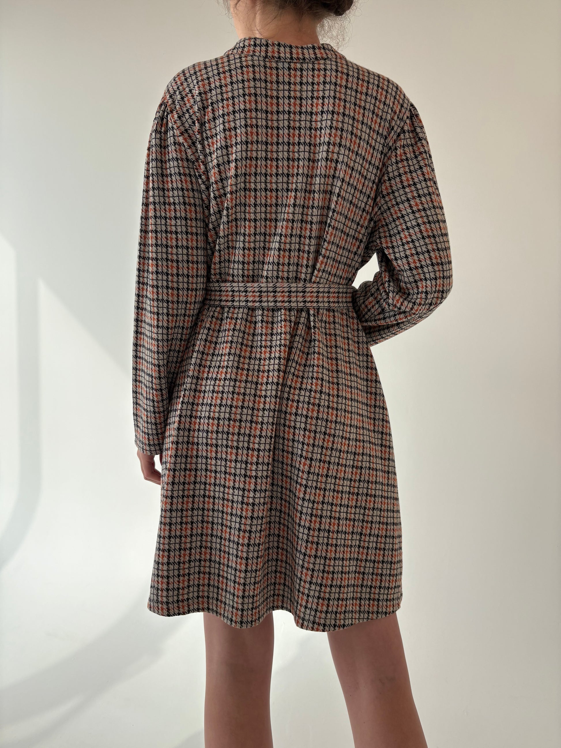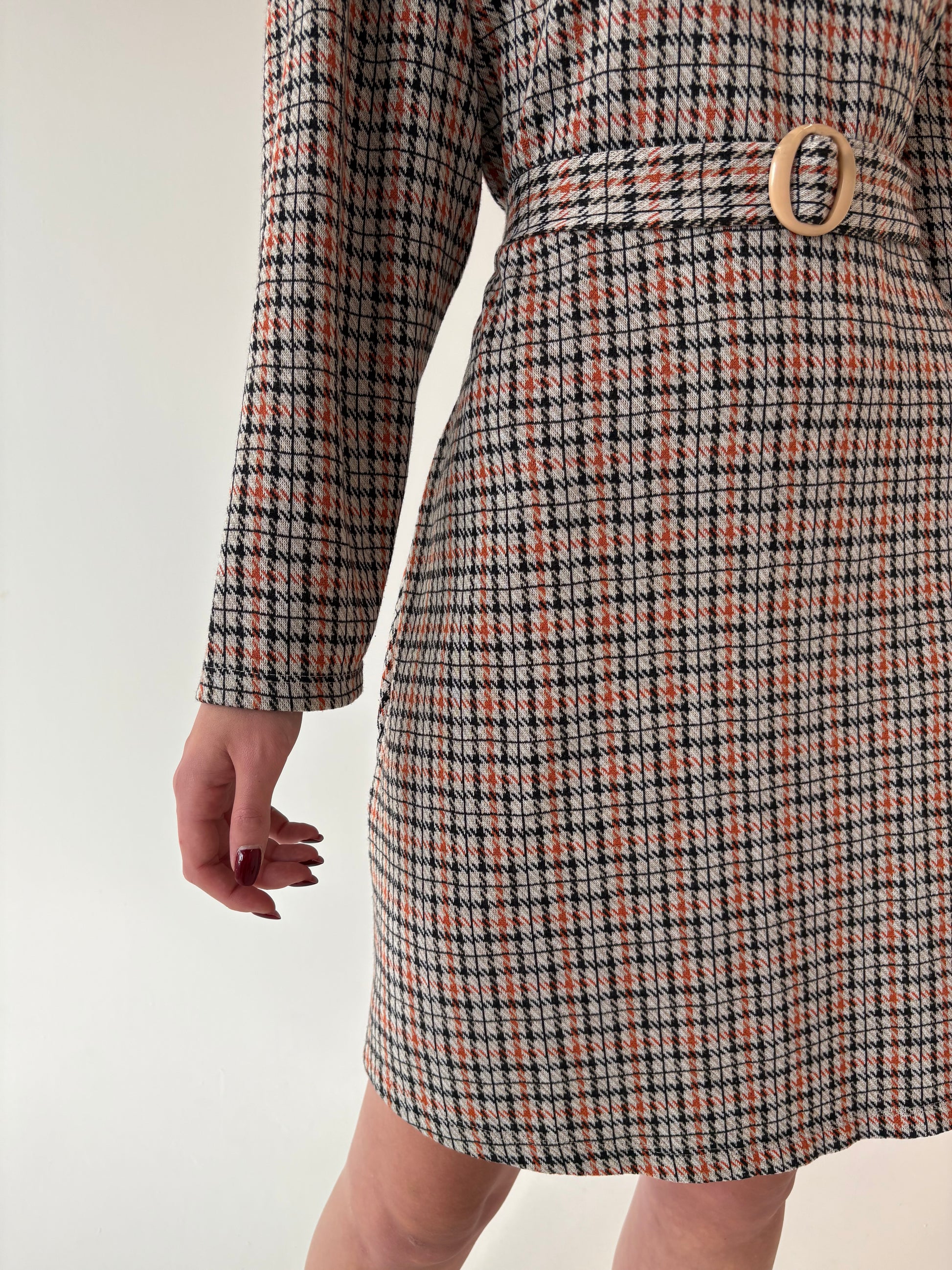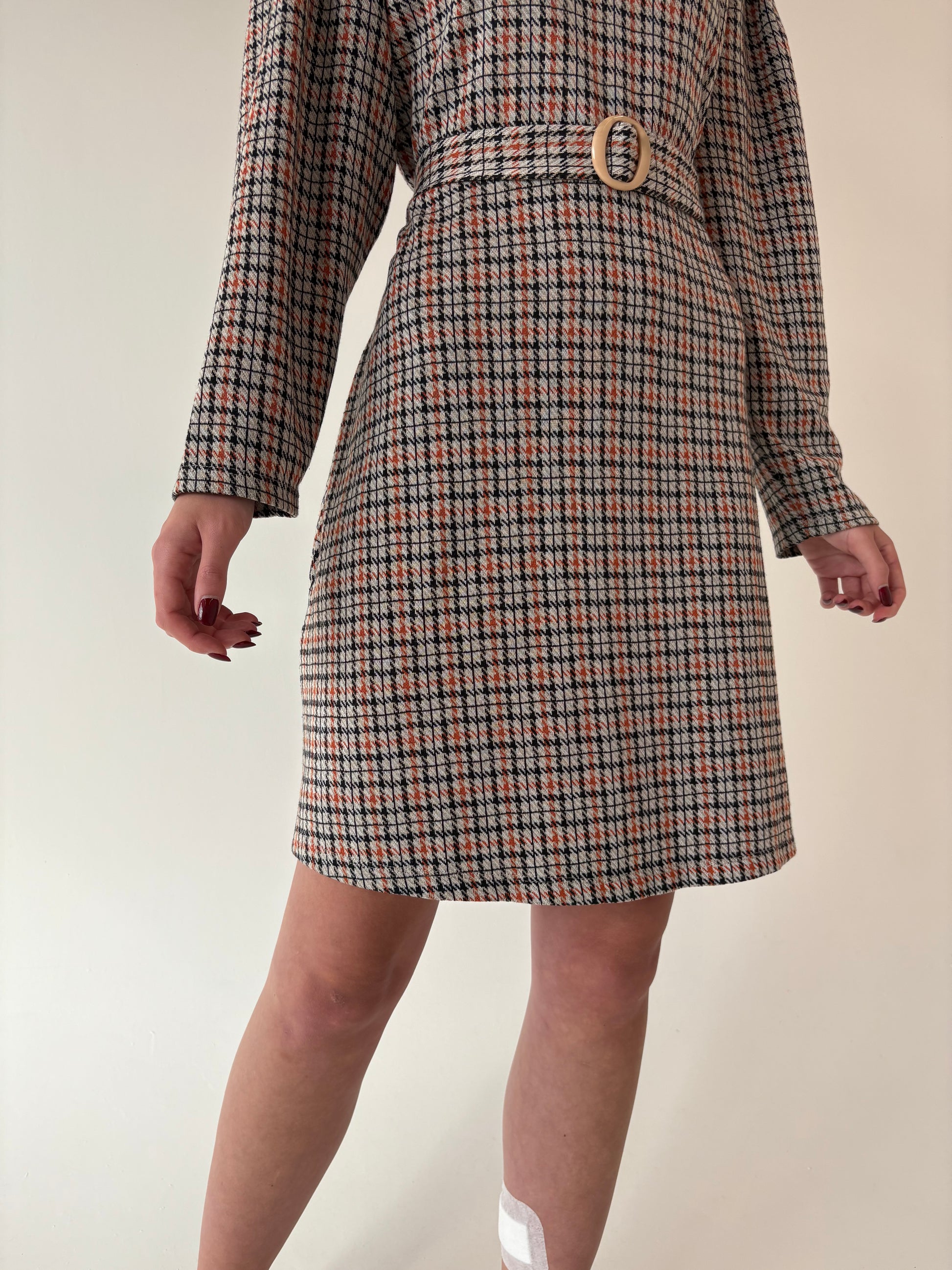 Rochie vintage în carouri cu talie marcată reglabilă