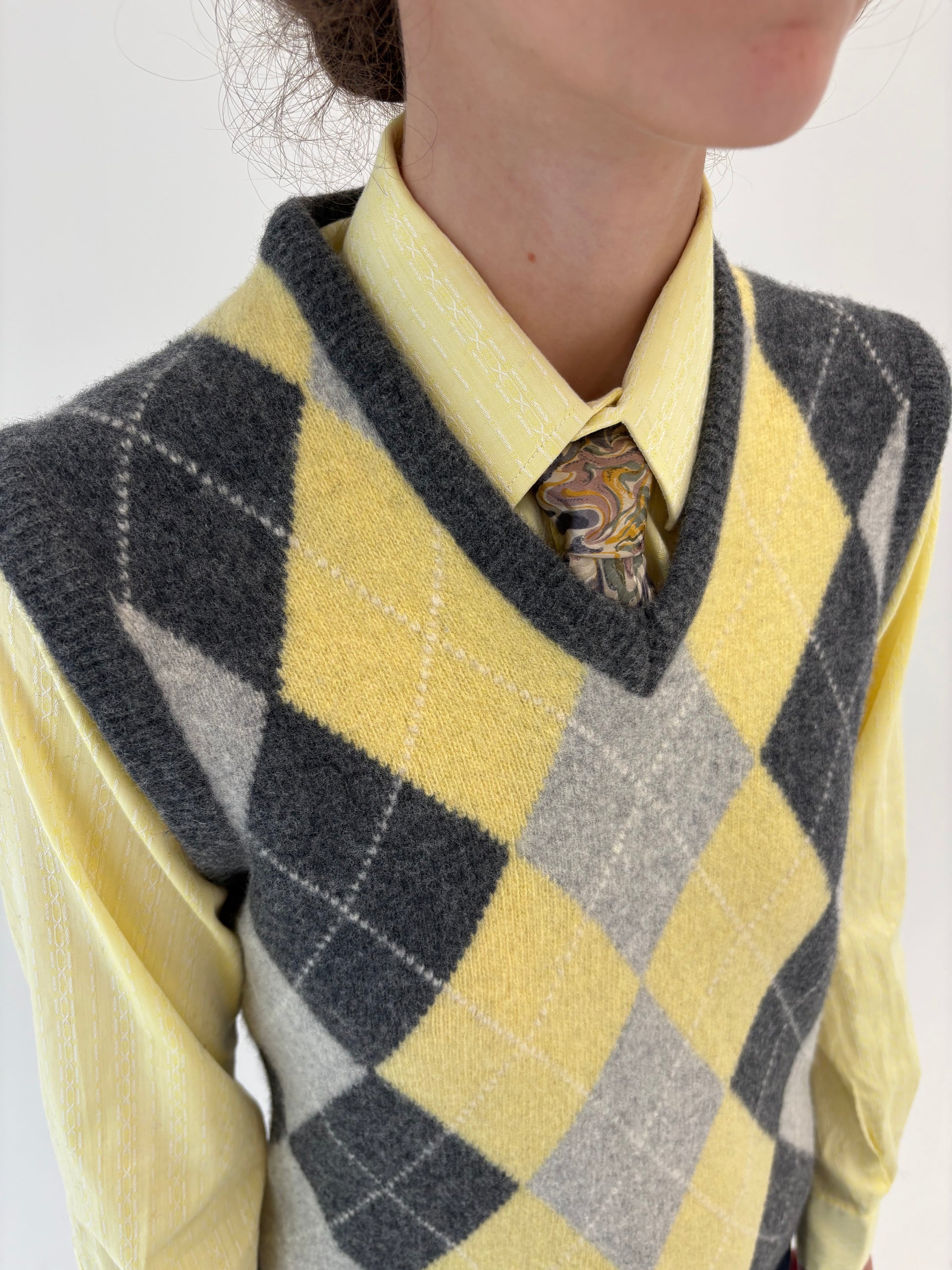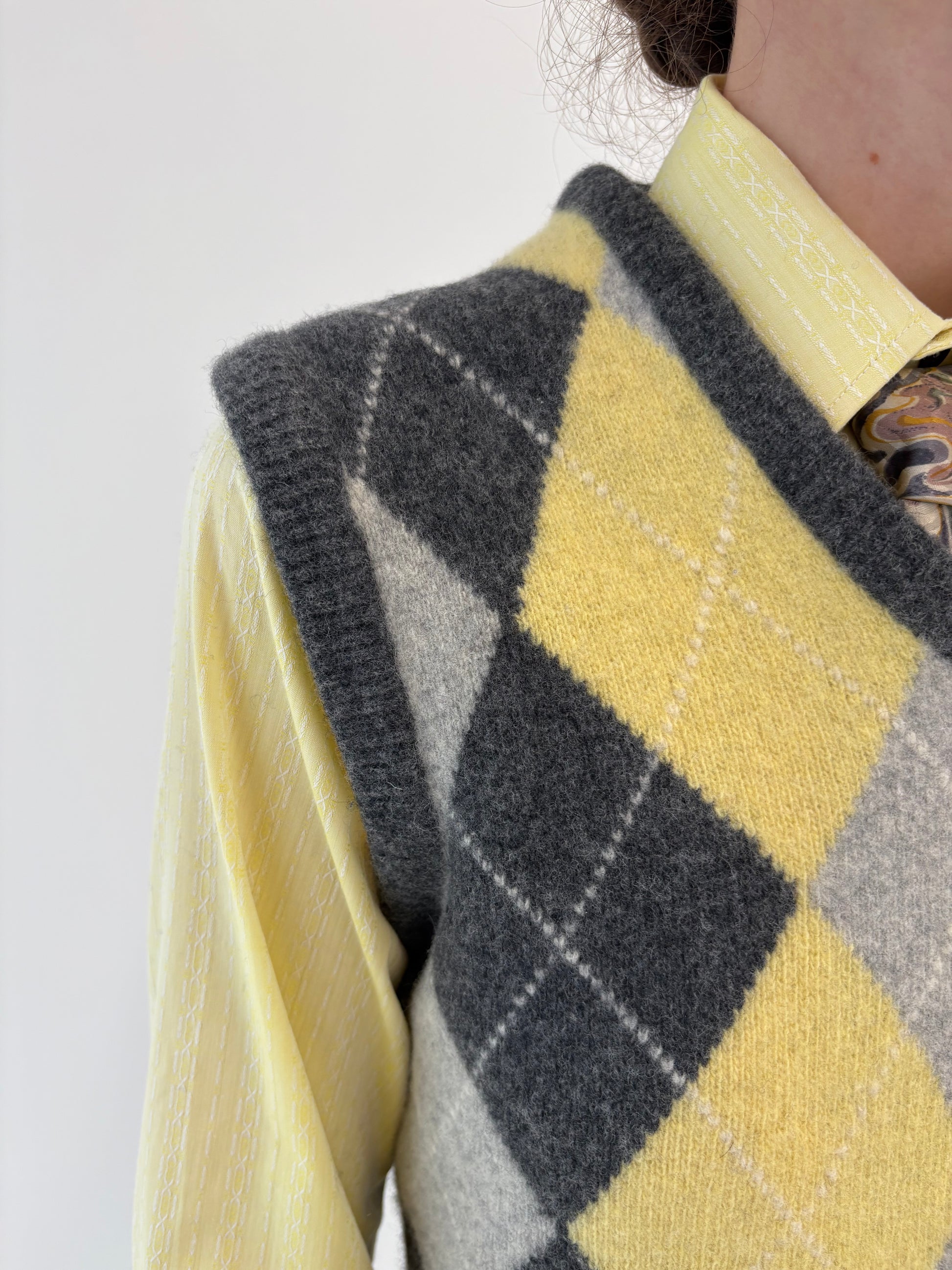 Vestă vintage din lana extrafina de gramaj mare în romburi made in Korea