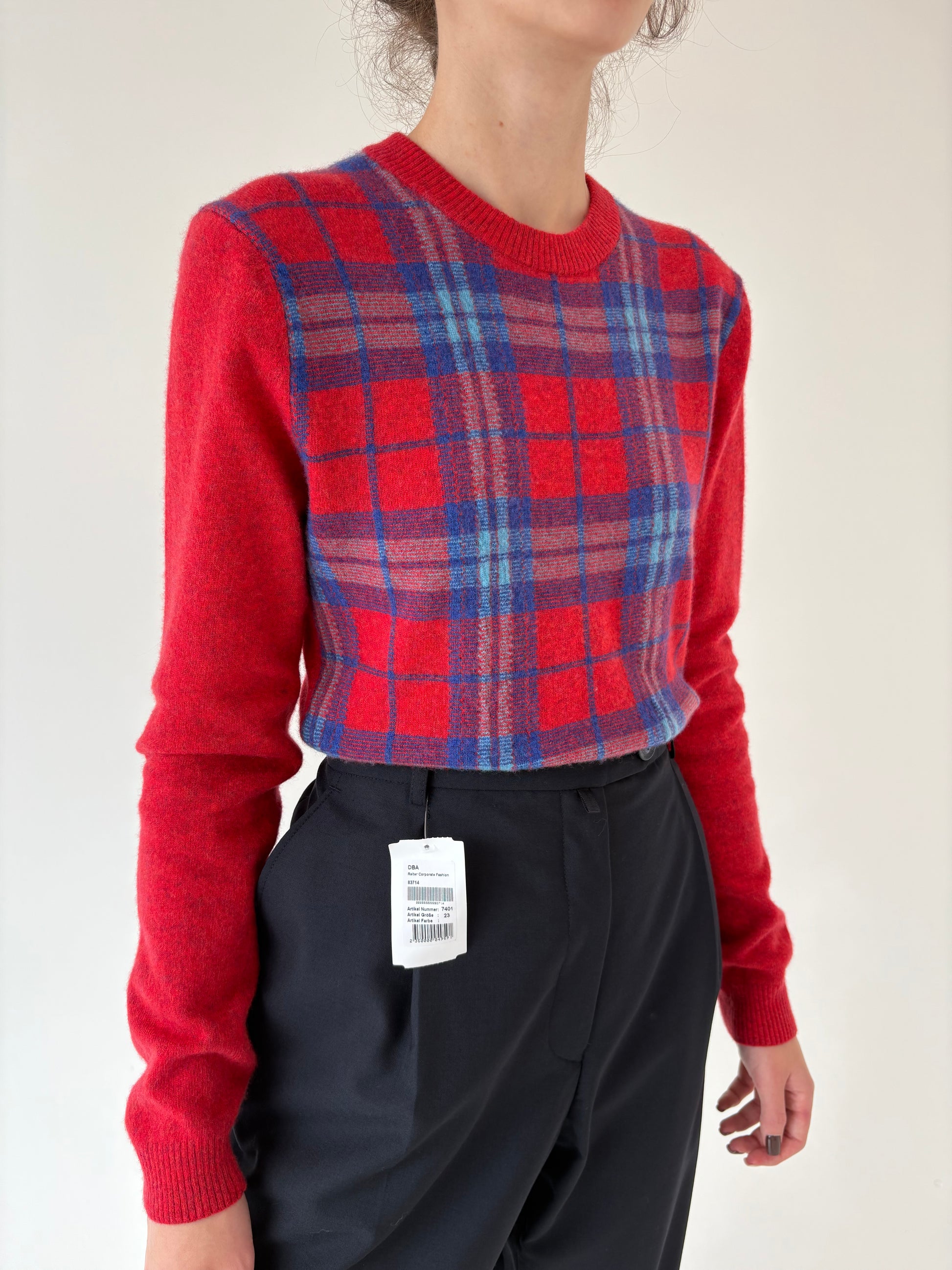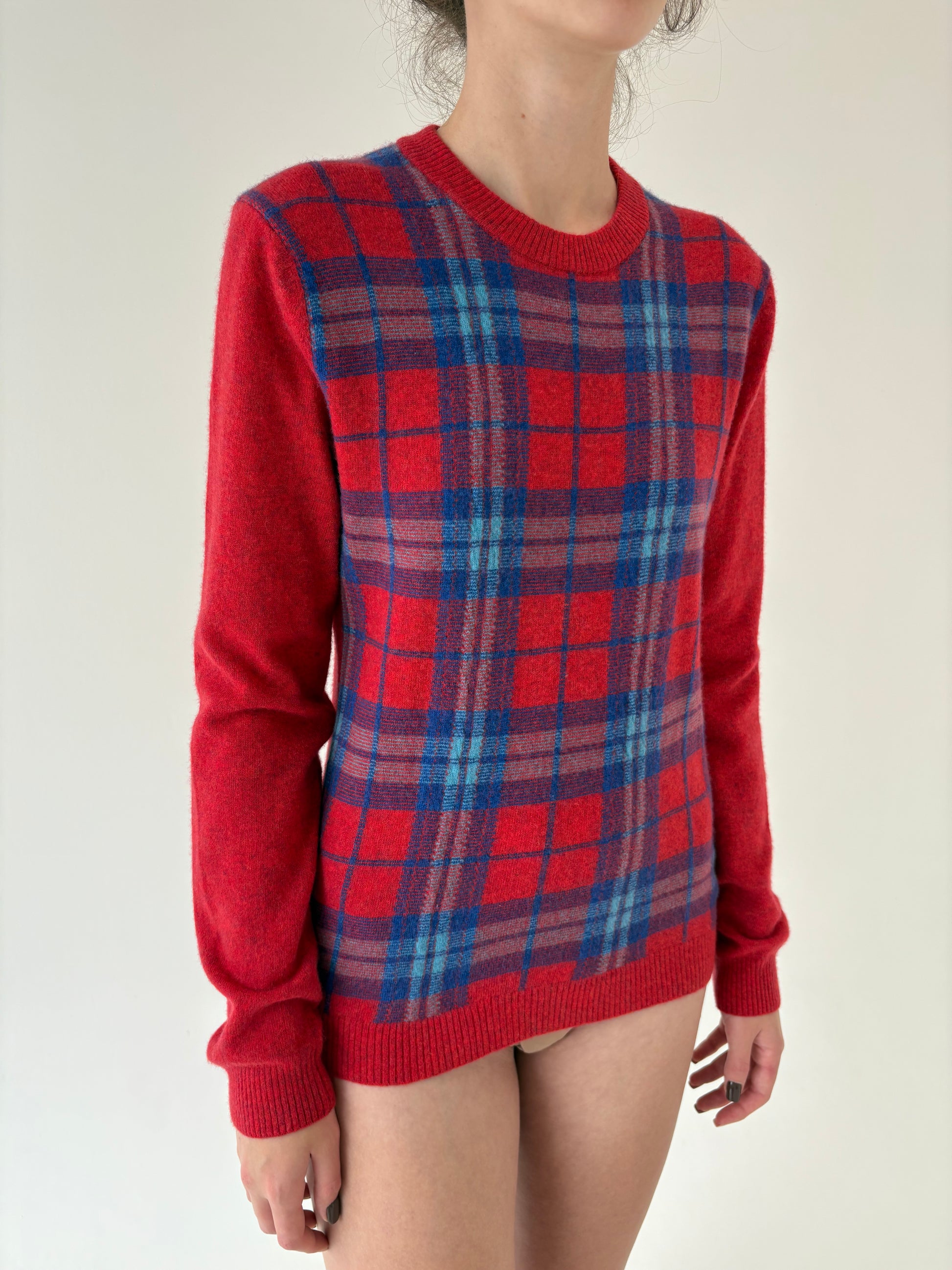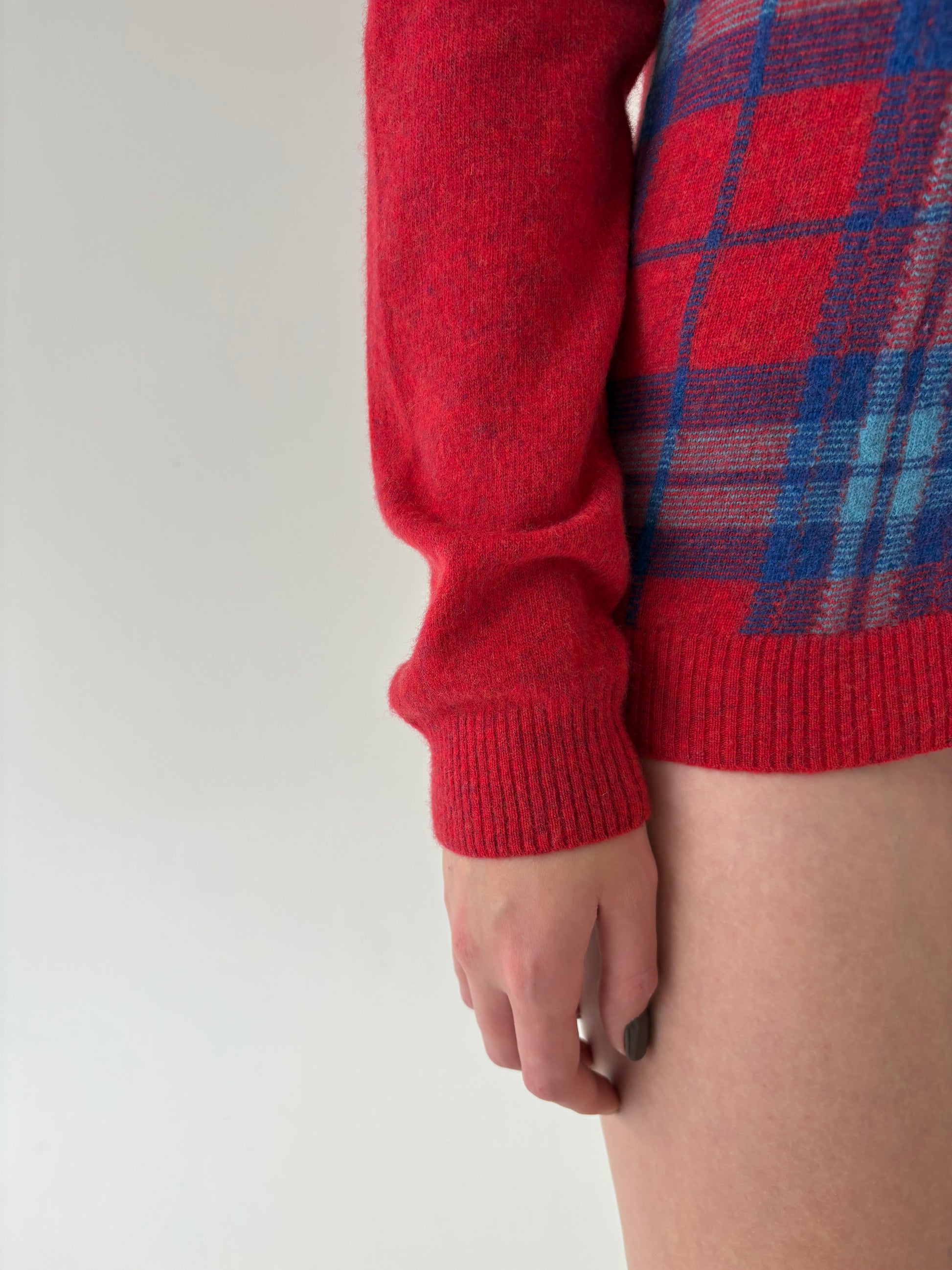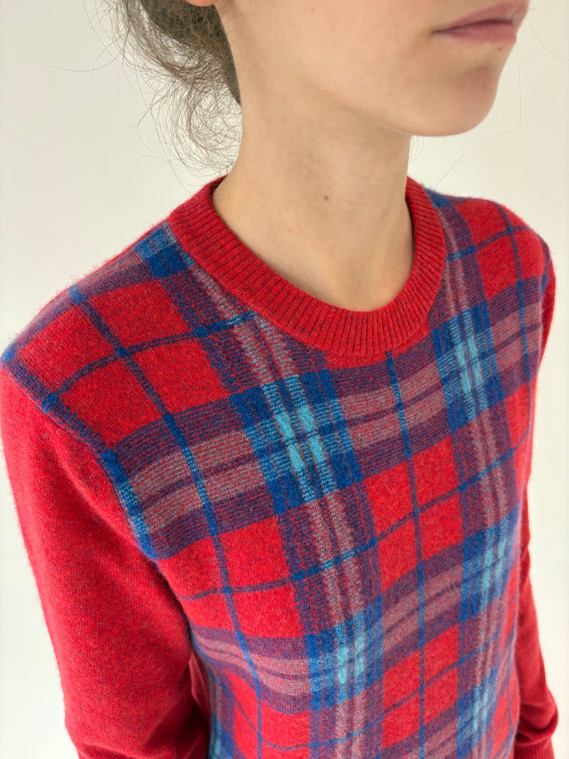 Pulover tall în carouri și culori tari din lana extrafina plină
