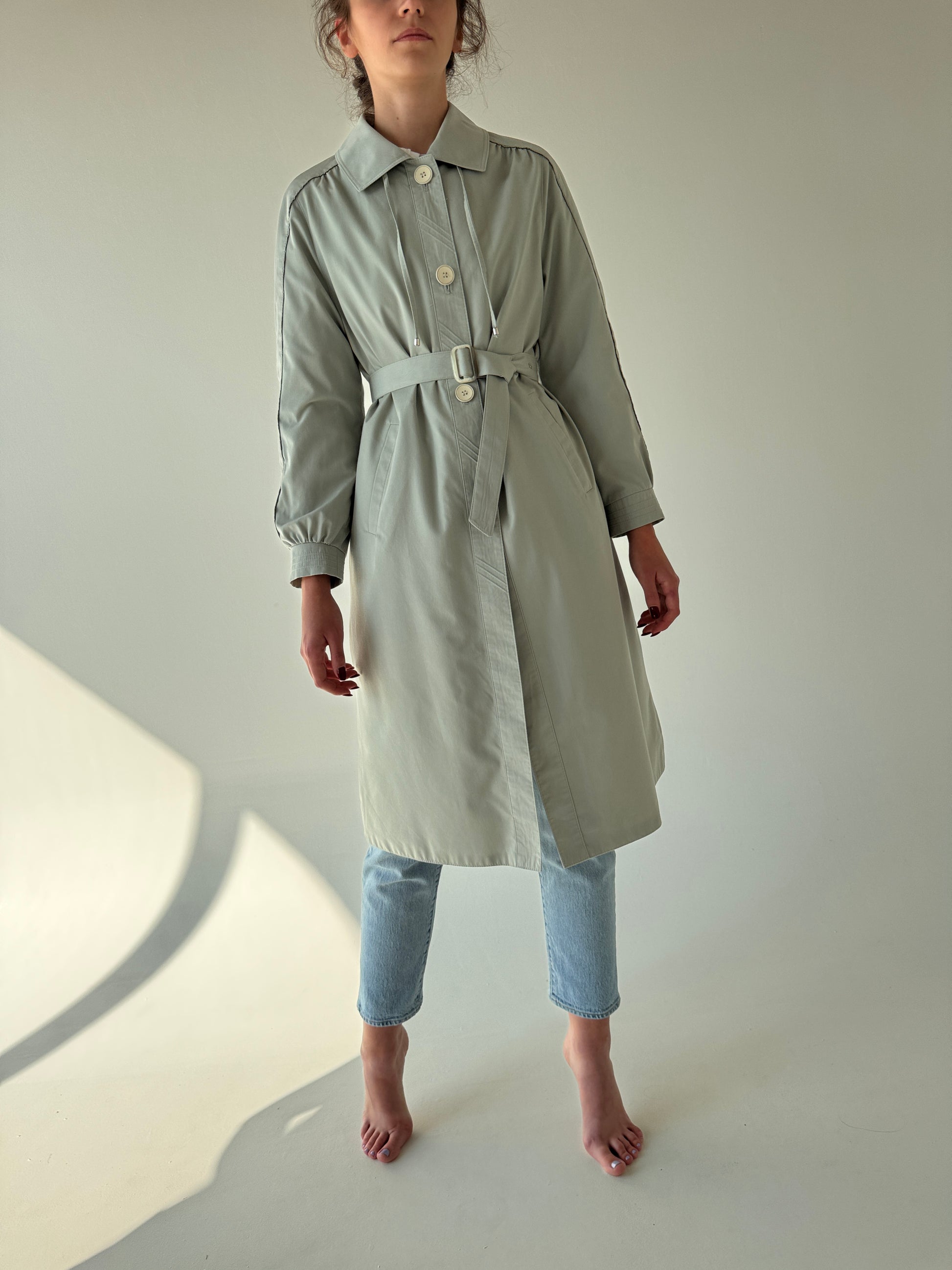 Trench old vintage impermeabil de început de ani 70-80 cu talie marcată