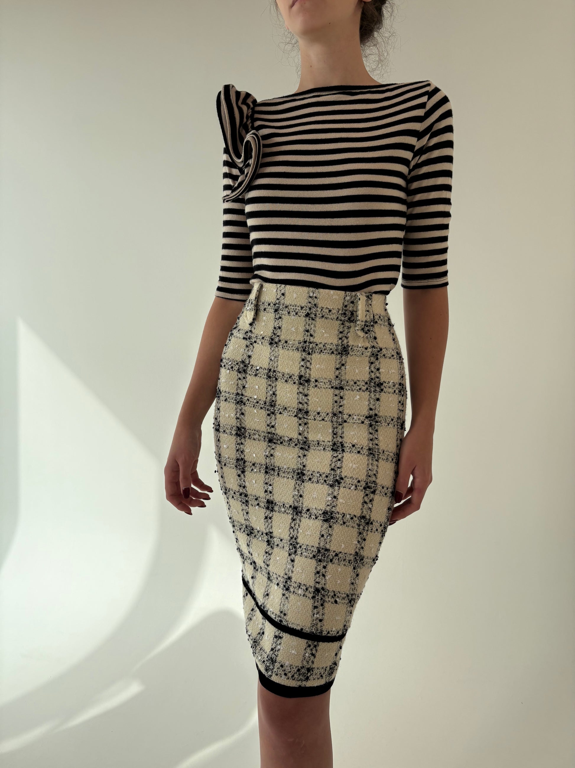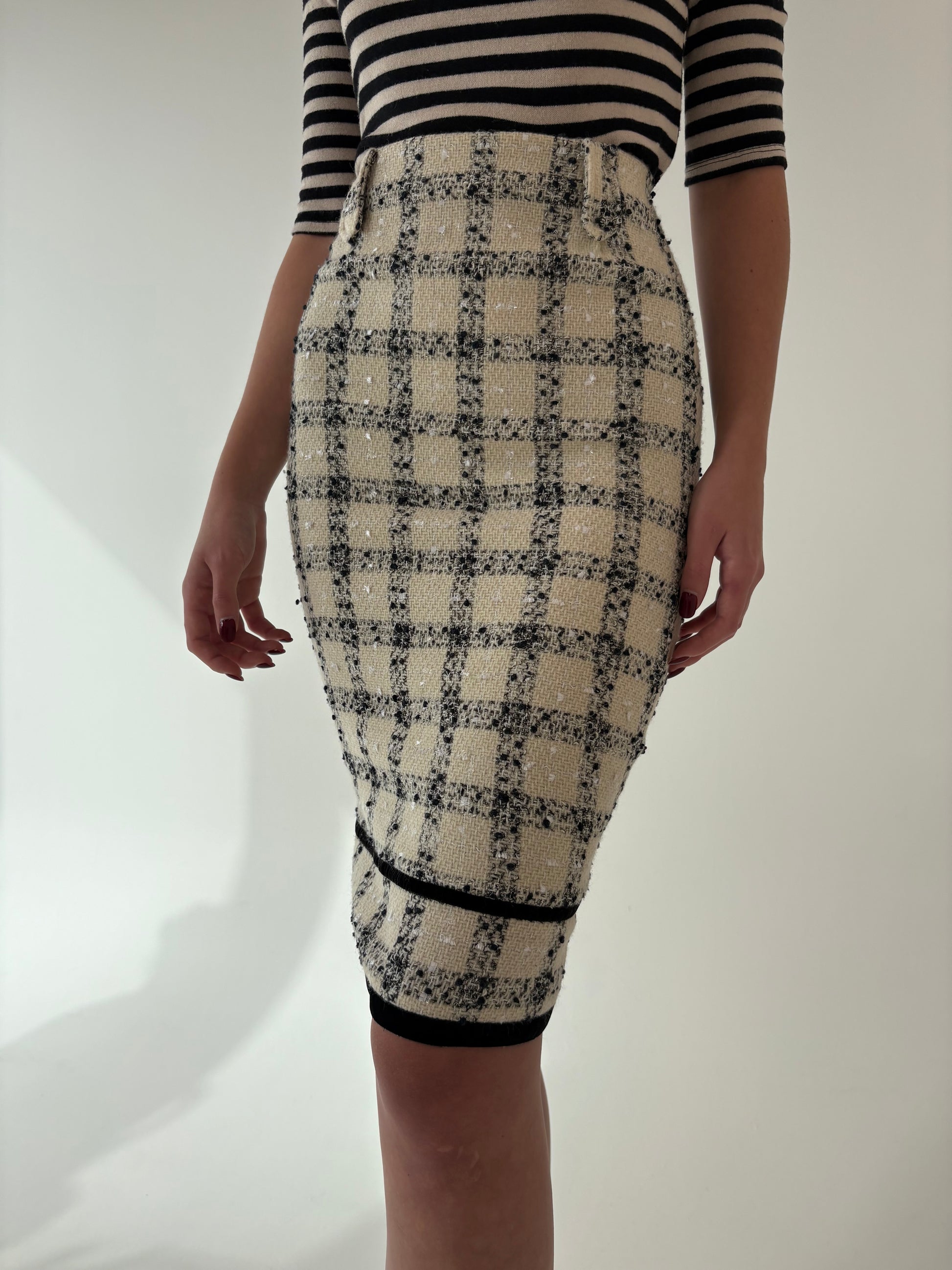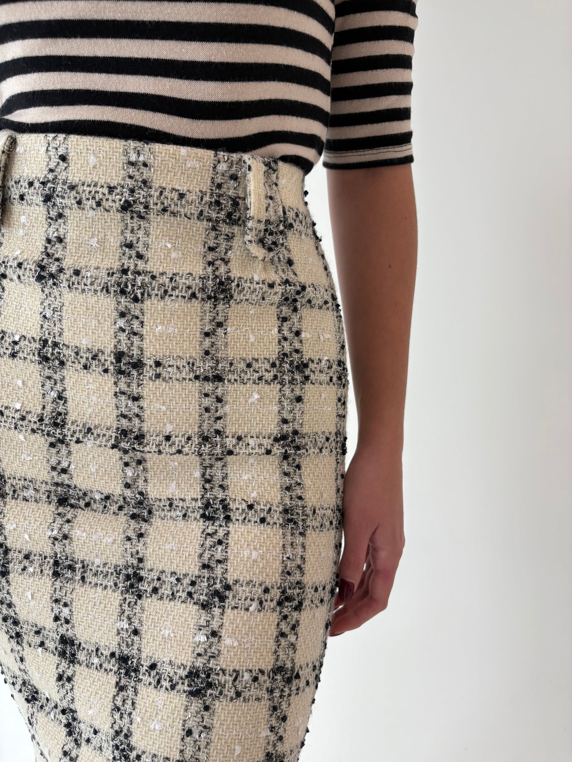 Fustă din boucle excepțional de lana conică cu talie ultra înaltă