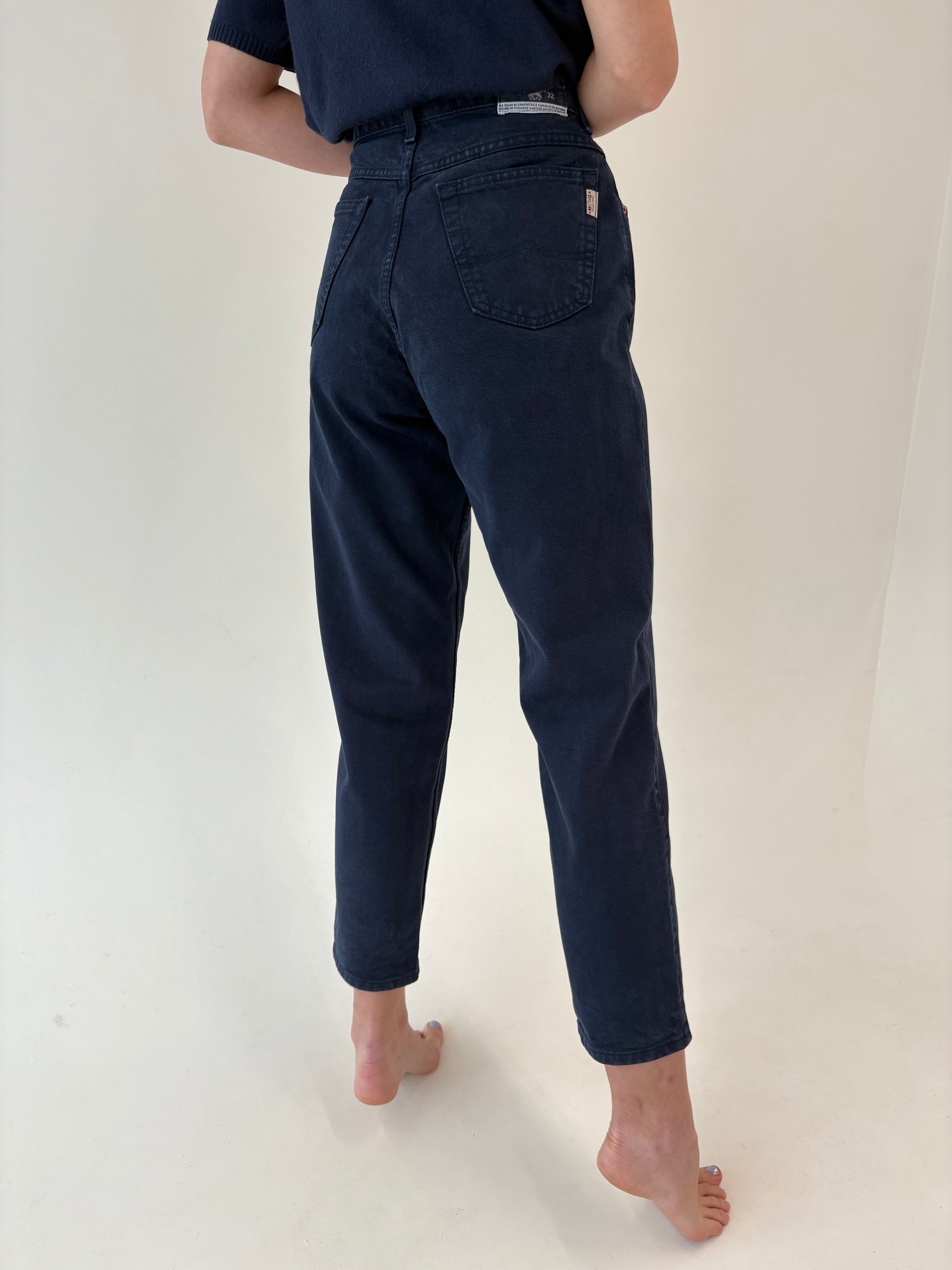 Jeans vintage premium indigo wash cu talie ultra înaltă mom fit