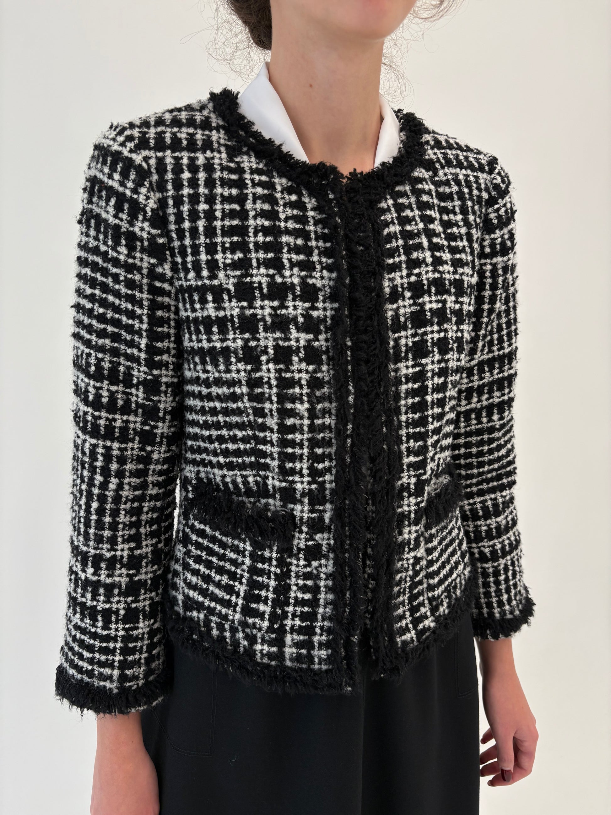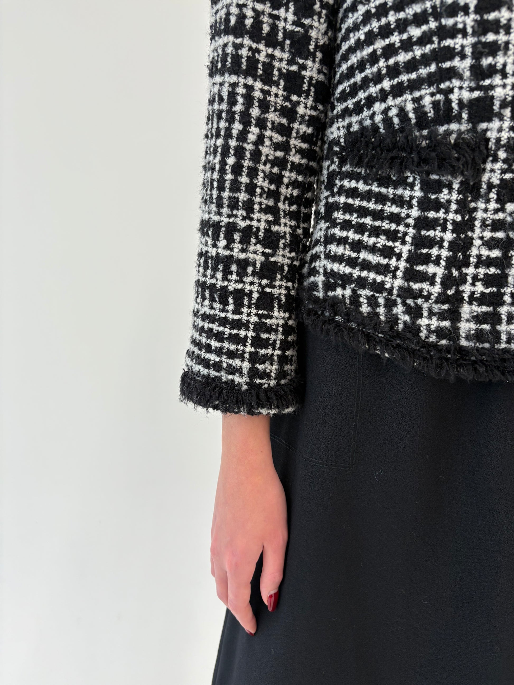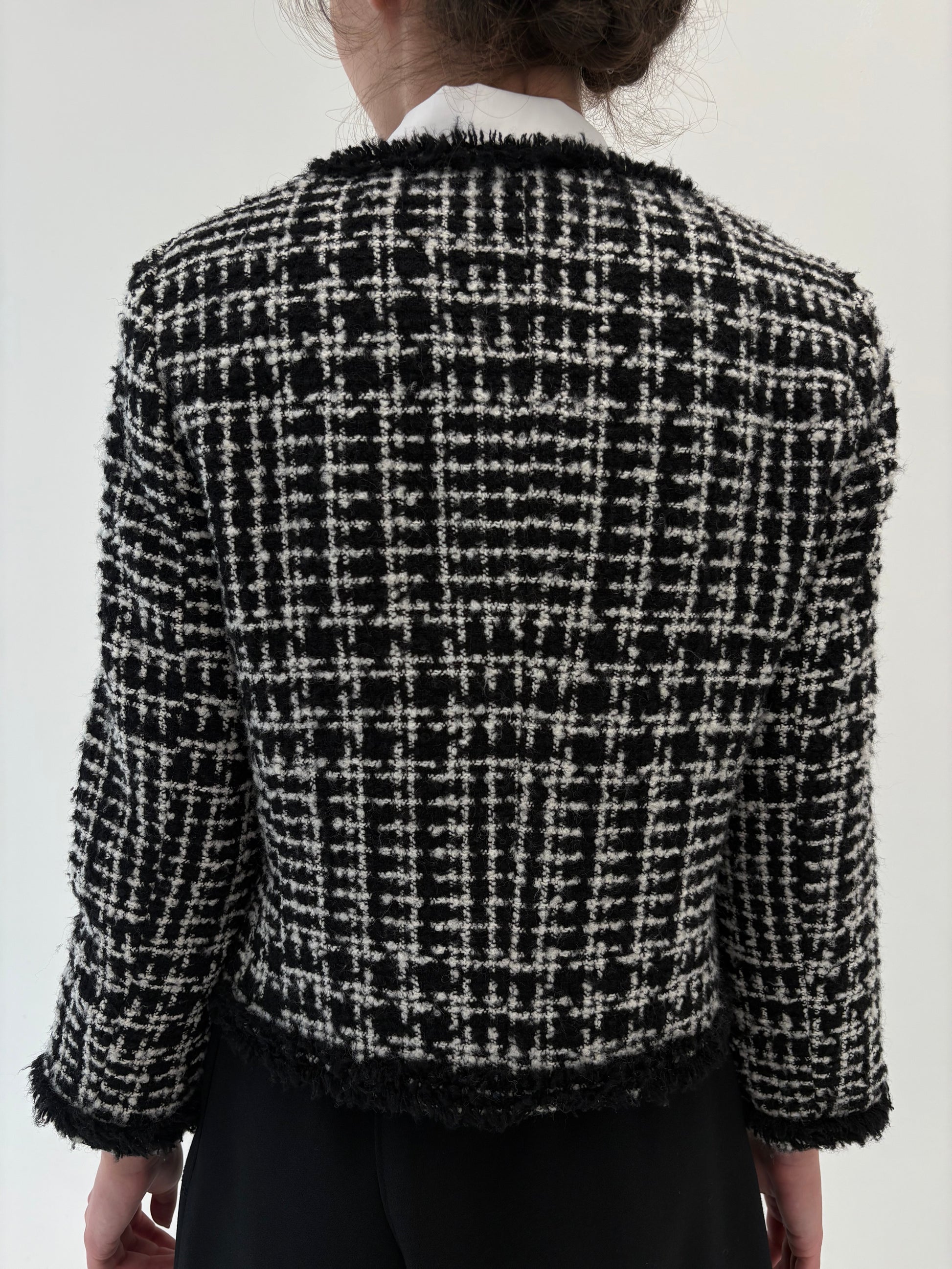 Sacou în stil Chanel din tweed plin cu print alb negru